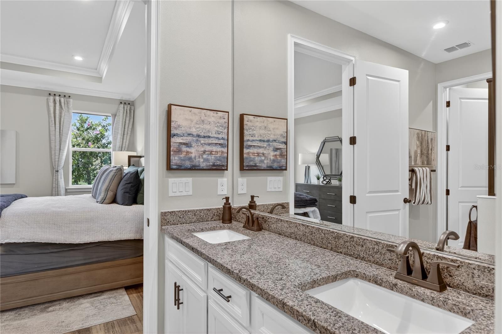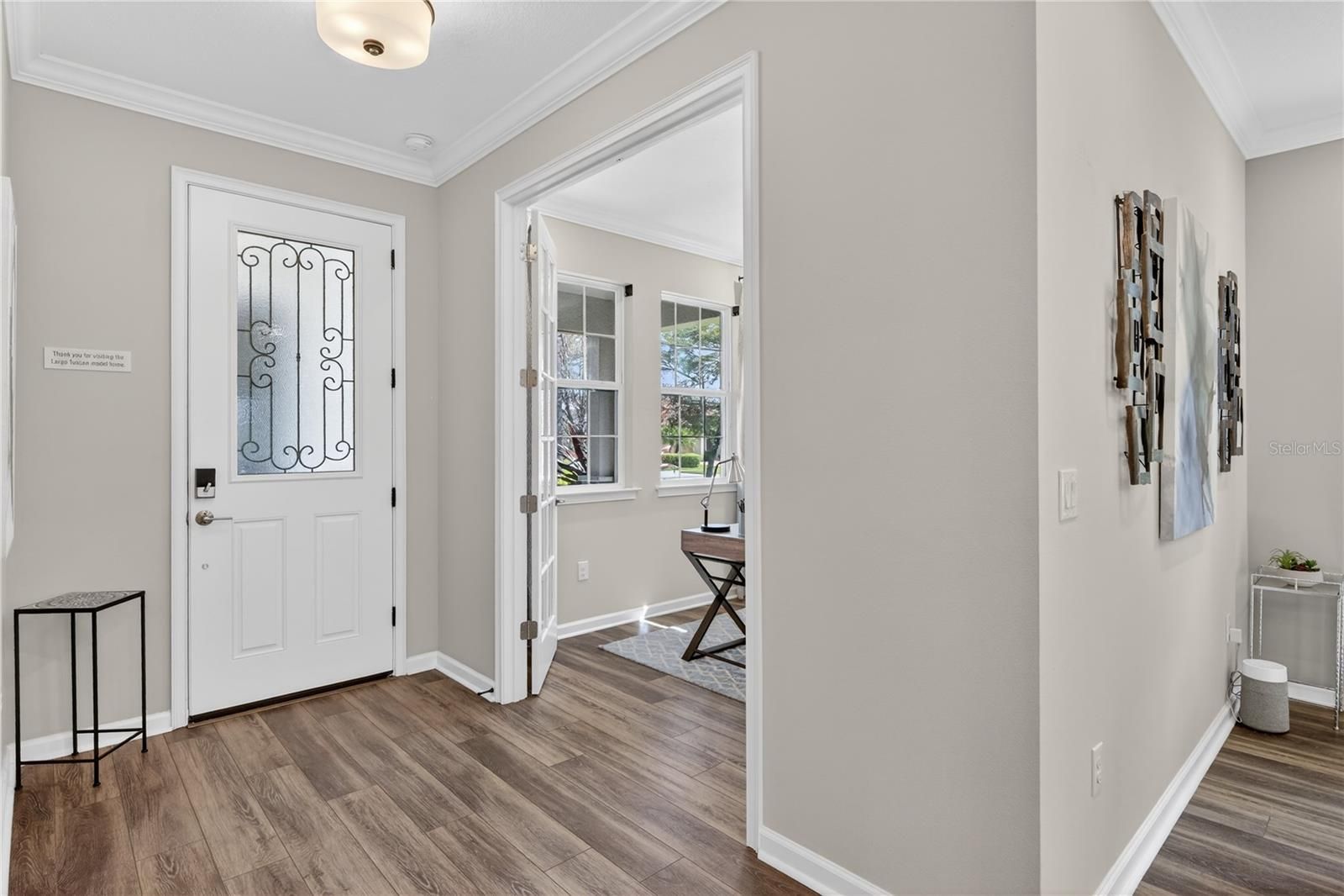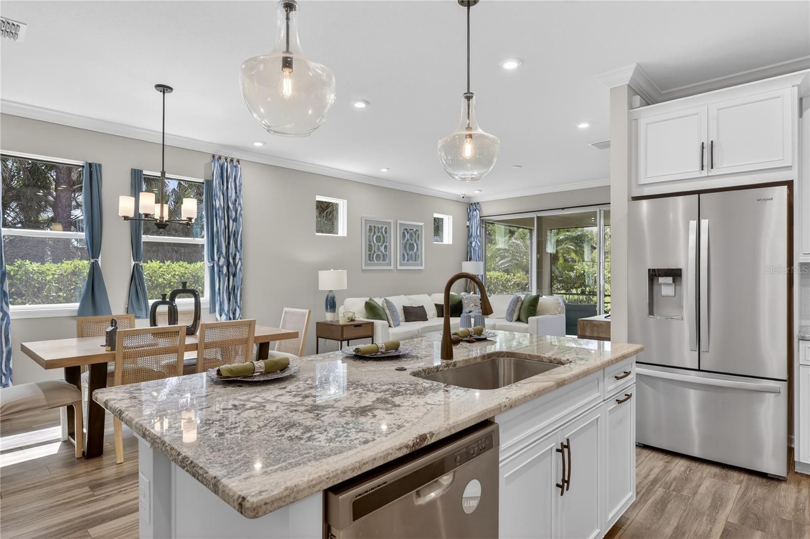 WELCOME TO THIS BEAUTIFULLY APPOINTED FORMER MODEL HOME IN RENAISSANCE AT WELLEN PARK, OFFERED FURNISHED and showcasing an impressive list of designer upgrades throughout. From the moment you step inside, you'll appreciate the 8-foot interior doors, crown molding, updated lighting, and stylish ceiling fans, all contributing to the home's refined yet comfortable feel. The open-concept living space is enhanced by luxury vinyl flooring throughout the main living areas and primary suite. The heart of the home the well-designed kitchen featuring granite countertops, subway title backsplash, glass pantry door, and convenient pull-out drawers for easy organization. Just beyond the living area, triple pocket sliding doors open fully to the lanai, creating a true indoor/outdoor living experience while framing extensive and private preserve views. The primary suite offers a tranquil retreat, highlighted by a tray ceiling, spacious walk-in closet, ad a spa inspired bathroom with dual vanities, title-to-the ceiling shower with decorative tile detail, and pebble tile flooring. Both bathrooms feature tile extending to the ceiling in the showers. Additional features include a spacious den or flex room ideal for a home office or quest space, cabinetry in the laundry room, whole house security system, and epoxy flooring in the garage. Located in the highly sought-after Renaissance community of Wellen Park, where residents enjoy a vibrant lifestyle with resort-style amenities including a clubhouse, pool, fitness center, pickleball courts, tennis, activities director and more. All located just minutes from Downtown Wellen Park, Gulf beaches, dining, shopping, and everyday conveniences. This move-in-ready, furnished former model offers the perfect blend of upgrades, privacy, and lifestyle living in one of Wellen Park's most desirable communities. Schedule your showing today!
