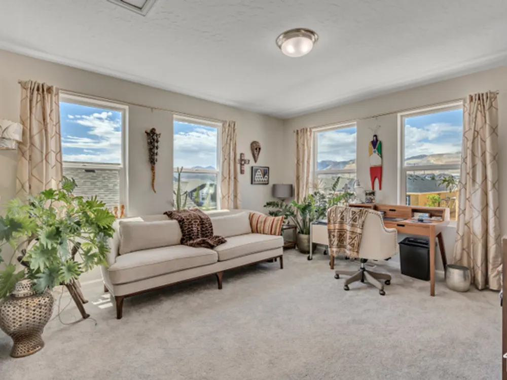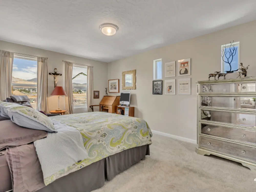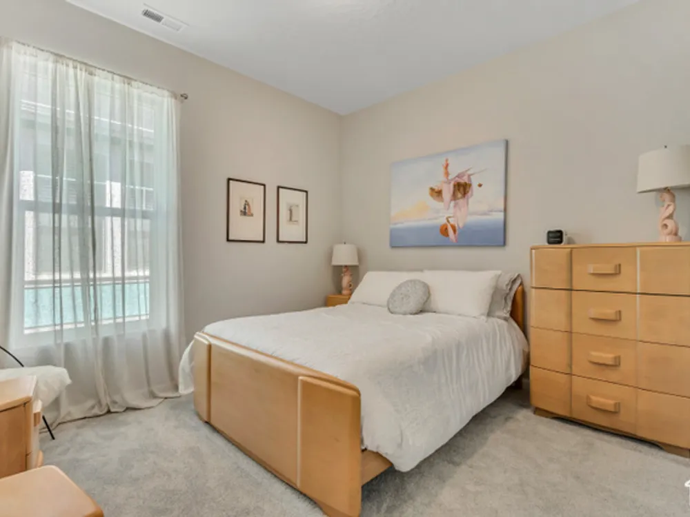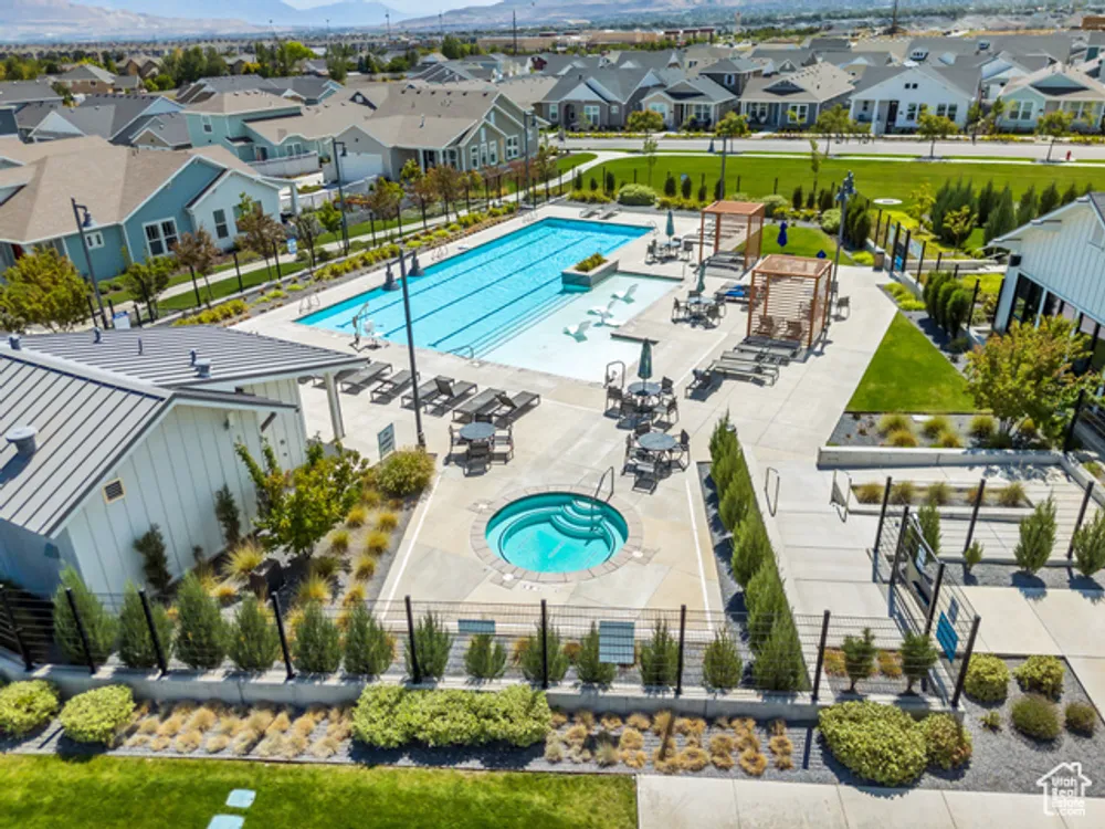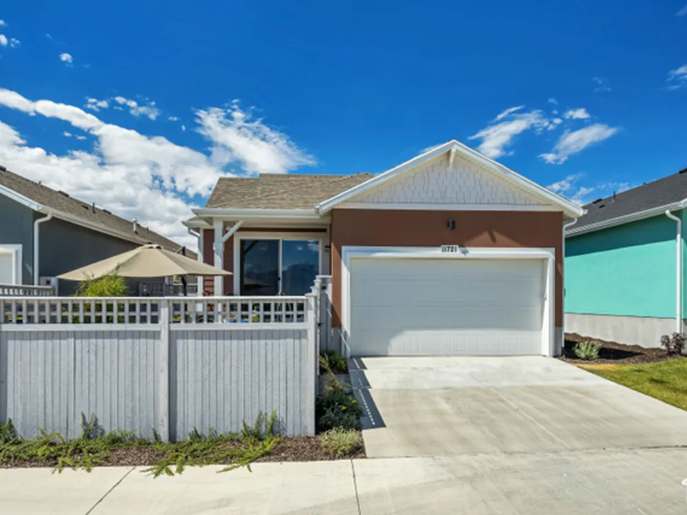 Why wait for a new build when you can own this gem!!! Welcome to 11721 S. Gannet Way, located in the Springhouse Village in beautiful Daybreak, South Jordan! Springhouse Village is a 55+ community with a huge emphasis on Active-Adult, Resort Style living! Ditch the yard work and enjoy the private pool and hot tub; pickle-ball courts; the golf simulator; private gym; gourmet clubhouse kitchen... Springhouse Village even has a full-time lifestyle director dedicated to curating a calendar each month full of fun activities and clubs to participate in! This premium lot "Primrose Model" is a two story home with a bonus room upstairs, main floor primary suite, and covered patio. The main floor features gorgeous luxury vinyl plank floors, a beautiful kitchen equipped with quartz countertops, a tile backsplash and all appliances. The adjacent, spacious living room makes entertaining a dream. The large primary suite offers a walk-in shower with a built-in bench, dual sinks and a generous walk-in closet. A second bedroom, full bathroom and laundry room with washer and dryer included round out the main floor. The loft upstairs is perfect for a home office or entertainment room. There is an additional bedroom and bathroom... perfect for guests. The back yard is completely landscaped with turf, flower beds and a dry rock creek. Why build when you can buy this turn key home!