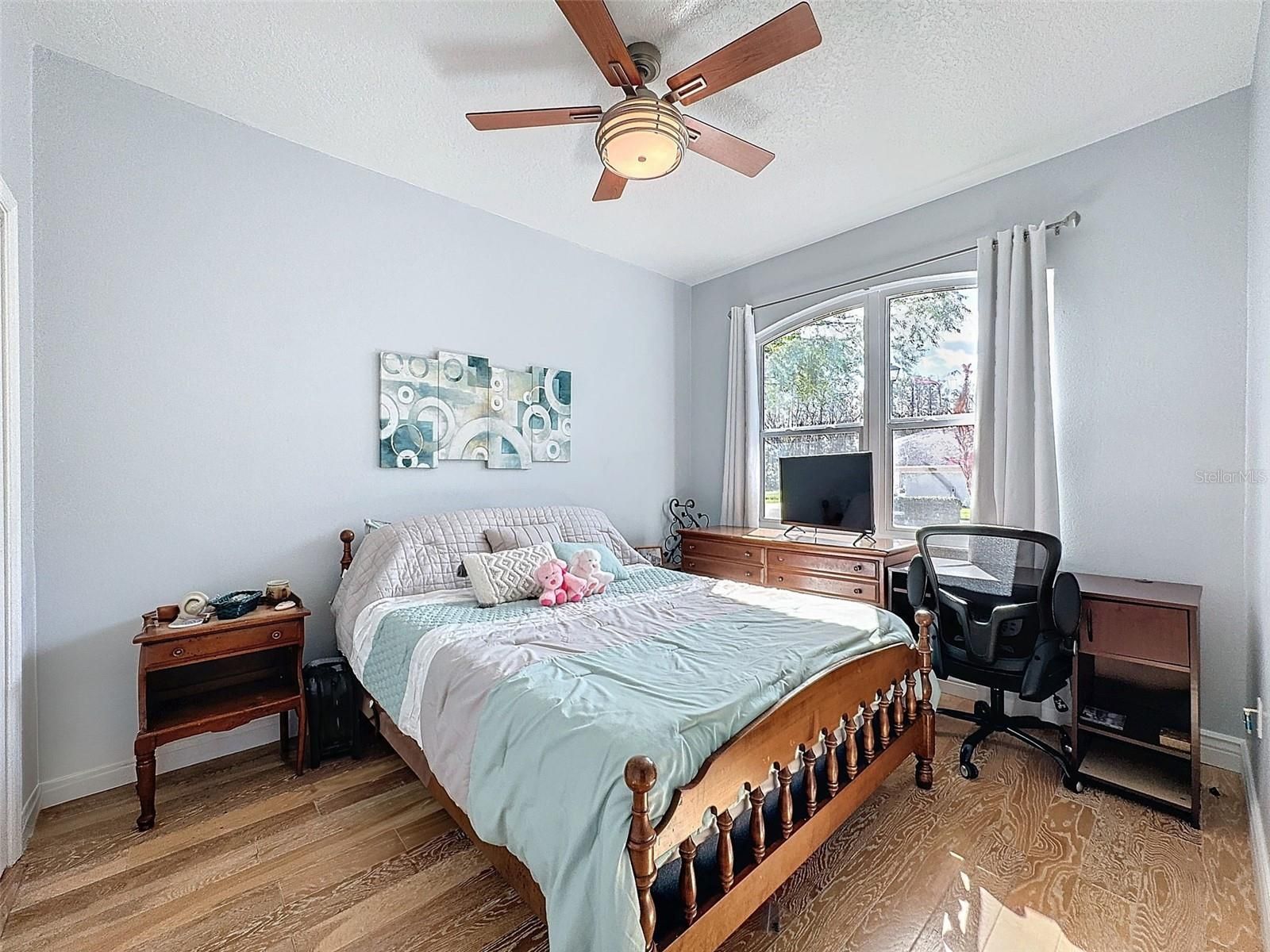 - Ceiling Fan(s), Solid Surface Counters, Solid-Wood Cabinets, Thermostat, Walk-In Closet(s), Window Treatments