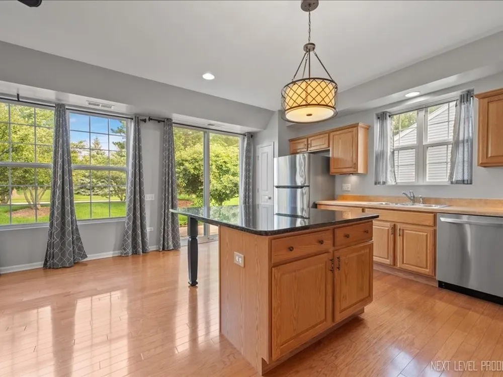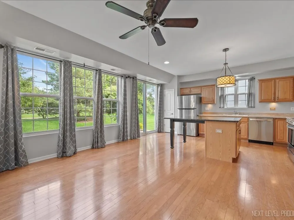 Welcome to this 1566 Sq ft Potomac Model located in Del Webb Sun City Huntley an award-winning 55+ active adult community offering an unparalleled resort lifestyle! This 2-bedroom, 2-bathroom home with a cozy den features a spacious, open floor plan. As you enter, you'll be greeted by a charming entryway with judge's paneling and a versatile den to your right that is perfect for a home office. The home flows seamlessly into a large, open-concept living/dining room combination, complete with new carpet and updated light fixtures. Continue into the kitchen and family room area. The kitchen boasts stainless steel appliances, ample cabinetry and counter space for food prep, built-in granite island and pantry closet. The adjoining family room offers the perfect space to relax and unwind. The spacious primary suite features a primary bath and a generous walk in closet, while the second bedroom provides comfort and versatility for guests. Step outside from the kitchen to the patio and enjoy the professionally landscaped yard. The laundry room features a washer/dryer, cabinets for storage and leads to the oversized 2 car garage with attic for additional storage. Located within Del Webb Sun City, residents enjoy world-class amenities, including a championship 18-hole golf course, state-of-the-art fitness centers, indoor and outdoor pools, pickleball and tennis courts, walking and biking trails, an on-site restaurant, and over 80 clubs and activities. Conveniently situated near I-90 and Route 47, this vibrant community offers easy access to shopping, dining, and entertainment.