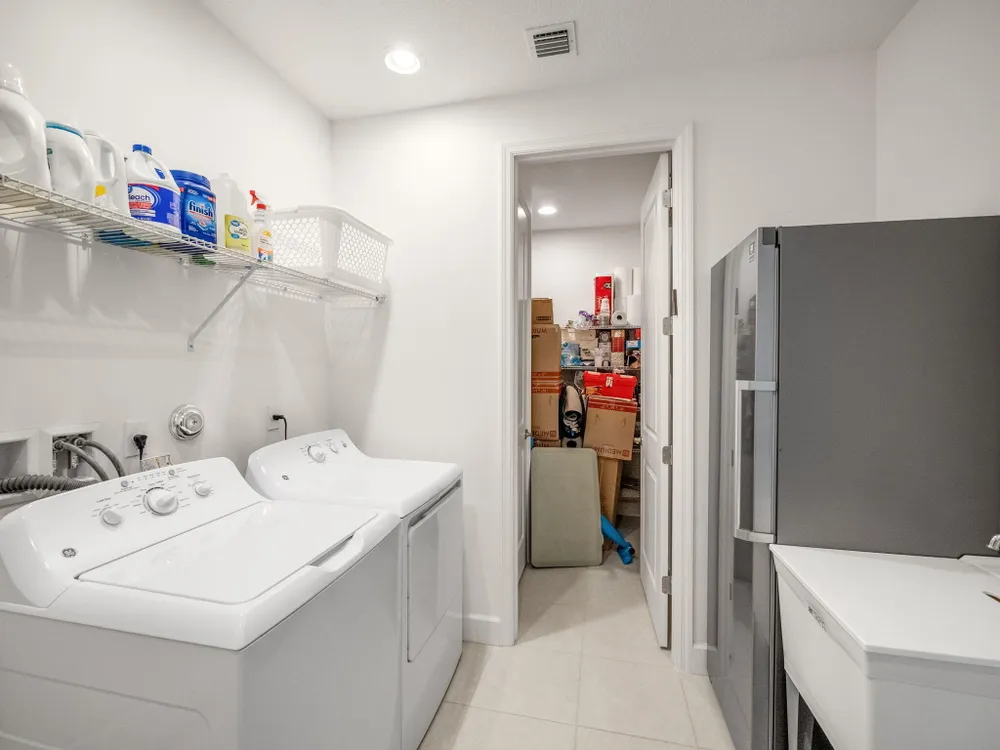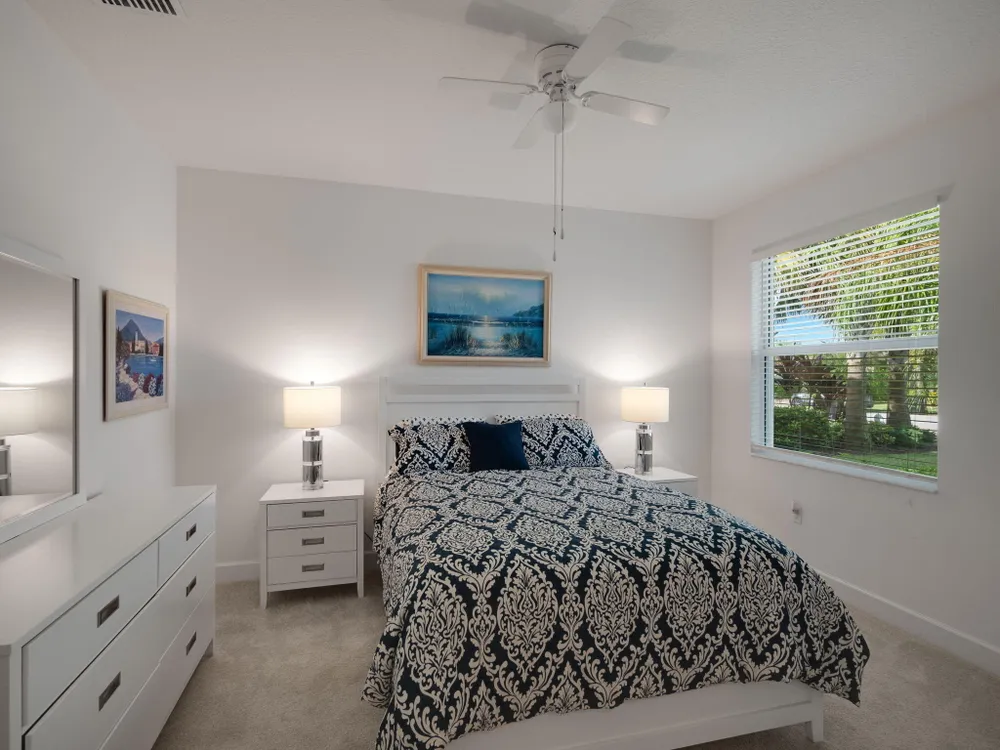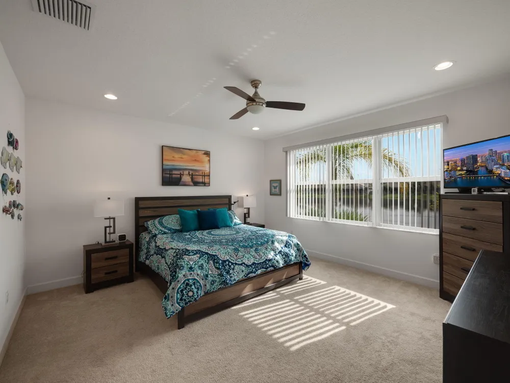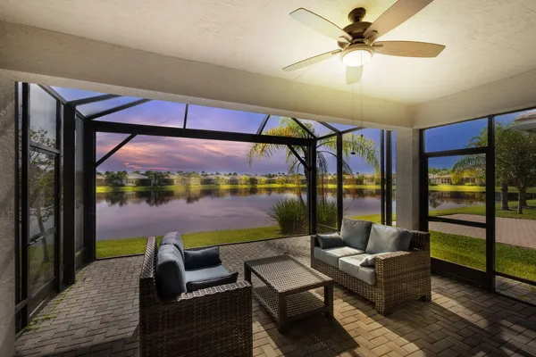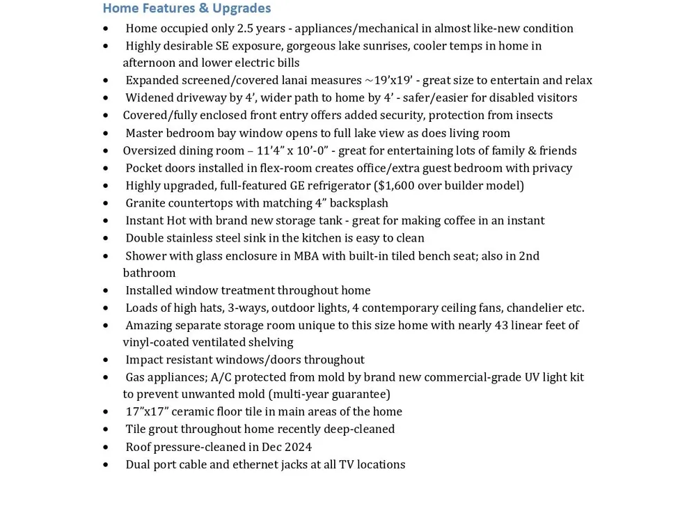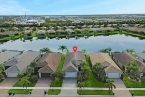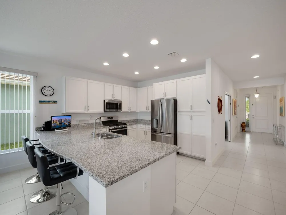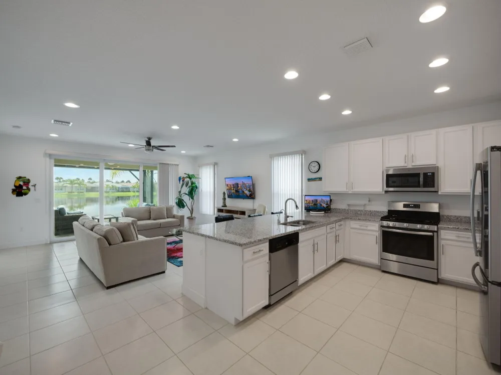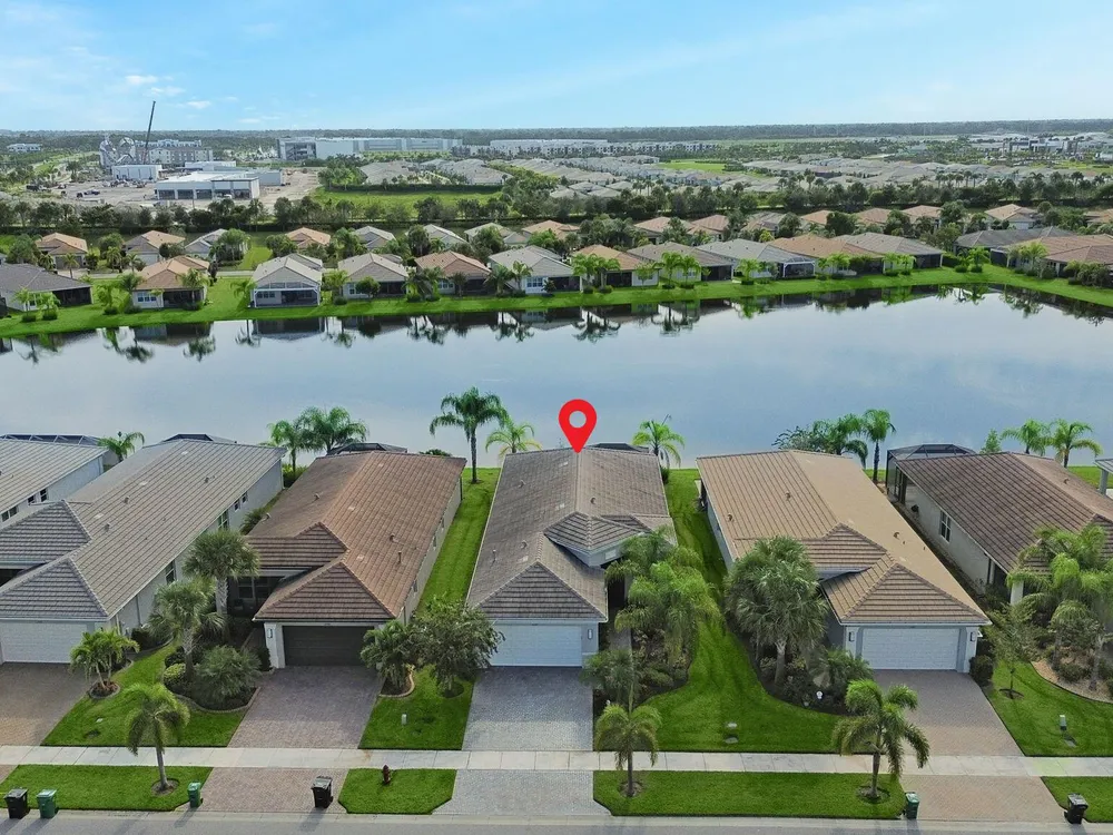 Why wait 10+ months to build when you can move right into this beautiful lakefront home today? Located in the desirable Valencia Cay 55+ community at Riverland, this lightly lived-in second residence offers 3 bedrooms, 2 bathrooms, and a versatile den that can easily convert into a private guest room.The gourmet kitchen is designed for both style and function, featuring granite countertops, a 4'' backsplash, a double stainless steel sink, and upgraded gas appliances, including a premium GE refrigerator valued at $1,600 more than the builder's model. The open-concept living and dining spaces flow seamlessly, highlighted by elegant 17''x17'' ceramic tile flooring--perfect for entertaining. Purchase includes a one year warranty on appliances.