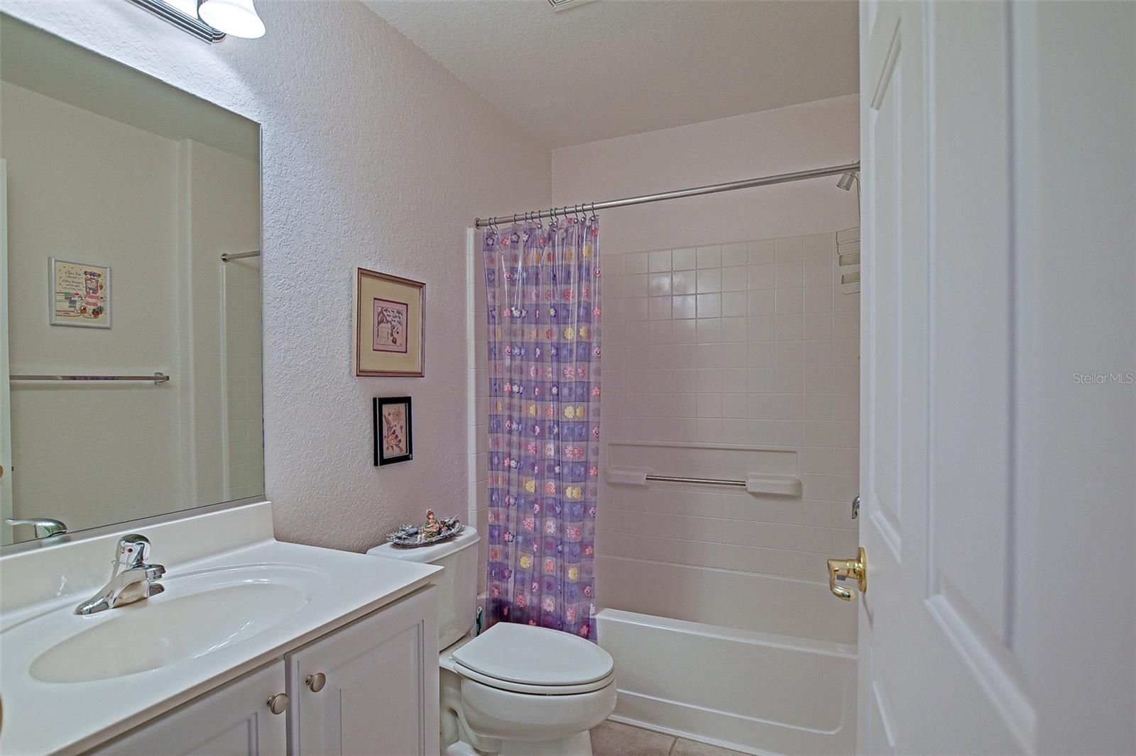 Popular floor plan, not too big and not too small, the Citation model boasts two bedrooms and two baths plus a den with French doors. The home only has carpet in the Primary bedroom and other rooms are tiled or have luxury vinyl laminate. The house has been re-piped. The roof was re-shingled in 2024 and has a new water heater. A plus is a whole house Brita pro water softener. The home is situated on a private lot in an area of the newest homes in the community and close to the North entrance. The second bedroom has a Murphy wall bed and extra storage cabinets that convey. The light kitchen cabinets have 36 in. uppers with crown molding and pull-out shelving and light appliances with newer refrigerator and dishwasher. There is a solar tube between the kitchen and living room for added light. The garage is extended to 25 ft and has pull down attic storage steps, a sink and has a screen enclosure and the screening was recently renewed. A spacious lanai is enclosed with glass windows and leads to an outside open patio. Driveway, sidewalk and lanai have a painted finish. The entertainment center, dining room set and master bedroom furniture can convey with purchase if desired. Don't miss this great home which that has only one owner and is well maintained.