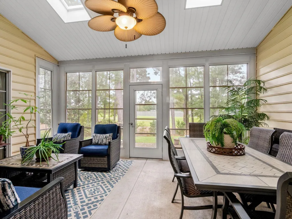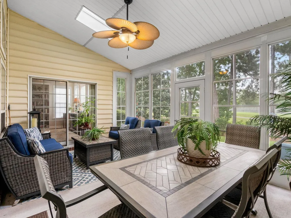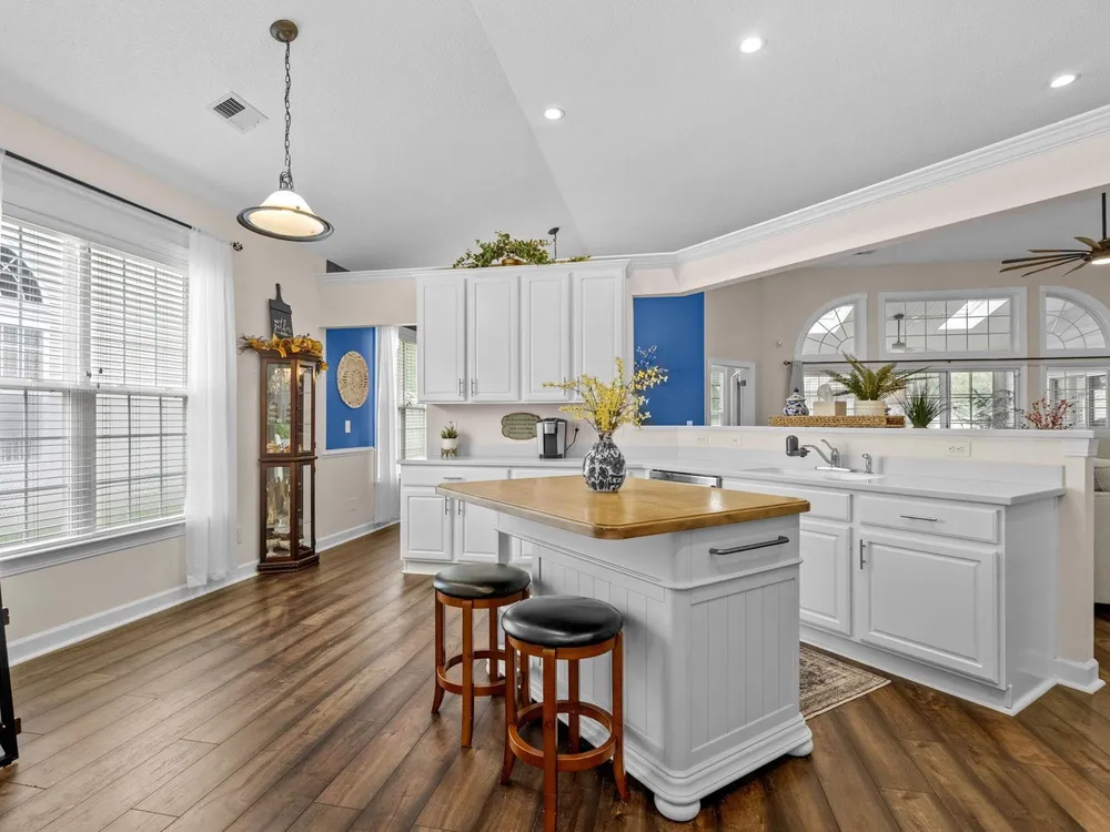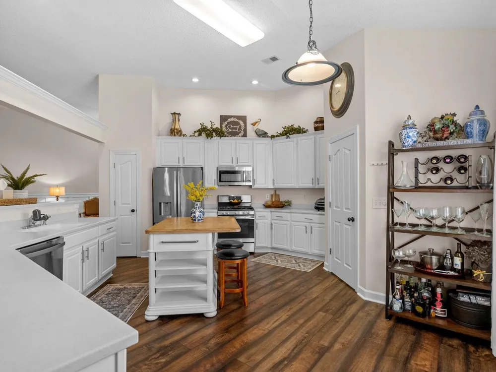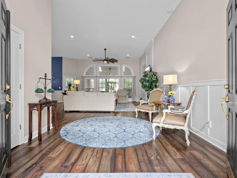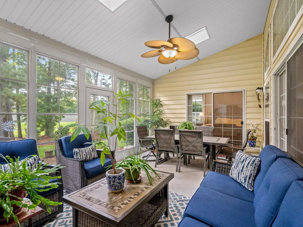 Golf course living at its finest! Situated in the highly sought after Blackmoor Community, this stunning home boasts a freshly landscaped yard and a bright, spacious interior with a large open floor plan and vaulted ceilings. Enjoy year-round beauty from the enclosed Carolina room, perfect for morning coffee or peaceful evenings. The living area features a cozy gas fireplace, while the chef’s kitchen shines with gas cooking, high-end stainless steel appliances (2021), and a separate dining room ideal for entertaining. Luxury continues throughout the home with high-end LVP flooring, a generously sized primary bedroom, and thoughtful upgrades including a new roof (2021), HVAC system (2020), and water heater (2025). Plentiful storage including true attic storage accessible in the garage as well as generously sized closets. Don’t miss this rare opportunity to own a beautifully updated home in the St. James School District —schedule your showing today or contact agent for a virtual showing.