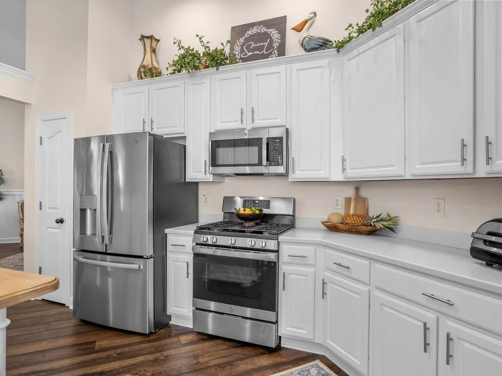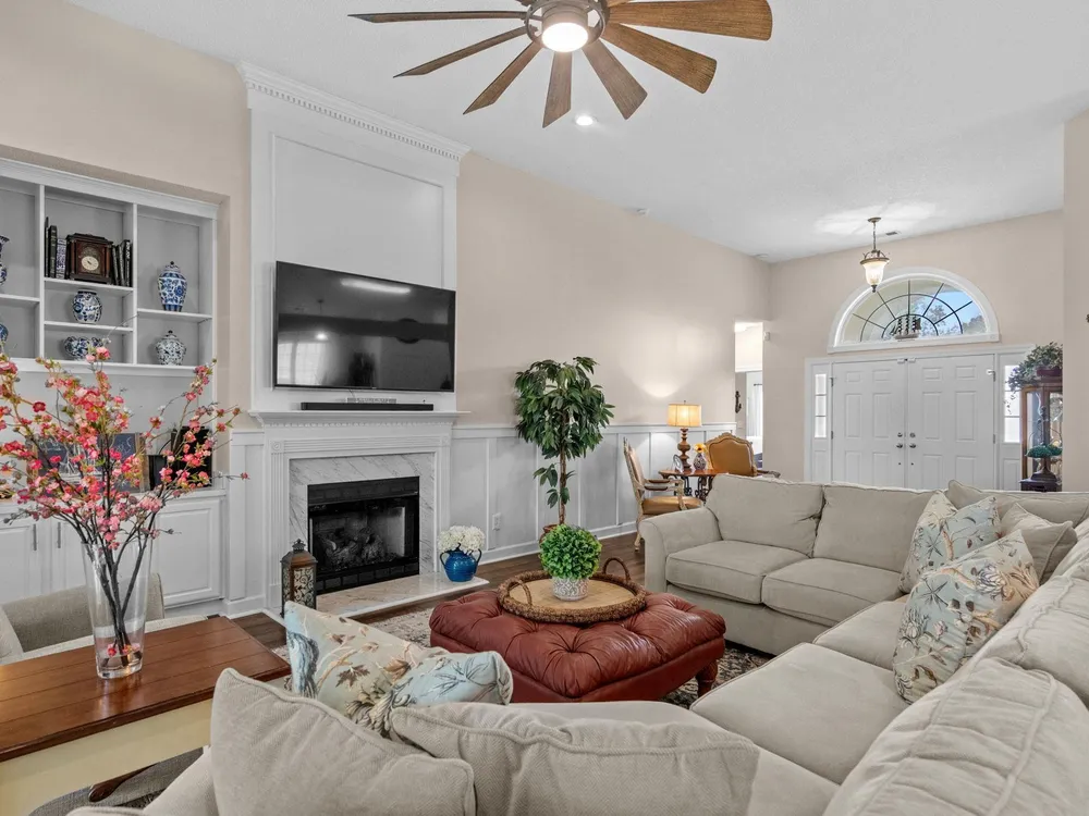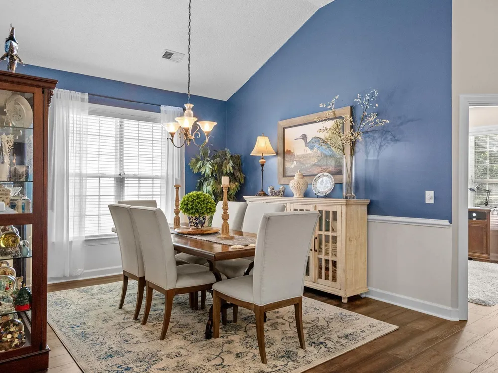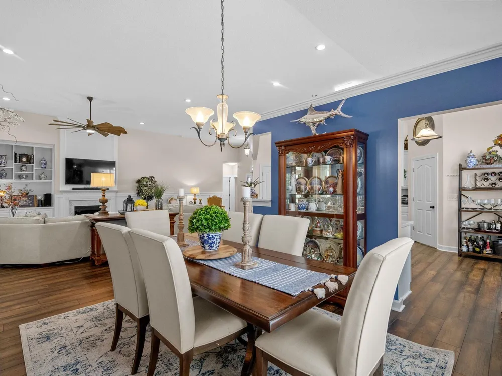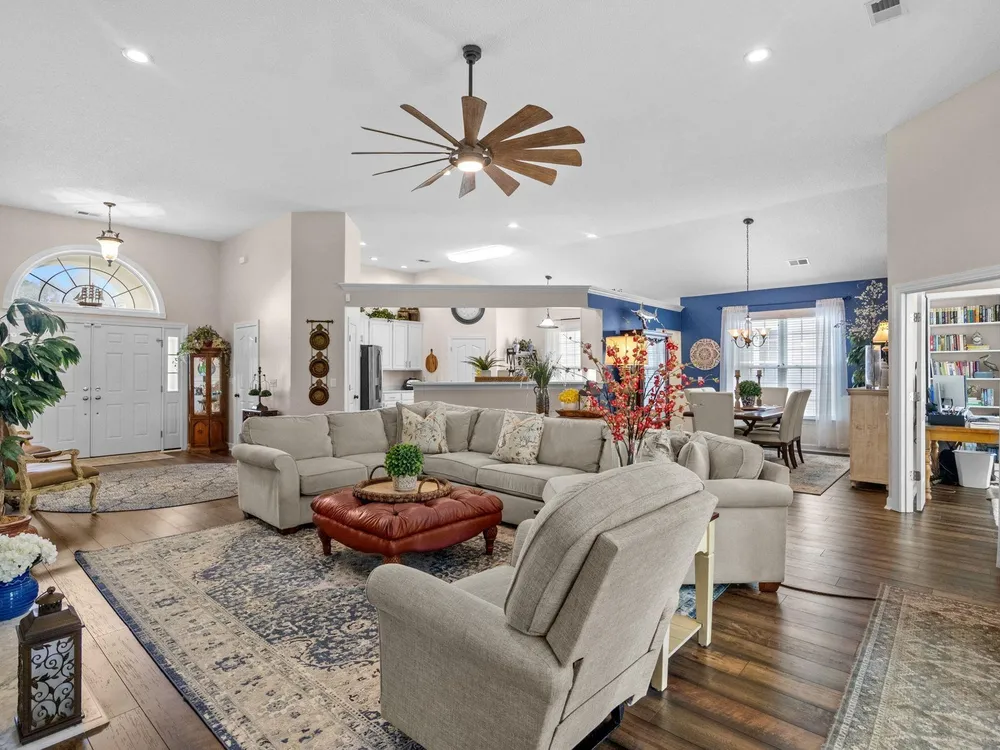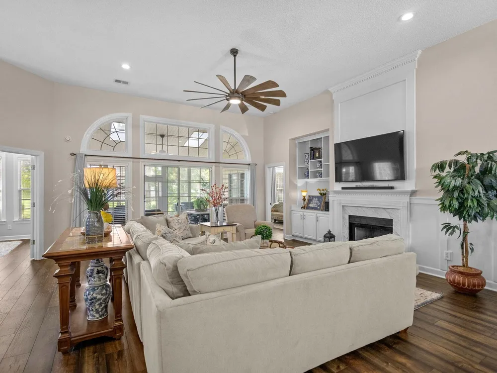 Golf course living at its finest! Situated in the highly sought after Blackmoor Community, this stunning home boasts a freshly landscaped yard and a bright, spacious interior with a large open floor plan and vaulted ceilings. Enjoy year-round beauty from the enclosed Carolina room, perfect for morning coffee or peaceful evenings. The living area features a cozy gas fireplace, while the chef’s kitchen shines with gas cooking, high-end stainless steel appliances (2021), and a separate dining room ideal for entertaining. Luxury continues throughout the home with high-end LVP flooring, a generously sized primary bedroom, and thoughtful upgrades including a new roof (2021), HVAC system (2020), and water heater (2025). Plentiful storage including true attic storage accessible in the garage as well as generously sized closets. Don’t miss this rare opportunity to own a beautifully updated home in the St. James School District —schedule your showing today or contact agent for a virtual showing.