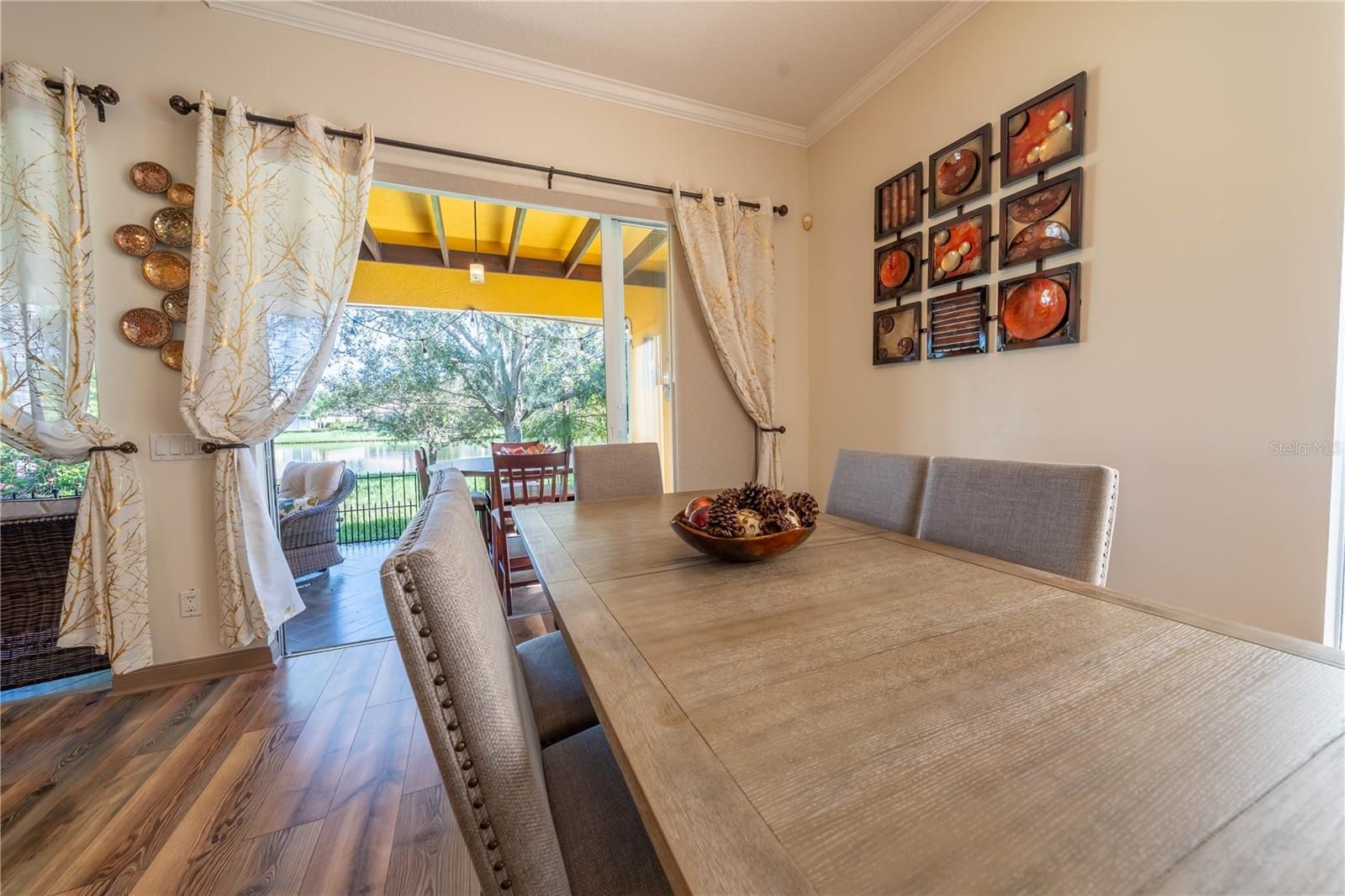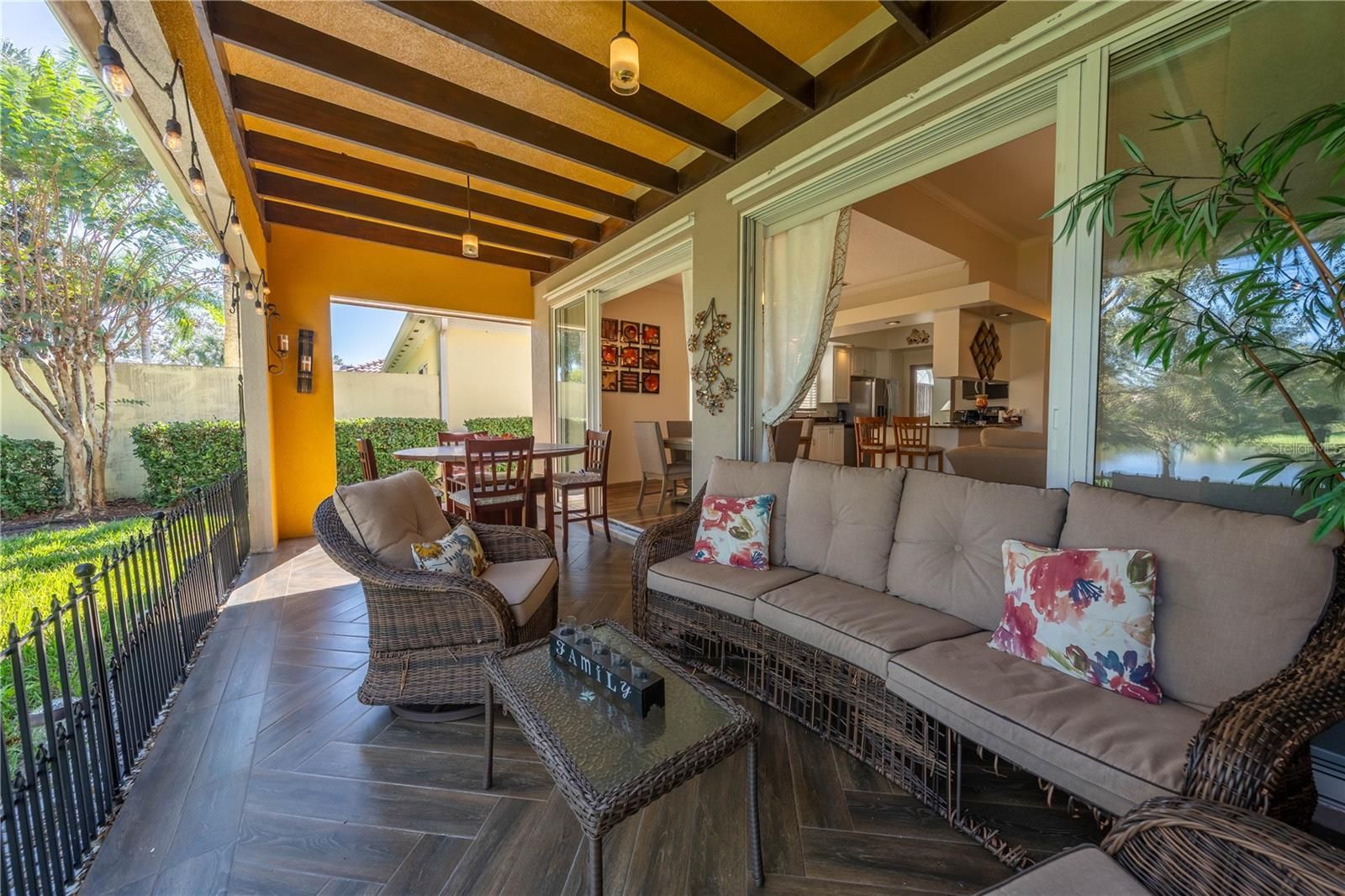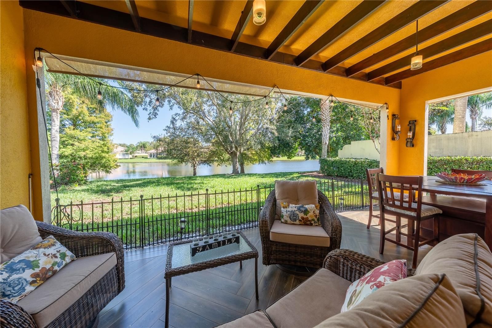 Welcome to this beautiful 24-HOUR GUARD GATED community of VillageWalk! This gorgeous 3-bedrooms plus OFFICE, 2-baths single family home with a 2-car garage offers an open floor plan bathed in natural light and serene lake view. FRESHLY transformed with new interior and exterior PAINT, beautiful new flooring, Newer AC, crown molding, kitchen counter tops, resurfaced cabinets, new hardware, new disposal and both bathrooms beautifully updated for MODERN comfort. Step out to your PRIVATE tiled patio with beamed ceiling-perfect for year-round entertaining. Village Walk's resort-style amenities include parks, walking trails, fitness center, heated lap pool, heated resort pool, community deli, on-site gas station, tennis courts and endless activities. In addition, you'll love the easy access to major highways (528, 417) Close to Orlando International Airport, Medical City, Boxi Park, Lake Nona Town Center, top-rated schools, and Nona Regional Shopping Center. Enjoy the lifestyle of luxury and convenience. Schedule your viewing today and experience all that this exceptional community has to offer. Hurry! Buyer to verify all MLS information.