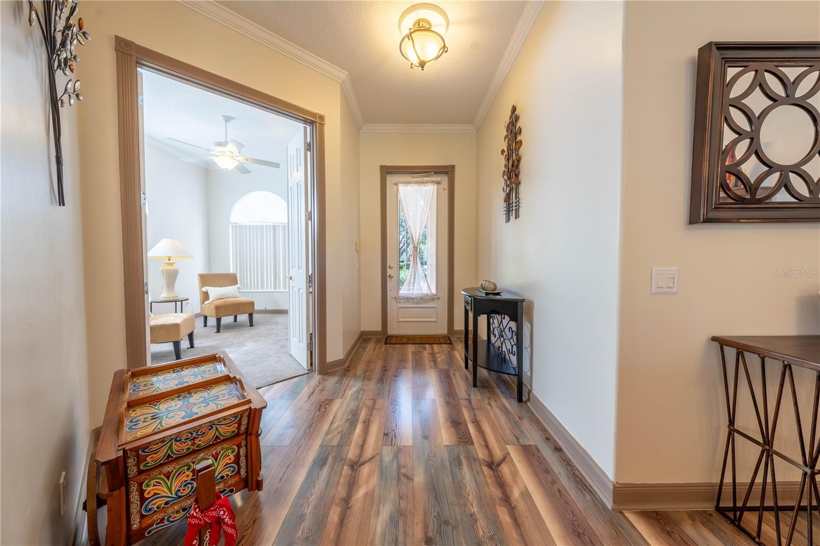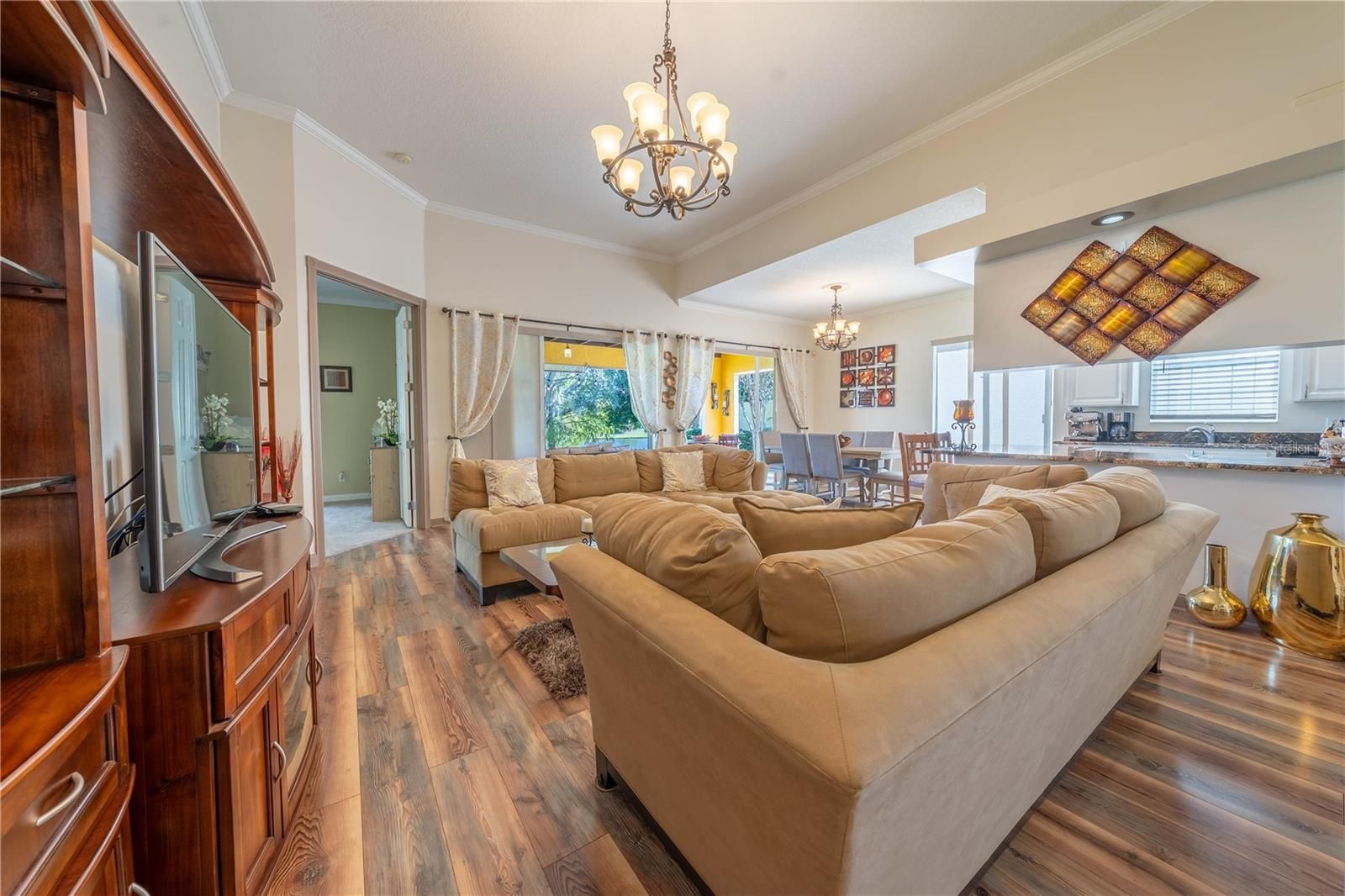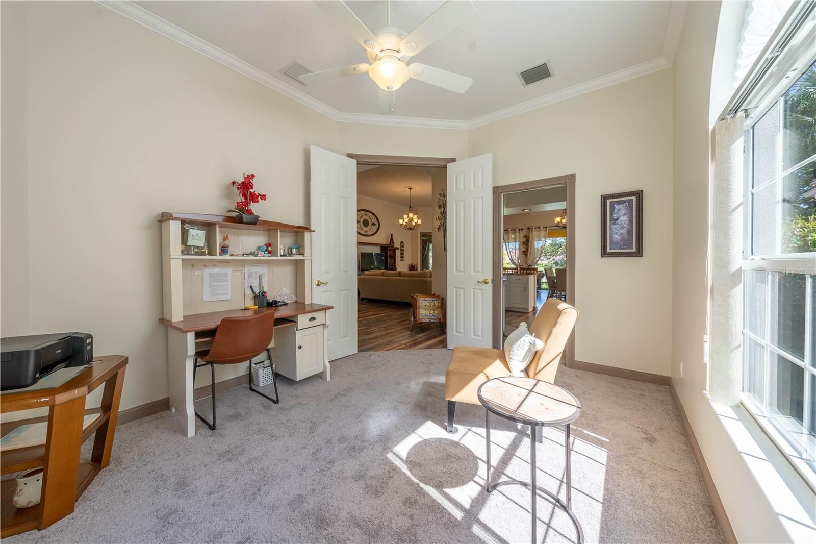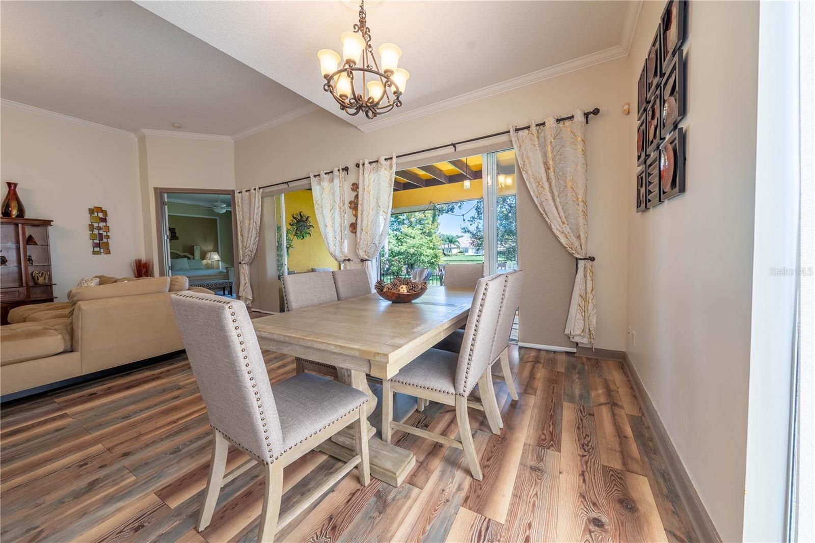 Welcome to this beautiful 24-HOUR GUARD GATED community of VillageWalk! This gorgeous 3-bedrooms plus OFFICE, 2-baths single family home with a 2-car garage offers an open floor plan bathed in natural light and serene lake view. FRESHLY transformed with new interior and exterior PAINT, beautiful new flooring, Newer AC, crown molding, kitchen counter tops, resurfaced cabinets, new hardware, new disposal and both bathrooms beautifully updated for MODERN comfort. Step out to your PRIVATE tiled patio with beamed ceiling-perfect for year-round entertaining. Village Walk's resort-style amenities include parks, walking trails, fitness center, heated lap pool, heated resort pool, community deli, on-site gas station, tennis courts and endless activities. In addition, you'll love the easy access to major highways (528, 417) Close to Orlando International Airport, Medical City, Boxi Park, Lake Nona Town Center, top-rated schools, and Nona Regional Shopping Center. Enjoy the lifestyle of luxury and convenience. Schedule your viewing today and experience all that this exceptional community has to offer. Hurry! Buyer to verify all MLS information.