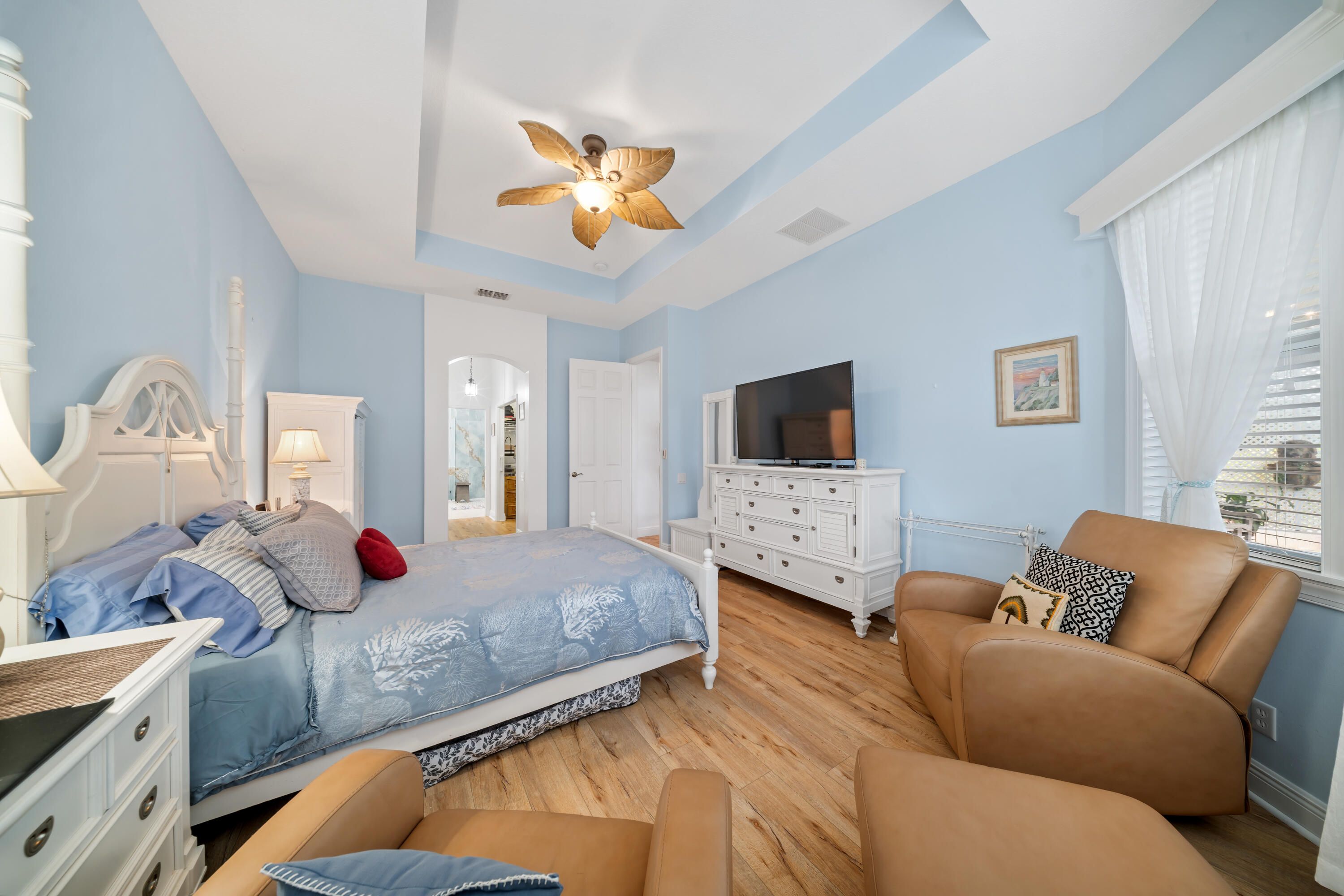 Back on market. Levitt built quality home. Nautilus model has many upgrades.This home has been very well maintained. Impact doors and windows. Custom wood features include window casings and valences. Crown molding organizational closets in Master bedroom. Office book cases, electric fireplace and mantel with 65'' flat panel. Built in love seat in guest bedroom with storage Master bathroom total renovation with features found in much higher priced homes. 42'' kitchen cabinets with granite tops. Newer AC, and hot water heater installed late 2024. New washer 2025 with dryer, that has roll out platform.