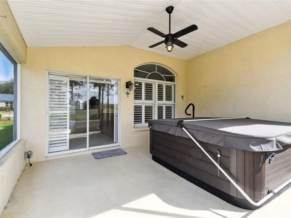 SEIZE THE OPPORTUNITY TO OWN A PIECE OF "PARADISE" IN HERITAGE PINES GOLF AND COUNTRY CLUB. THIS GOLF COURSE FRONTAGE HOME HAS BEEN METICULOUSLY MAINTAINED AND FEATURES AN OPEN FLOOR PLAN AND NUMEROUS RECENT UPGRADES WITHIN THE PAST FOUR YEARS INCLUDING A NEW ROOF IN 2021, EXTERIOR PAINT 2022, INSTANT HOT WATER HEATER 2023, HVAC SYSTEM 2023, WATER SOFTENER 2024, ELECTRIC GARAGE SCREEN 2024, NEW FLOORING IN BEDROOMS AND DEN, FULLY UPDATED MASTER BATH, REFINISHED KITCHEN CABINETS AND COUNTERTOP, PLANTATION SHUTTERS, KITCHEN APPLIANCES AND MUCH MOOR! ENJOY YOUR LANAI WITH AMAZING HOT TUB AND A "TEE TO GREEN" VIEW OF THE 11TH GOLF HOLE. OUTSTANDING CLUBHOUSE, BAR, RESTAURANT, GAME ROOM, EXERCISE ROOM, HEATED OLYMPIC SIZE SWIMMING POOL AND OUTSTANDING PERFORMING ARTS CENTER. ALL OF THIS IS LOCATED JUST ACROSS FROM THE PICKLEBALL, TENNIS AND BOCCE BALL COMPLEX. OH!! DON'T FORGET TO ASK ABOUT OUR BUYER INCENTIVE!
