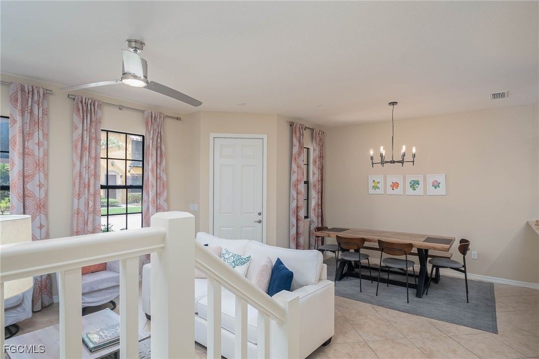 LEAST EXPENSIVE THREE BEDROOM CURRENTLY ON THE MARKET IN PASEO! Absolutely adorable, TURNKEY furnished, Santa Anna townhome, located ON A QUAD! So many upgrades! This home features 3 bedrooms, 2.5 bath and 2 car garage. Extra large master bedroom features Juliet balcony and en suite bath. Built in double desk upstairs to act as office/den, perfect for working from home. Quads feature semi-private pool and park area, right out your back door. This one will not disappoint. PASEO VOTED COMMUNITY OF THE YEAR 9 YEARS IN A ROW!! Come relax by the RESORT STYLE POOL or enjoy a beverage at the TIKI BAR. Watch a game at the PUB or enjoy brunch at the BISTRO. Grab a friend and watch a movie in the cinema or work out in the FULLY EQUIPPED GYM. New lighted bike path will connect you to Lee County bike trail system. Enjoy a game of doubles on the 6 har tru TENNIS COURTS or join in the fun at the PICKLE BALL COURTS!! Come enjoy the PASEO LIFESTYLE