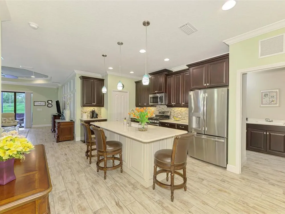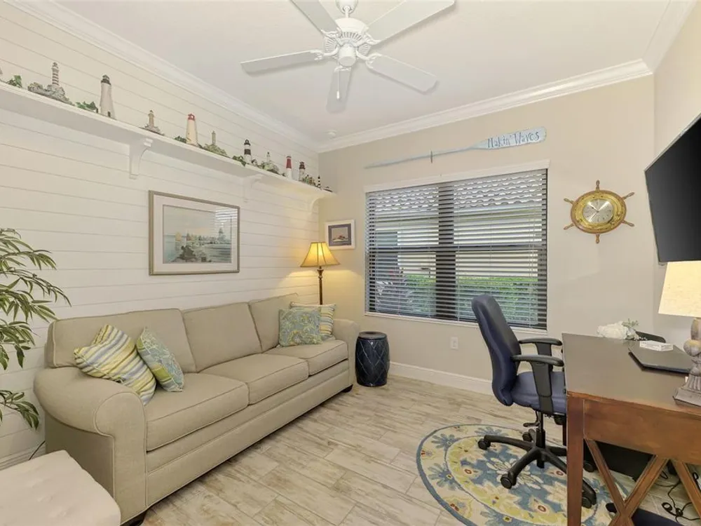 Welcome to this stunning Partially Furnished 3-Bedroom 2-Bath Sandcastle Villa with a Study/Den and HIGH IMPACT GLASS WINDOWS AND DOORS offering maintenance-assisted living located in the sought-after community of Grand Palm! Why buy new construction when you have many upgrades provided for you! With 1,845 square feet of luxurious living space, this residence is ideal for both everyday comfort and entertaining. This Villa section of Grand Palm includes your own community pool, spa, and BBQ grill area in addition to all the other amenities offered in Grand Palm! Built in 2018, this Villa is immaculately presented, offering an open-concept floor plan with spacious living areas perfect for entertaining. This Villa has a Generator w/transfer switch in addition to the High Impact Windows giving you peace of mind and additional protection! The bright and expansive kitchen with upgraded appliances and pull-out shelves is equipped with a large island, ample counter seating, abundant storage, and numerous upgrades including quartz countertops, and stainless-steel appliances with gas cooking. The split bedroom design with two bedrooms in the front and the primary suite in the back is perfect for family and guests. The primary bedroom is spacious, with two custom walk-in closets and an ensuite bathroom featuring dual sinks and a walk-in shower. The pocket sliding glass door completely opens the great room onto a large, covered, extended screened lanai for quiet evenings enjoying the area’s most beautiful sunsets. The great room features a coffered ceiling with custom crown molding for those extra added touches. Grand Palm is an amenity-rich community with an abundance of activities to keep you busy with 26+ miles of walking/biking paths, tennis, pickleball, a fitness center, three additional community pools, splash pad, dog parks and a full-time activity coordinator. Just a short drive to beautiful Gulf Beaches, Historic Downtown Venice, Vibrant Wellen Park, the Atlanta Braves Stadium and easy access to I-75 and numerous airports to choose from. Living the life you have earned can be more than just a dream, so schedule your private showing today!