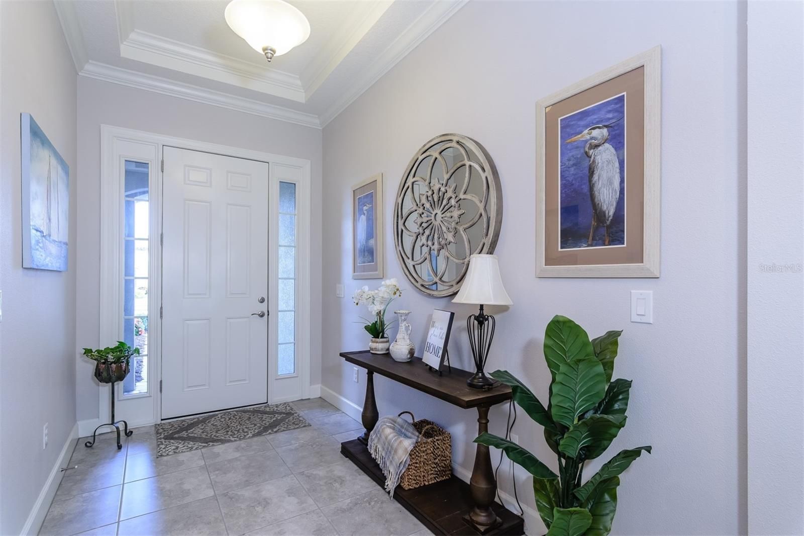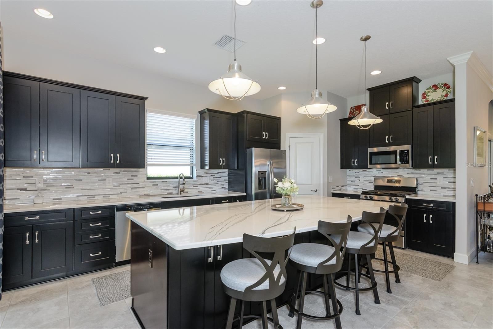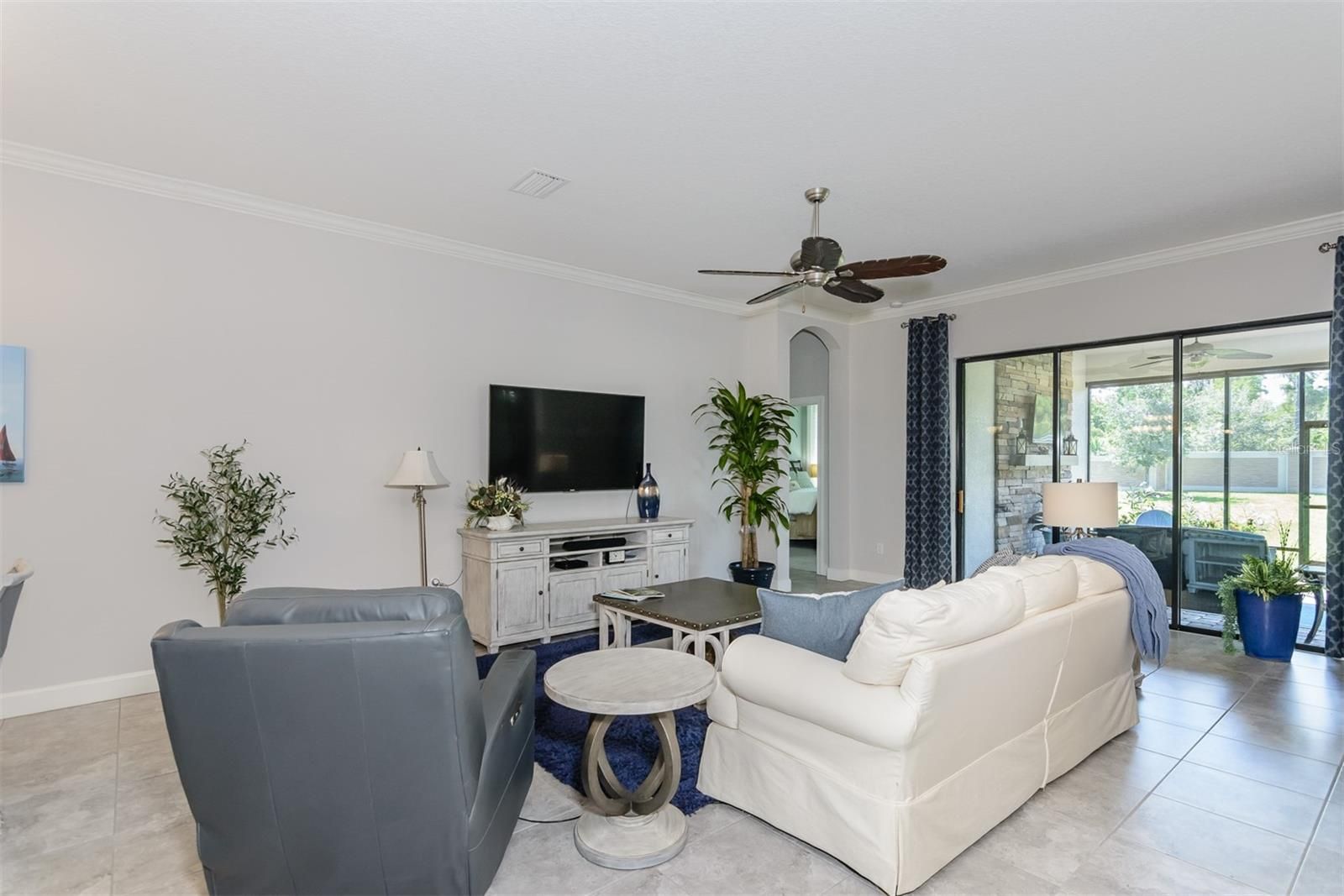 SELLER MOTIVATED - Welcome to Esplanade at Starkey Ranch, a prestigious gated community. MAINTENANCE FREE - The quarterly HOA fee includes maintenance of the lawn, bushes, and irrigation system. This beautiful Taylor Morrison, Lazio model home located on a premium OVERSIZED lot has 3 bedrooms, plus office/den or 4th bedroom, 3 bathrooms, and a 2.5-car garage and no rear neighbors. Lovely brick paved sidewalk and driveway with lush landscaping which lead you into this amazing home. The back yard is private, huge and is lovely landscaped. The foyer is large, bright, and airy. The open concept kitchen, living/dining room design maximizes space and makes it easy to entertain. The kitchen boasts: quartz counters, 42” cabinets, island with a breakfast bar and cabinets, gas stove, stainless steel appliances, a closet pantry, and a sliding door to the Lanai. The (22’X24’) Lanai is screened, with roll down blinds for added privacy and lovely brick paver floor and a gorgeous featured wall. The primary bedroom is large with a door to the outside Lani, it features: a massive walk-in closet with custom cabinetry, a huge ensuite bathroom with a walk-in shower, granite counters and dual sinks. There are 2 additional bedrooms with lots of closet space and one of the bedrooms has its own private ensuite with walk in shower, granite counter top sink. An additional Hall bathroom with granite counter and a tub and shower. A bonus room is the office/den/or 4th bedroom. There are volume ceilings and crown molding throughout this incredible home. Separate laundry room with door to the garage. The garage floor is finished with epoxy and there is an abundance of shelving. This home also comes with a HOME WARRANTY. Esplanade offers a beautiful private Club House, a resort style pool, a resistance pool or rejuvenating spa, 24 hour fitness center, billiard/card room, a kitchen, tennis/pickleball courts, playground, firepit, and a dog park. There is a lifestyle director to organize activities which you can engage in with the community. Also, the surrounding Starkey Ranch Community has many miles of trails, pools, parks, playgrounds, and a library. It is close to great schools, churches, restaurants, shopping, the Suncoast highway, Golf courses, and a short drive to Florida’s award-winning beaches. This home is a must see!!!
