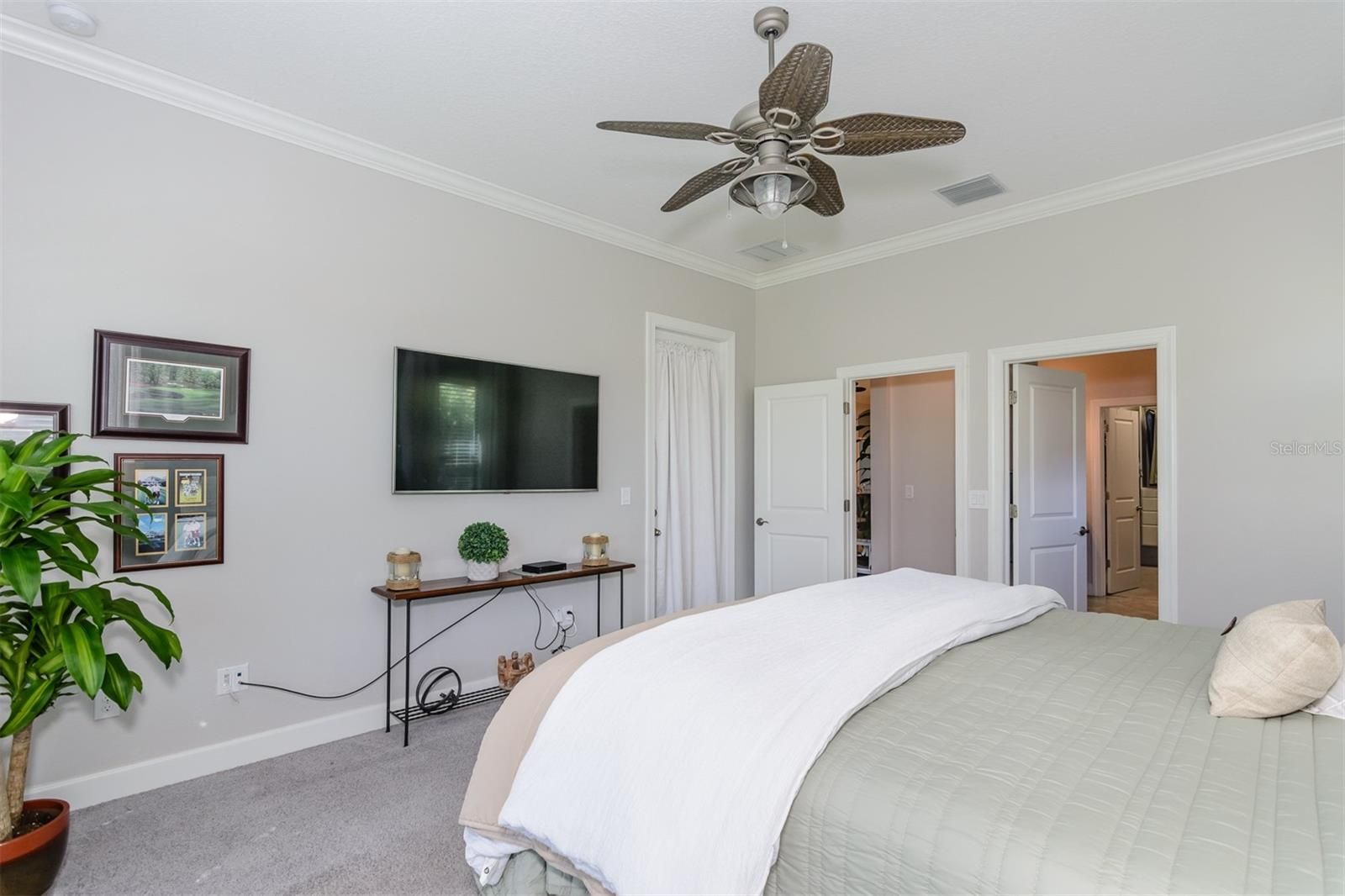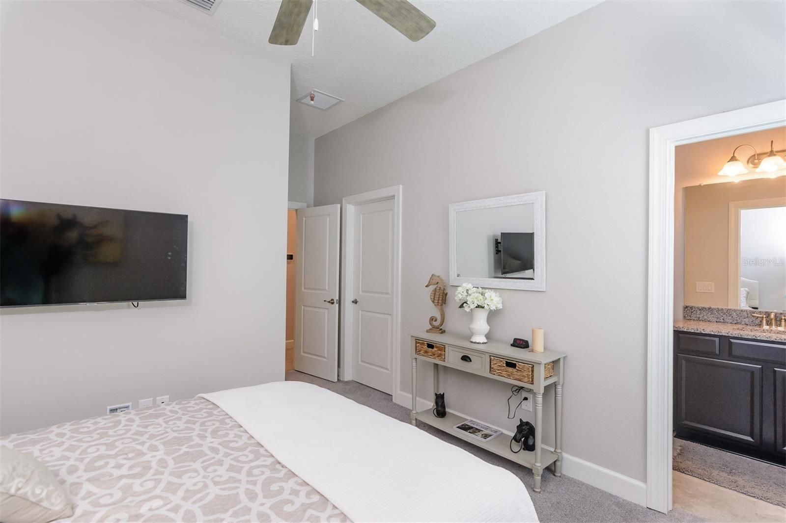 - Ceiling Fan(s), In-Wall Pest Control, Kitchen/Family Room Combo, Open Floorplan, Main Level Primary, Split Bedrooms, Tray Ceiling(s), Walk-In Closet(s)