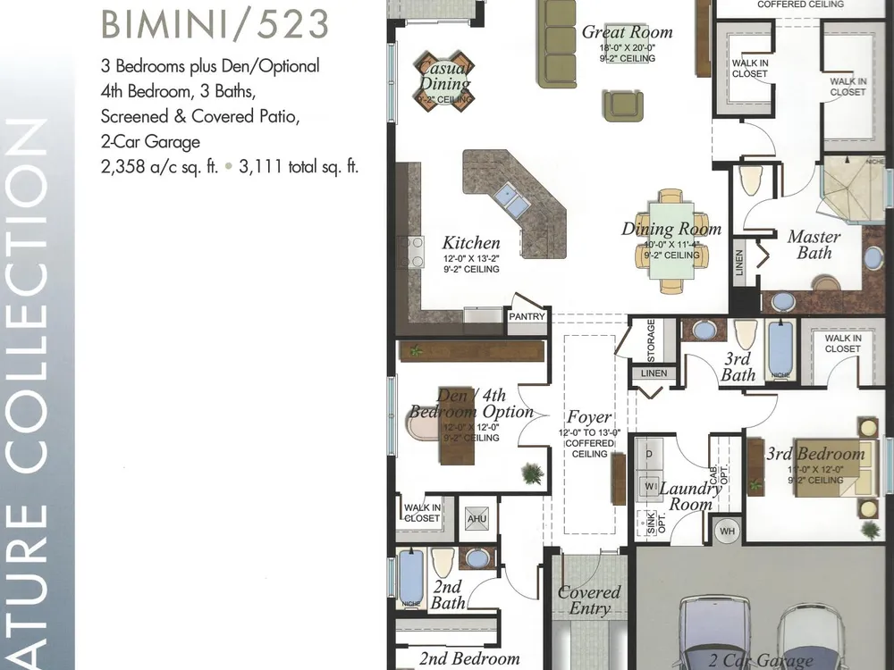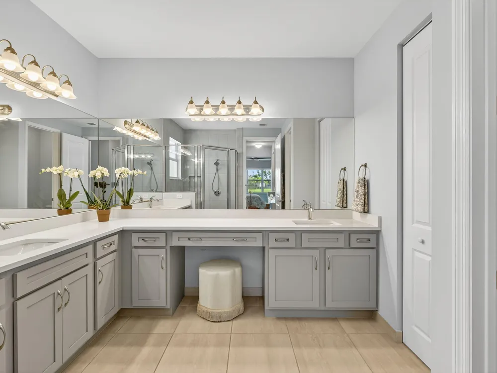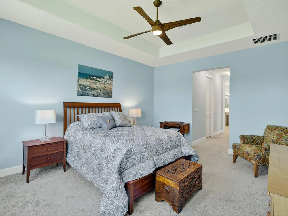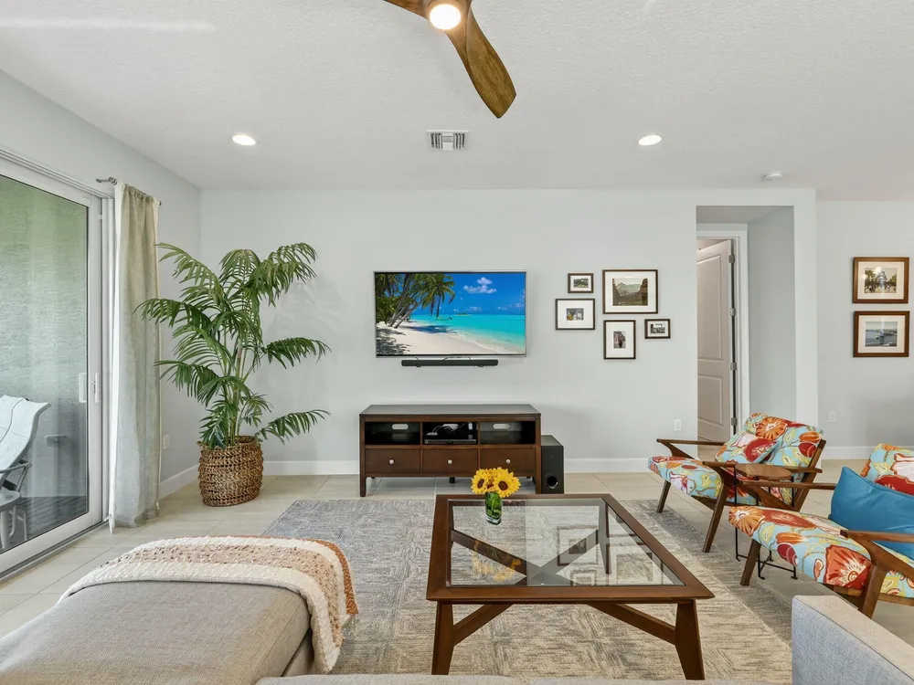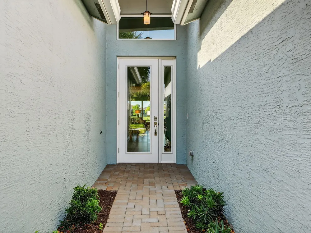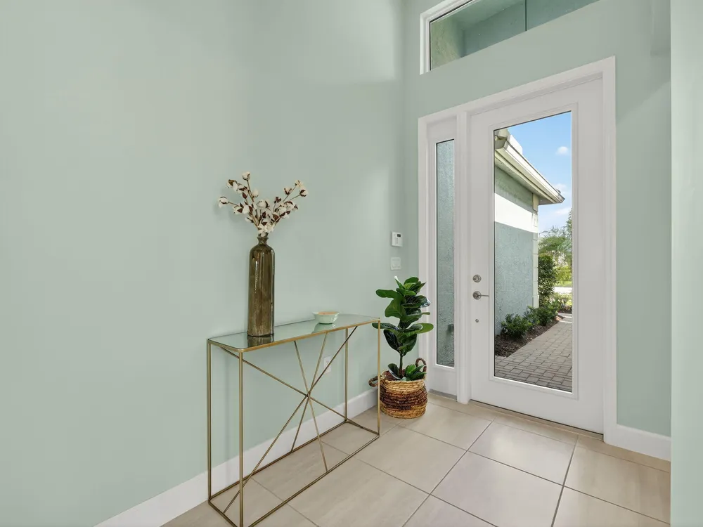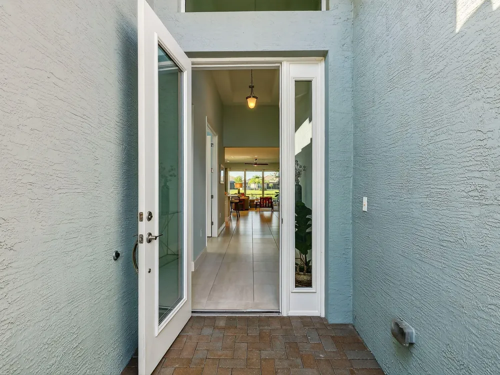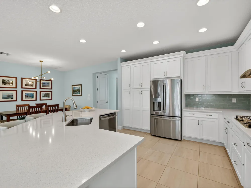 Welcome to your dream home in the sought-after 55+ community of Valencia Cay at Riverland! This beautifully designed Bimini Model sits on an oversized premium lakefront lot, offering breathtaking water views and the perfect blend of luxury, comfort, and lifestyle. Featuring 3 spacious bedrooms, 3 full bathrooms, a den/flex room, and over 2,358 sq. ft. of living space, this open-concept layout is ideal for entertaining and everyday living. The gourmet kitchen boasts quartz countertops, stainless steel appliances, a large island, and upgraded cabinetry, seamlessly flowing into the expansive great room and dining area, all overlooking the large, covered patio and sparkling lake with a south exposure.