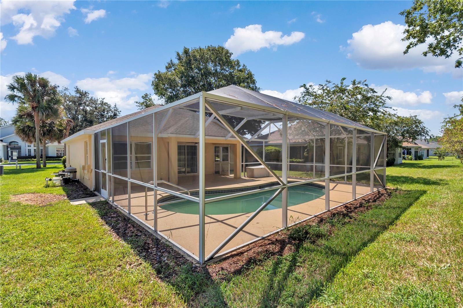 PRICE REDUCED.......COZY,POOL HOME ON THE GOLF COURSE in the Laurel Oaks neighborhood of Oak Run. Drive into your gated community and pull into the driveway of your perfectly sized 2 bedroom/2 bathroom split floor plan home, positioned directly on the golf course. This home is clean and well maintained with recent updates. With Brand New big ticket items: Roof (August 2025), AC (July 2025 )and New Luxury Vinyl Plank flooring taken care of, you can relax with years of peace of mind! Walking into the home you are greeted with vaulted ceilings, a view out to your screened lanai and especially in the summertime an inviting crystal clear pool. Bedrooms are on opposite sides of the home for greater privacy with the master bedroom boasting a private on-suite bathroom. The kitchen has new butcher block counter tops, a café/breakfast area with views of the pool and the golf course. You can access the pool through the kitchen and the main living room. This 55+ community has plenty of nearby amenities including access to 18-hole golf course, driving range, multiple pools, a library and much more!. Recreational activities like shuffleboard, pickle ball, bocce ball and horseshoes. . Enjoy a meal at the country club restaurant Oak Room Bar & Grill. There is even a social area for your furry friend at the Thatcher Dog park. With numerous clubs to join and activities such as dances, plays, and bingo, there’s always something to do. Come and see this home and make it a part of your life's next chapter!