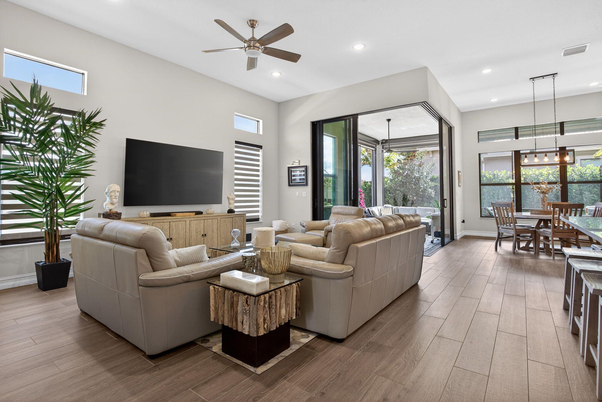 TRANSFER of LOVE ~ Experience the elegance of guard gated 55+ luxury living in the prestigious Parkland Royale at Four Seasons. This stunning home boasts an open-concept floor plan flooded with natural light, featuring chef's kitchen, oversized island, quartz counters, elegant porcelain flooring throughout, full impact glass and upgrades galore. Step outside to your private oasis, perfect for entertaining or relaxing. 2 Bedrooms, Den and Office that are easily convertible to additional Bedrooms and 4 exterior surveillance cameras. Residents enjoy world-class amenities to include ~ clubhouse, fitness center, pickleball, tennis and resort style pools. Live the Vacay Life EVERY day in South Florida's premier active adult community!