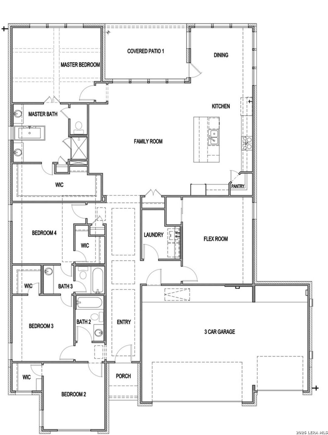 ** March Ready! ** The Elgin is a stunning single-story home that sits on a greenbelt, featuring 4 bedrooms, 3 baths, 3 car garage and a flex room with 2,506 sq' of spacious and comfortable living. From the moment you step inside, you'll be greeted by an inviting entryway, with high ceilings that adds a touch of elegance. The open-concept design seamlessly connects the family room and eat-in kitchen, creating the perfect space for entertaining friends and family. The kitchen is a chef's dream, boasting oversized island that offers both style and functionality. The layout of the home offers convenience and privacy, with two secondary bedrooms and a full bathroom located near the entry, and a flex room and utility room located off the entry from the garage. The private main bedroom is a true retreat, tucked away at the back of the house. It features a large and relaxing ensuite bathroom, complete with a free standing tub and shower, dual vanities, and a spacious walk-in closet. The Elgin showcases a range of additional features that enhance the overall appeal of the home. Includes luxury vinyl plank flooring, pre-plumb for a water softener, and full yard landscaping and irrigation, every detail has been thoughtfully considered.