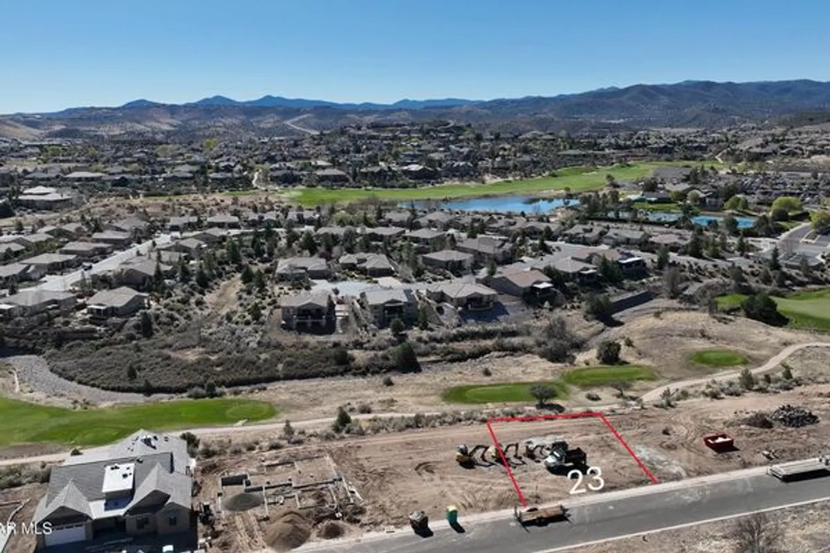 GOLF COURSE PROPERTY New Construction 2025, Featuring the Plan 1 design - 2,417 sq ft, this future home offers 3 bedrooms, 2.5 baths, an open floor plan, entertainer's kitchen with large island, elevated ceilings in the living room with fireplace, walk-in closets, a 3-car garage, and expansive windows that fill the home with natural light. Enjoy seamless indoor-outdoor entertaining with panoramic views of The Dells and Hole #8 of The Club at Prescott Lakes private golf course. Located within the Prescott Lakes community, residents enjoy access to resort-style amenities including clubhouse, fitness center, pools, and more. With the semi-custom build option, you can personalize finishes and details to create your perfect home in one of Prescott's most desirable communities