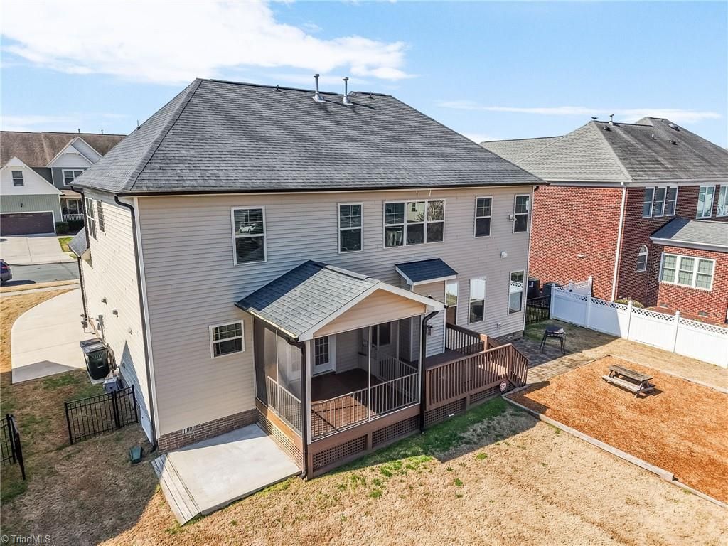Beautiful 5-bedroom, 3-bath home with bonus room and loft in sought-after Mackintosh on the Lake! This bright, open floor plan features wood flooring and a spacious living room that flows seamlessly into the breakfast area and kitchen with stainless steel appliances—perfect for everyday living and entertaining. The main level offers excellent flexibility with a private home office plus a separate bedroom and full bath ideal for guests or multi-generational living. A charming storage nook under the stairs creates a fun space for kids, a cozy reading nook, or pet area. Upstairs you'll find the primary suite, three additional bedrooms, a versatile loft/family room, and a large bonus room perfect for a media room or playroom. Enjoy the fully fenced in backyard with screened porch, deck, and patio. The garage features epoxy floors and built-in cabinetry for additional storage. Community amenities include pool, tennis courts, playgrounds, clubhouse and fitness center. Love where you live!