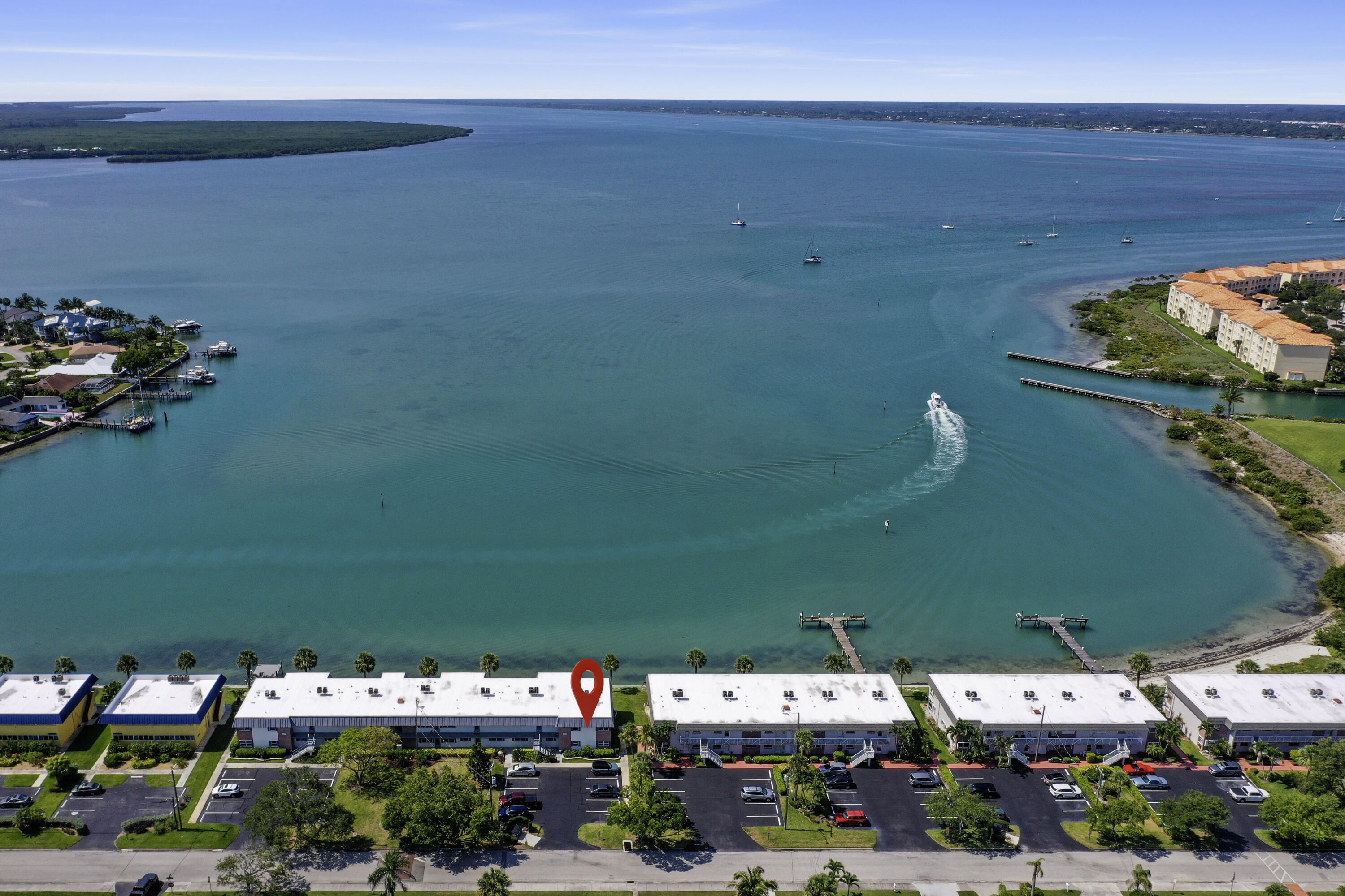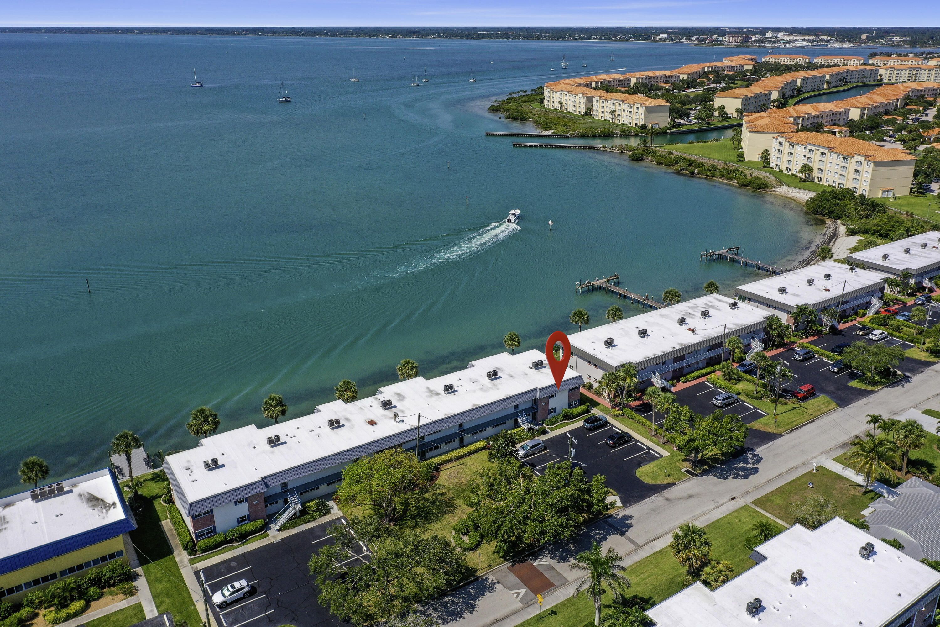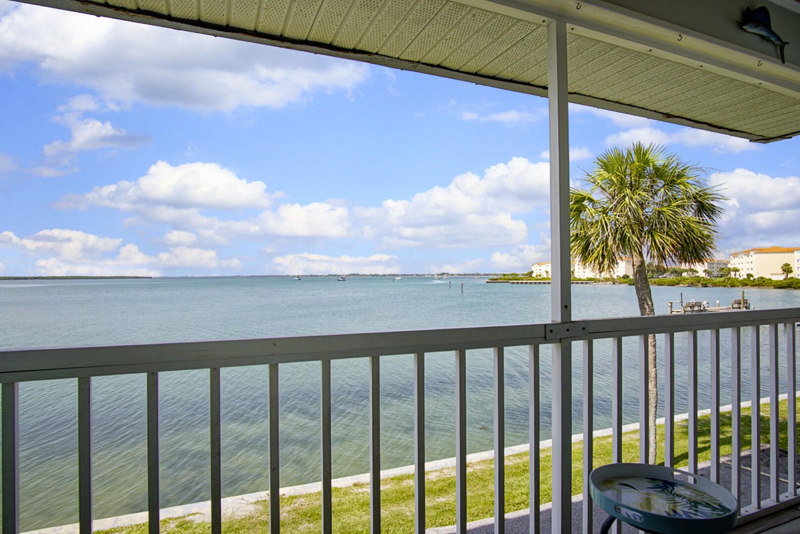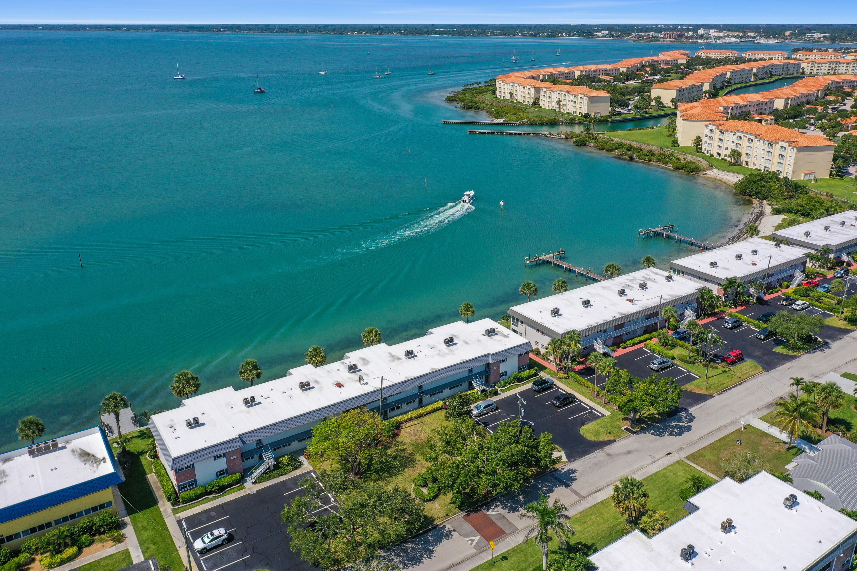 Tucked away just moments from the shoreline, this immaculate 2-bedroom, 2-bath end unit delivers the ultimate in coastal comfort and convenience. Step inside to find sweeping views of the Indian River Lagoon and Intracoastal Waterway from nearly every room. The interior is crisp and move-in ready, featuring elegant porcelain tile, sleek granite countertops, updated baths, and thoughtfully designed closet built-ins. A balcony porch invites quiet mornings or breezy evenings, while the community offers everything from a pool and tennis courts to shuffleboard and a lively clubhouse. With dock space available for your boat—and storage for your RV or trailer—this island retreat has everything you need to start living the Florida lifestyle. A rare find in pristine condition—don't miss it!