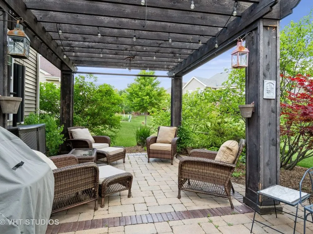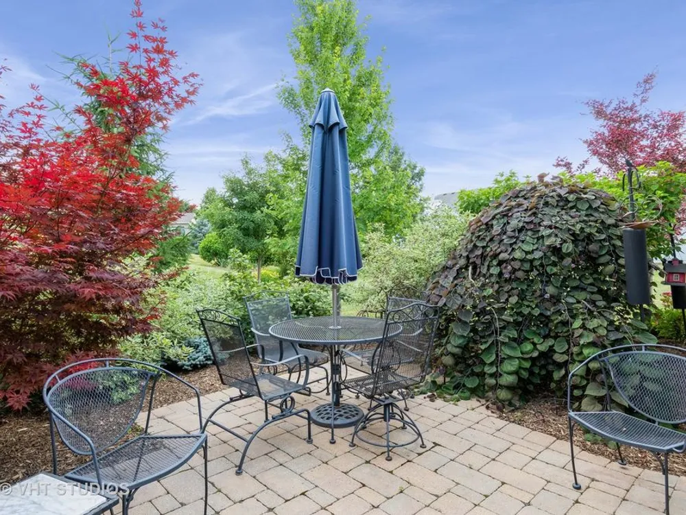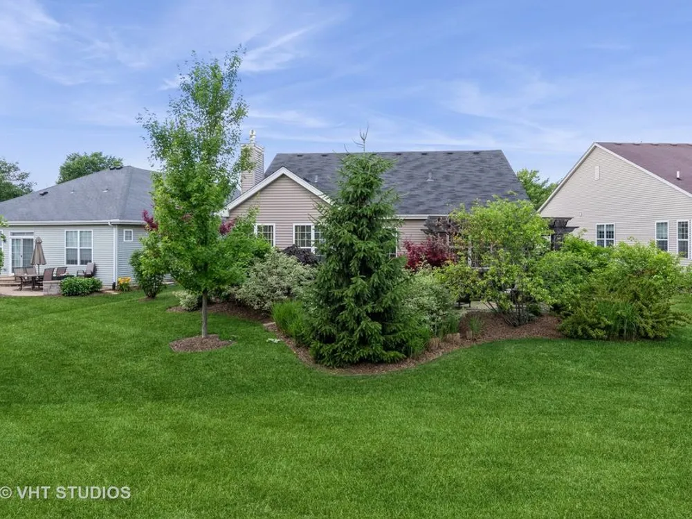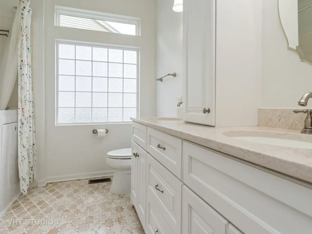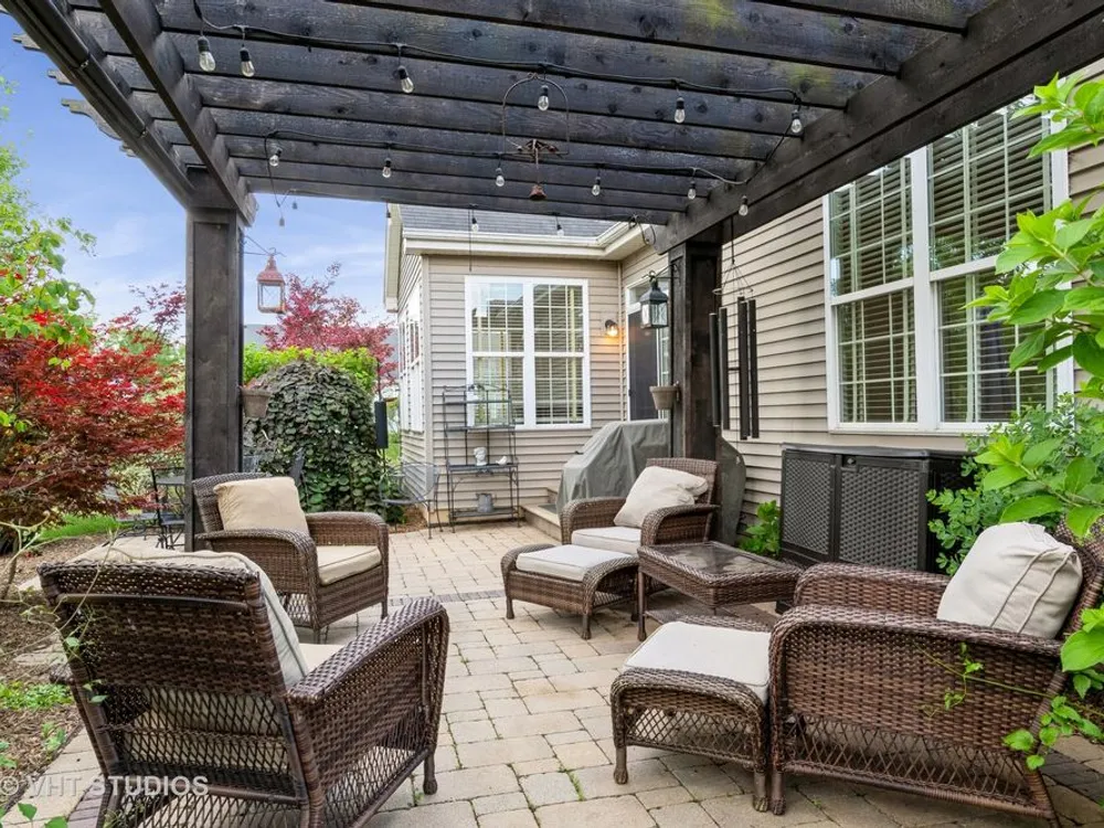 One-of-a-kind and move-in ready! This stunning expanded Greenbriar model has been thoughtfully remodeled and freshly painted throughout, offering exceptional style and space in the sought-after Carillon at Stonegate, a vibrant 55+ active adult community. The gourmet kitchen boasts 42" white soft-close cabinetry, quartz countertops, glass tile backsplash, under-cabinet and recessed lighting, stainless steel LG appliances, a large pantry, and a full wall of extra cabinetry-open to an extended family room with cozy brick fireplace and sliding doors to the backyard. The spacious primary suite features a walk-in closet, updated luxury bath with custom white cabinetry, oversized seated walk-in tub/shower, and elegant tile finishes. Additional 2nd bedroom plus a versatile 3rd bedroom/den with French doors, second full bath, and a bright finished basement with a large recreation room and ample storage add even more flexibility. Enjoy outdoor living on the brick paver patio with pergola, overlooking the oversized professionally landscaped private yard. Additional highlights include a laundry room with utility sink, epoxy garage floor, and a premier location near shopping, dining, Metra, and I-88. Enjoy the exceptional amenities of Carillon at Stonegate-clubhouse, pools, tennis, pickleball, walking paths, and a variety of clubs. This is not your typical Greenbriar-don't miss this rare opportunity!