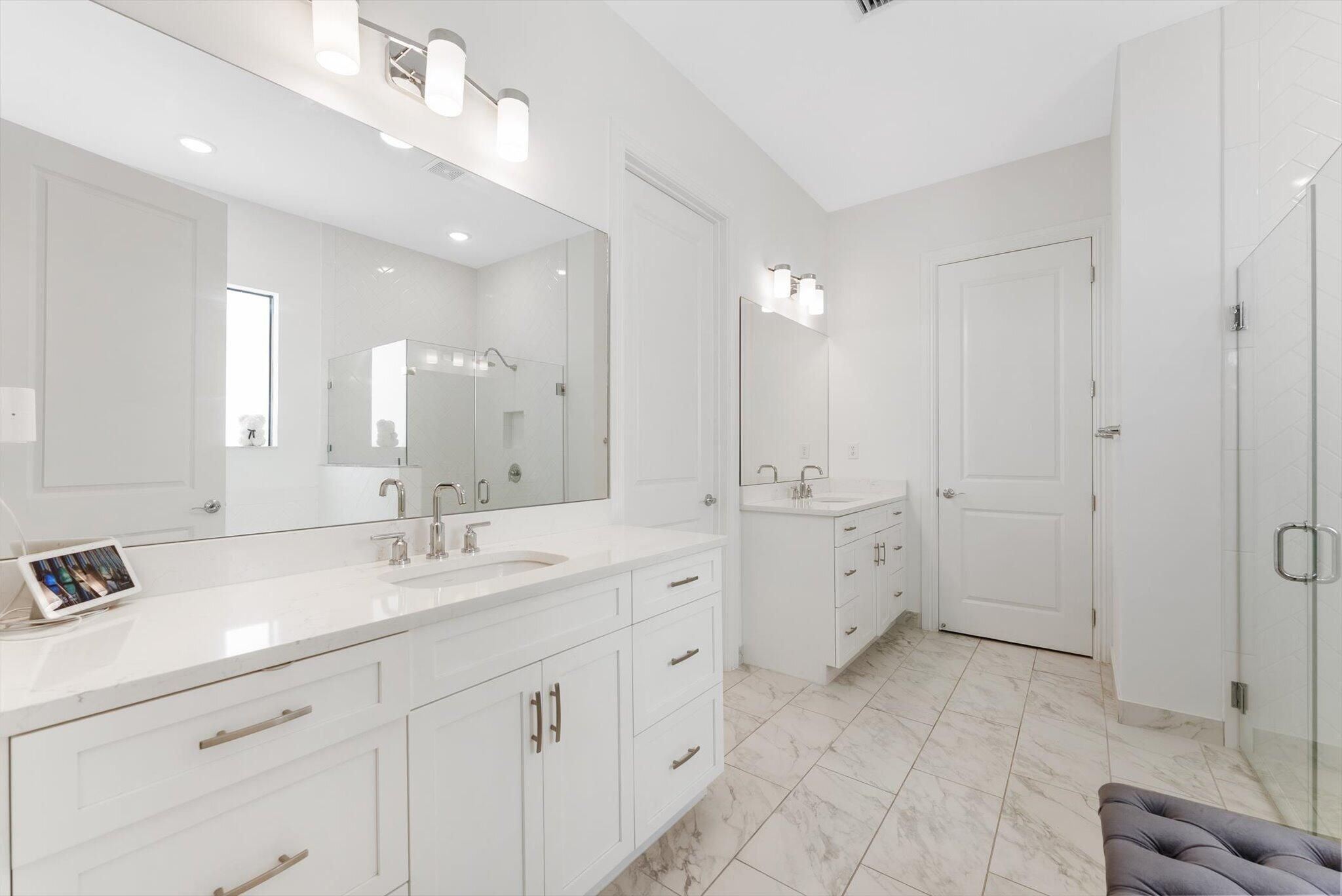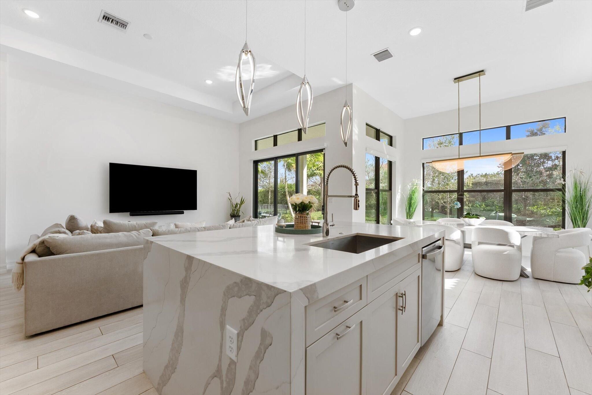 This modern home is designed for multi-generational living within a welcoming 55+ community. It features a private in-law suite with its own entrance, perfect for an elderly parent, adult child, or long-term guest, offering both independence and connection. The open-concept main living areas are ideal for entertaining, complemented by stylish finishes and porcelain tile flooring throughout. The luxurious kitchen boasts premium appliances, double ovens, a gas cooktop with vented hood, and a stunning quartz waterfall island. The primary suite offers a spa-like bath with a soaking tub and separate walk-in shower. Enjoy the generously sized lanai for al fresco dining or relaxing afternoons, plus resort-style amenities including pickleball, tennis, swimming, and a beautiful clubhouse.