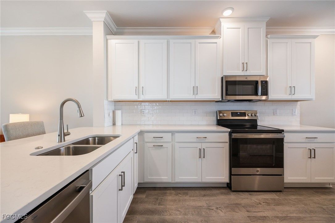You will love this main-floor end unit with exceptional lake views, southern lanai exposure, and direct water access. Interior features include tile floors, quartz counters, and modern finishes. The spacious floor plan offers 2 bedrooms plus a den and large windows for natural light. This nearly new condo allows you to launch a kayak or paddleboard from your back door and paddle out to Lake Como. One unattached 1-stall garage is included. High-quality furnishings are negotiable. Esplanade Lake Club offers amenities that make you feel like you’re on vacation every day. Enjoy a resort-style pool, beautiful gym, on-site Bahama Bar & Grill restaurant, massage treatment room, tennis, pickleball, bocce courts, walking trails, dog park, boat launch (kayak and motor boat), and dockage to park your boat for the day. Indoor and outdoor gathering spaces are available for resident use. The location can’t be beat — all of this is minutes from SWFL International Airport, Gulf Coast Town Center, beaches, dining, spring training venues, hospitals, and more.