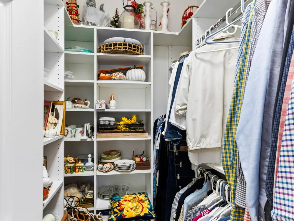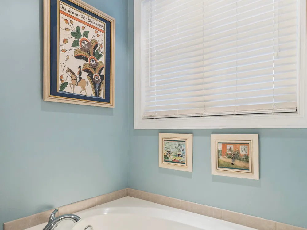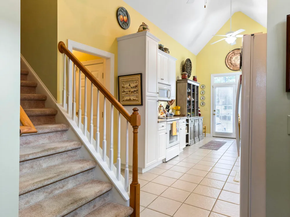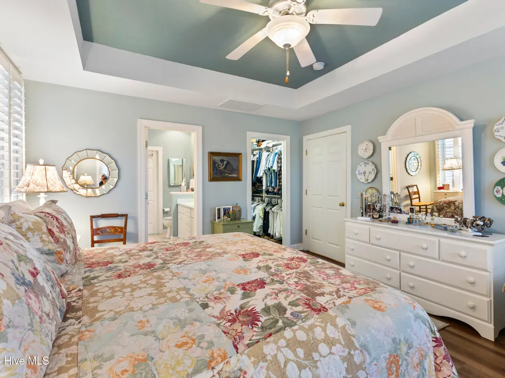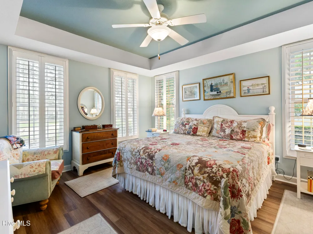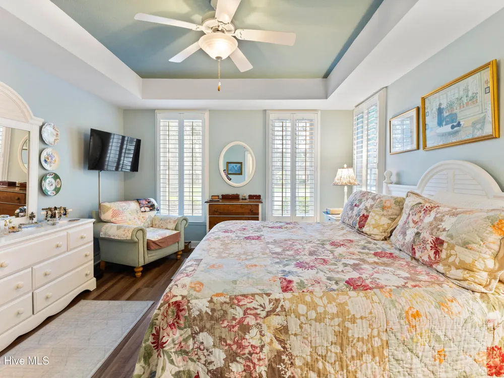 - Blinds/Shades, Tray Ceiling(s), Walk-In Closet(s), Walk-in Shower, Vaulted Ceiling(s), Gas Log, Master Downstairs, Ceiling Fan(s)