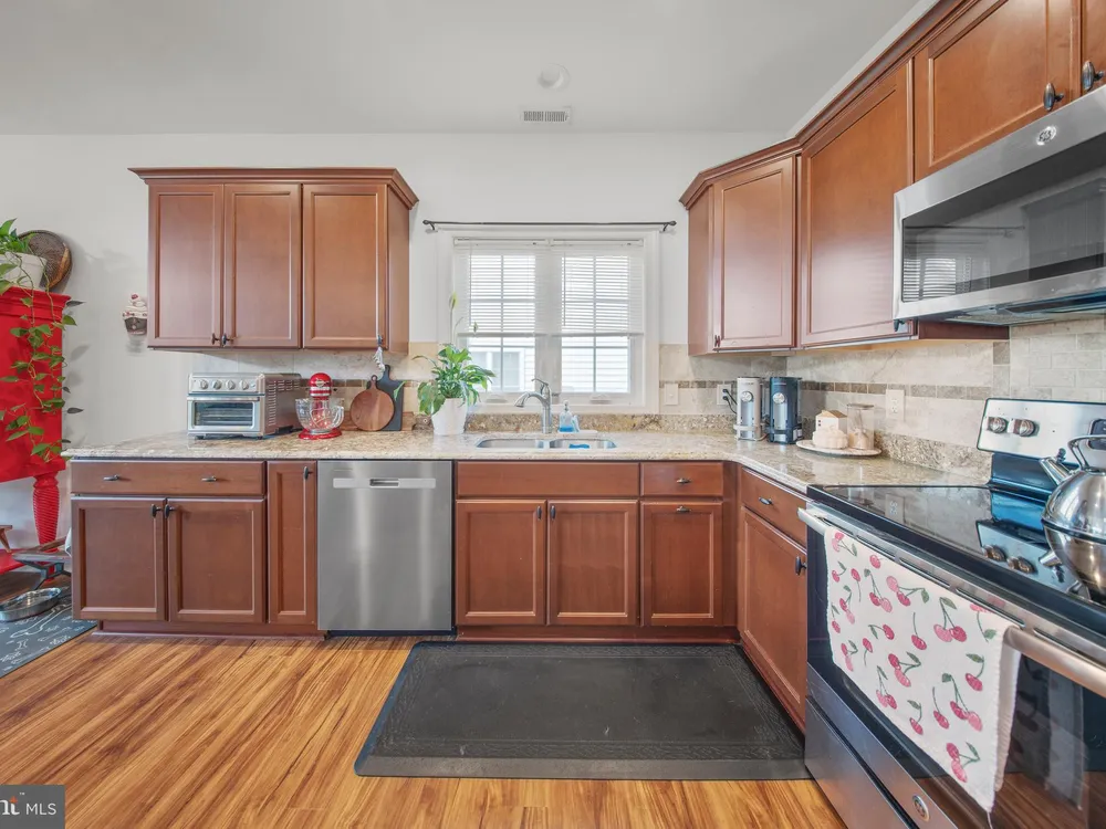 - Built-In Microwave, Dishwasher, Dryer - Electric, Icemaker, Oven/Range - Electric, Refrigerator, Stainless Steel Appliances, Washer