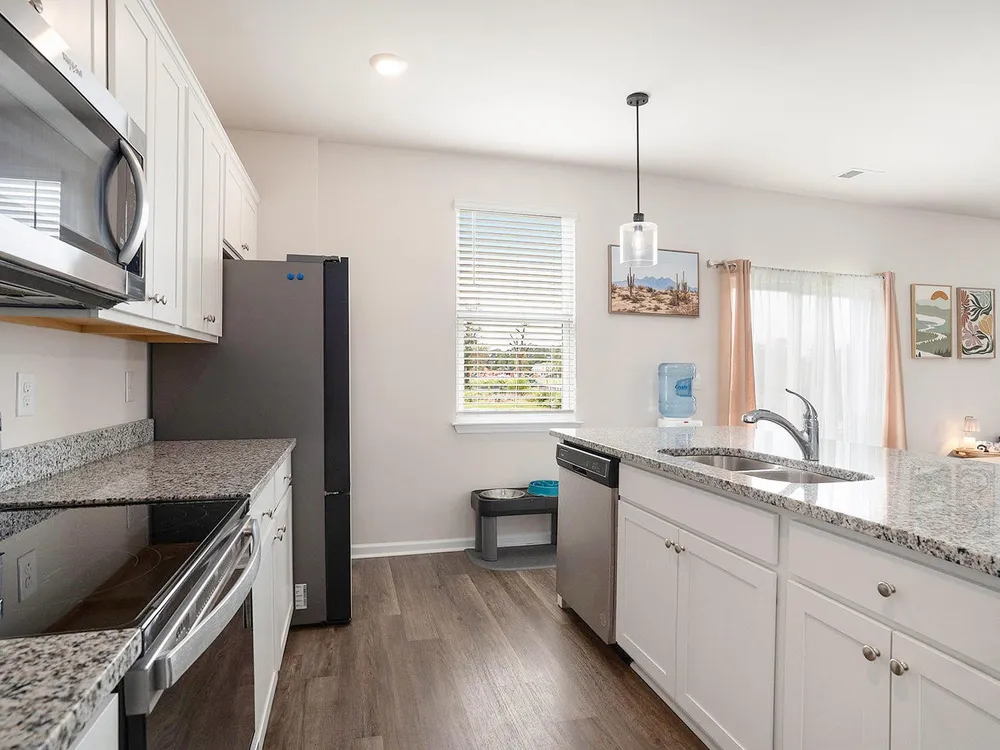 - Dishwasher, Disposal, Microwave, Range, Refrigerator, Dryer, Washer
