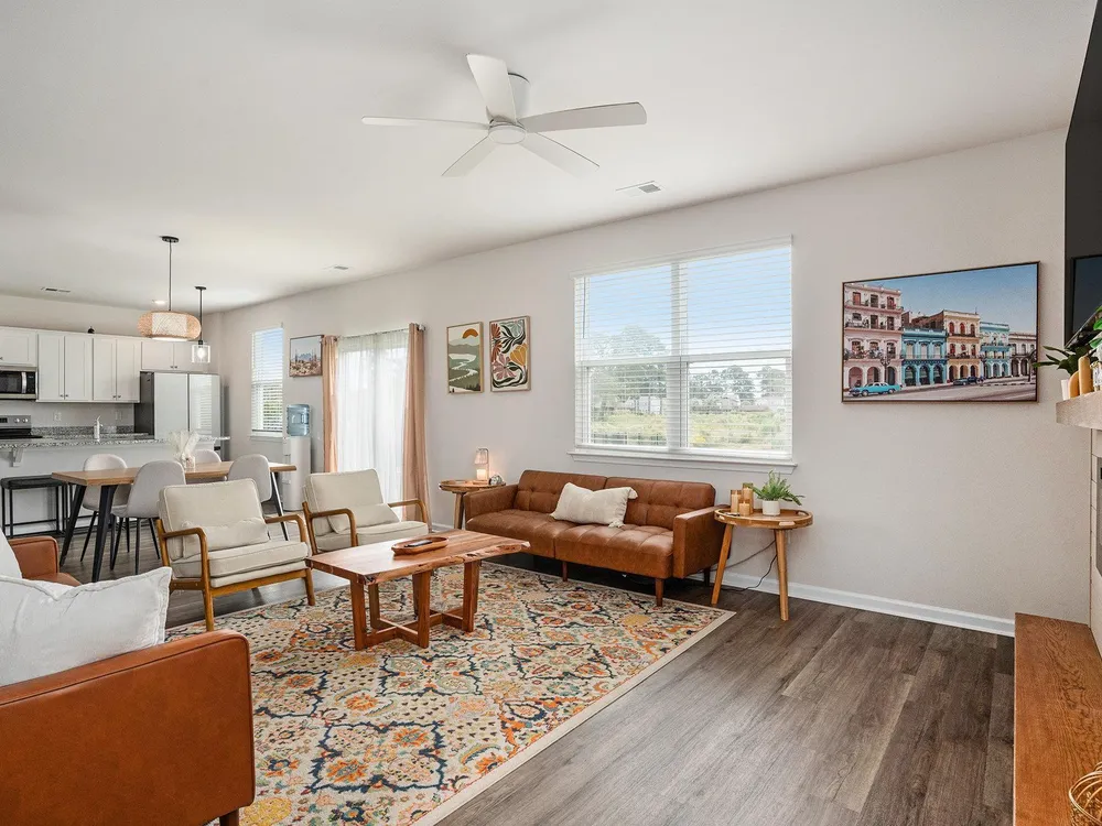 Beautiful home on what was the 18th hole, overlooking a pond is perfect for relaxing.The home has a large open floor plan, Living Room has built in fireplace, natural lighting, and great for entertaining. Kitchen includes a large pantry, a lot of cabinet space, granite countertops, and is open to the dining and living room. Low maintenance vinyl plank flooring throughout the entire first floor. Sliding glass doors off the dining lead to the patio creating a seamless transition from indoor to outdoor living. The owner's suite is a perfect retreat with a walk-in closet with upgraded shelving,and generous owner's bathroom including a double vanity, large shower, and a separate linen closet. Added bonus the laundry room is on the second floor with all of the bedrooms for ease. Three additional bedrooms with plenty of closet space. Control the thermostat, front door light and lock, and video doorbell from your smartphone with the integrated smart home package. Island Green is close to 707, 31 for easy access to all restaurants, shopping, the beach is a 15 minute ride away. **Agent is related to Sellers.