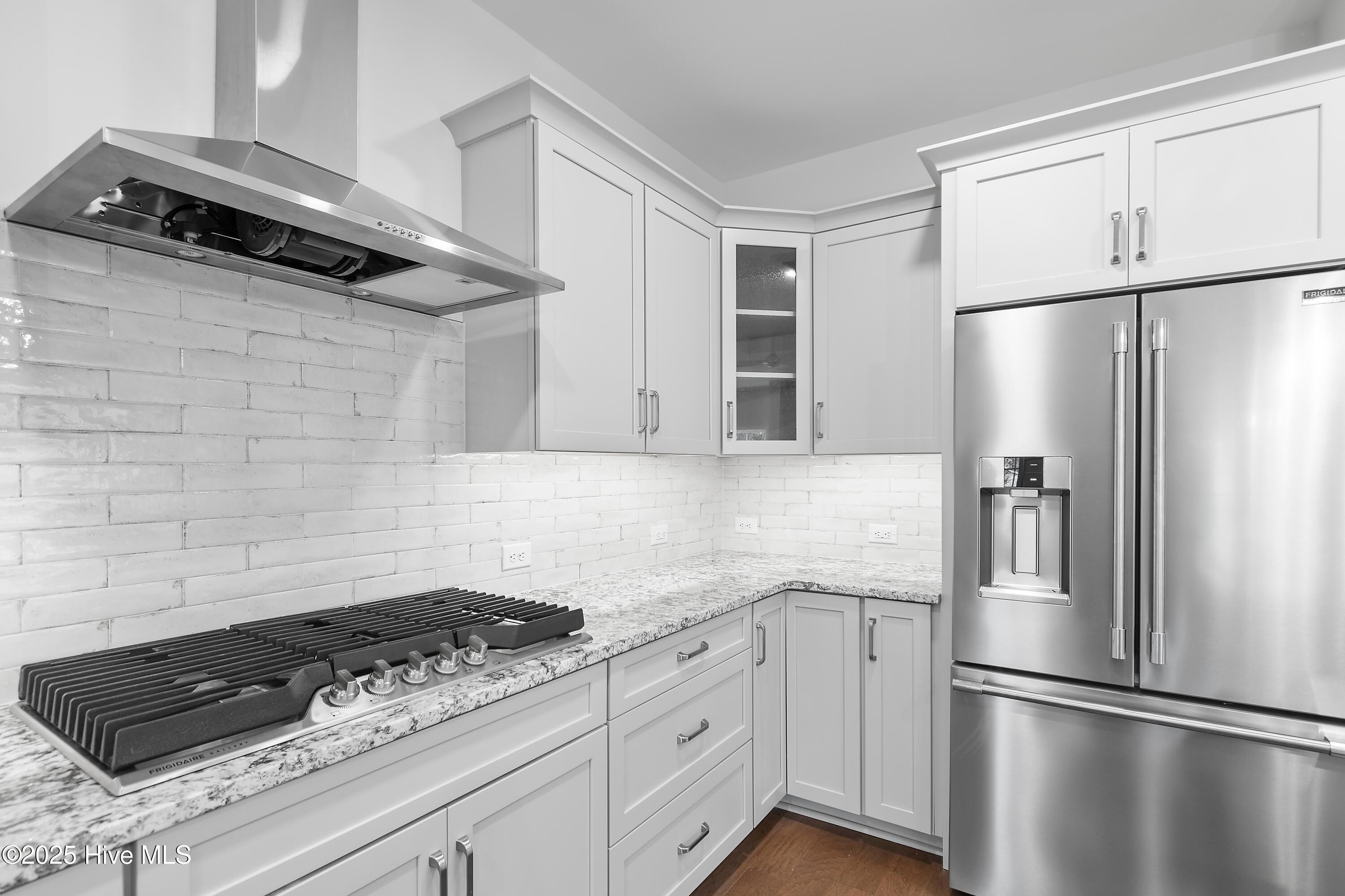 - Gas Cooktop, Electric Oven, Built-In Microwave, Refrigerator, Disposal, Dishwasher, Propane Water Heater