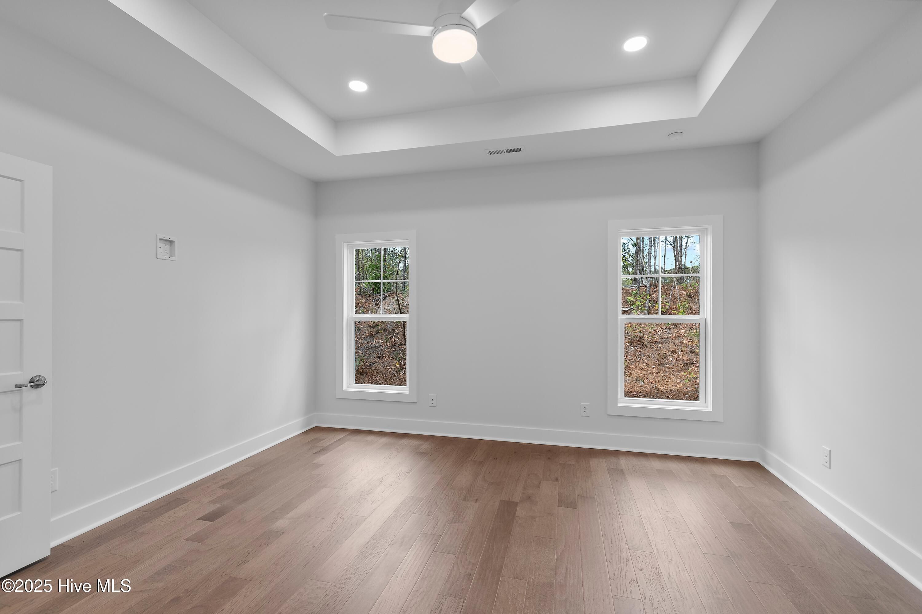 - Master Downstairs, Walk-In Closet(s), Tray Ceiling(s), High Ceilings, Entrance Foyer, Solid Surface Counters, Kitchen Island, Ceiling Fan(s), Walk-In Shower, Kitchen/Dining Combo, Eat-in Kitchen