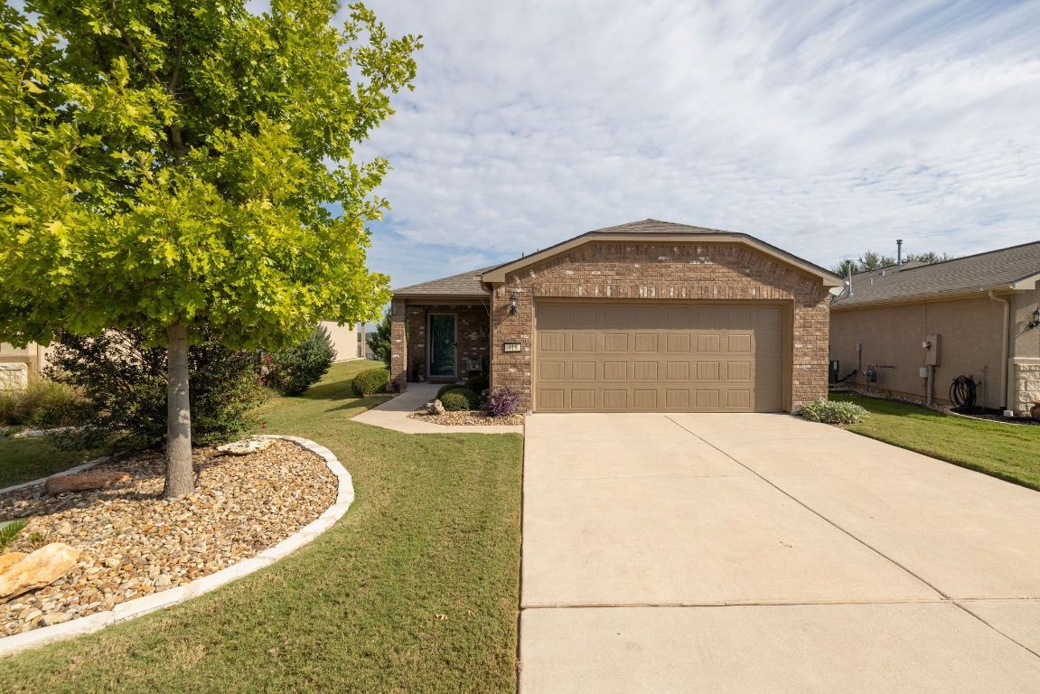This charming 2-bedroom, 2-bathroom single-story home in Sun City Georgetown is move-in ready and model perfect! Built with four-sides brick, the home features fresh interior and exterior paint, recent kitchen lighting, granite countertops, and added built-in cabinetry for extra storage. The second bedroom includes a high-quality Murphy bed, ideal for guests or flexible use. Enjoy beautiful hill country sunrise views from the level ridge lot, complemented by a professionally landscaped yard, sprinkler system, and a stunning pergola for outdoor relaxation. Washer, dryer, and refrigerator are included, and a recent inspection with completed repairs gives added peace of mind. Quick close available – just move right in!