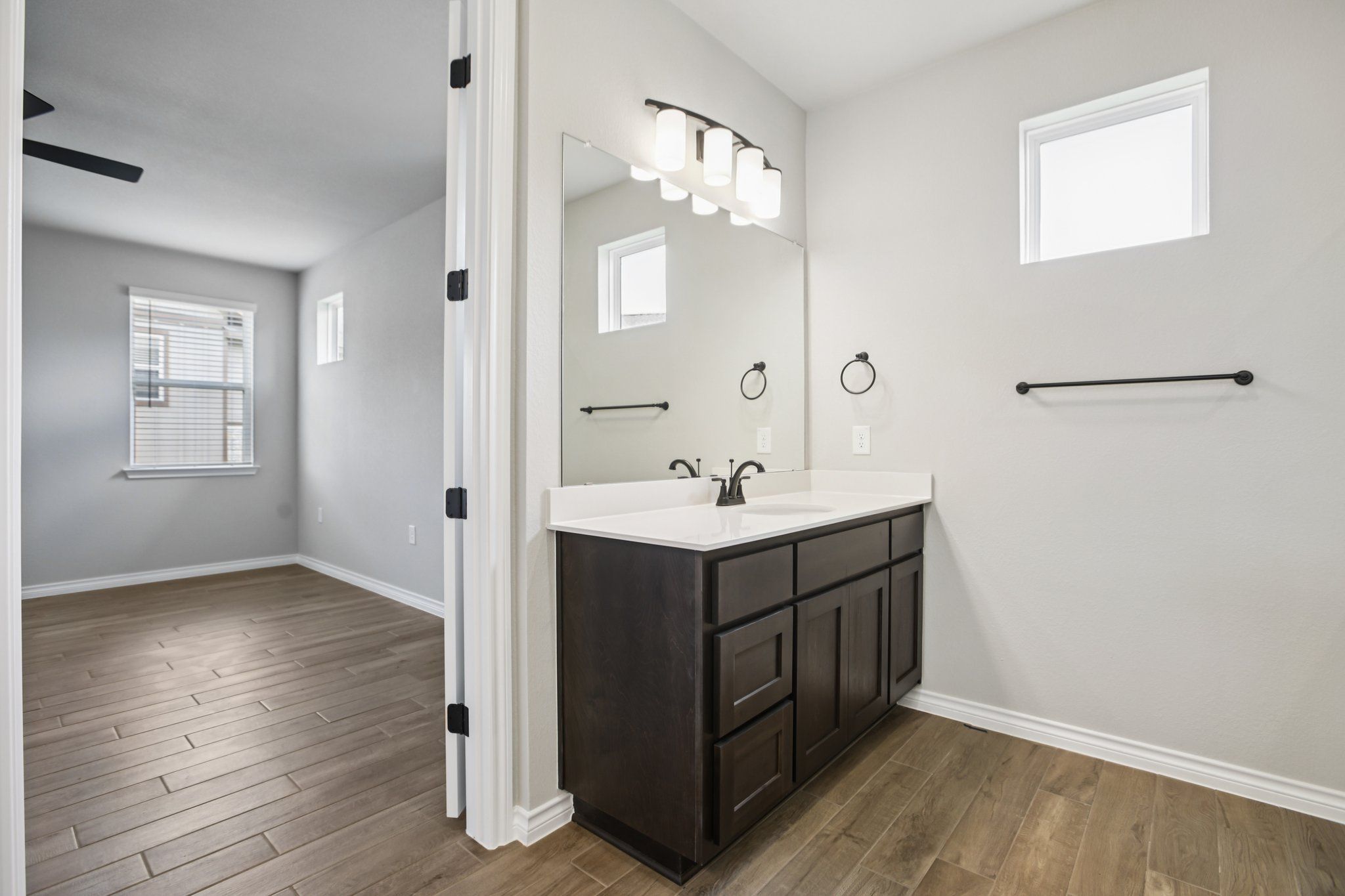 Whitworth model with upgraded kitchen and upgraded DRIFTWOOD flooring, quartz countertops, optional tray ceilings in living, optional 2 car garage, 8' doors throughout, garage interior wall mounted tankless water heater, Express cordless blinds