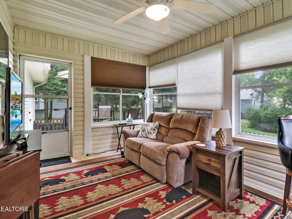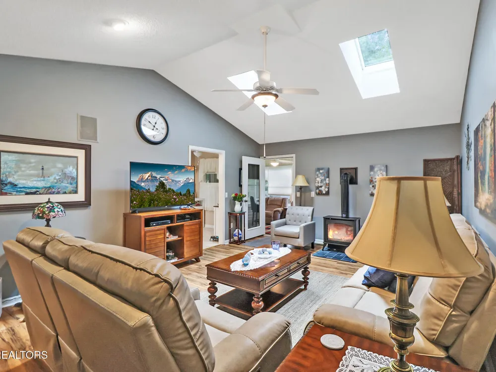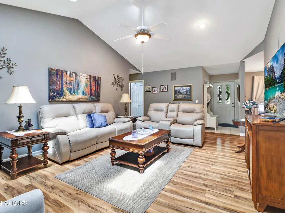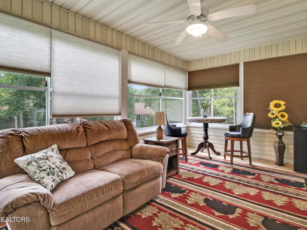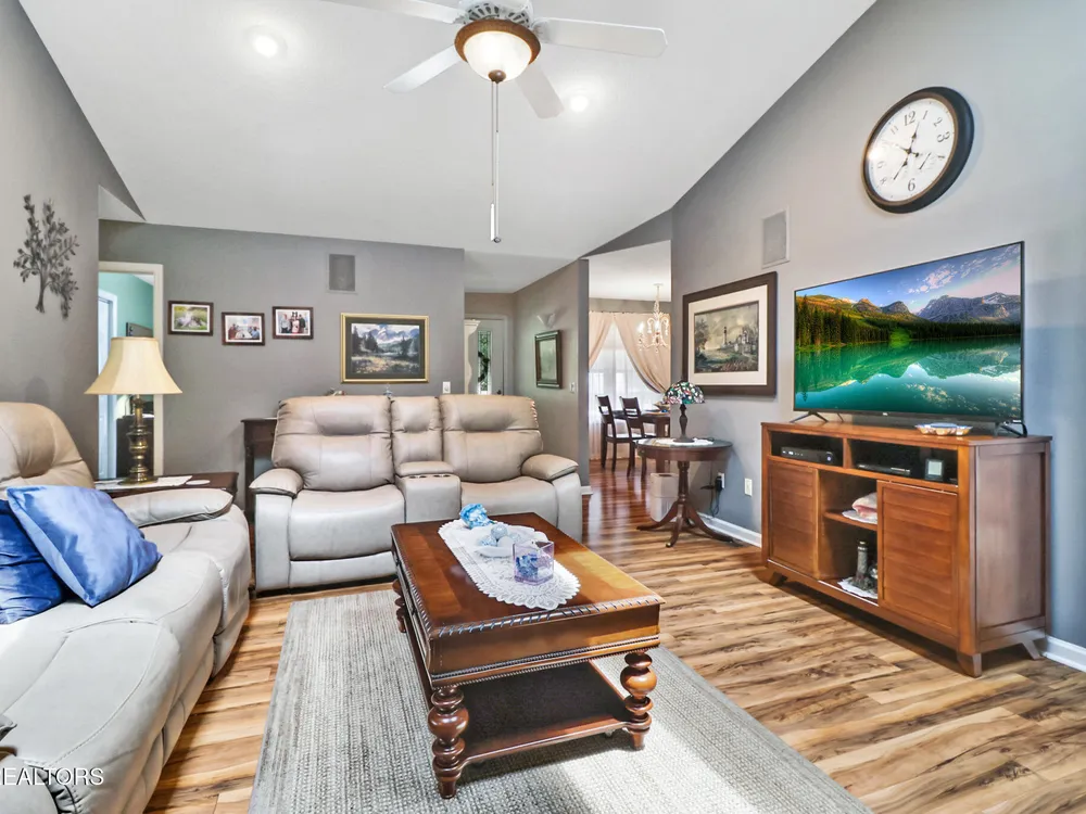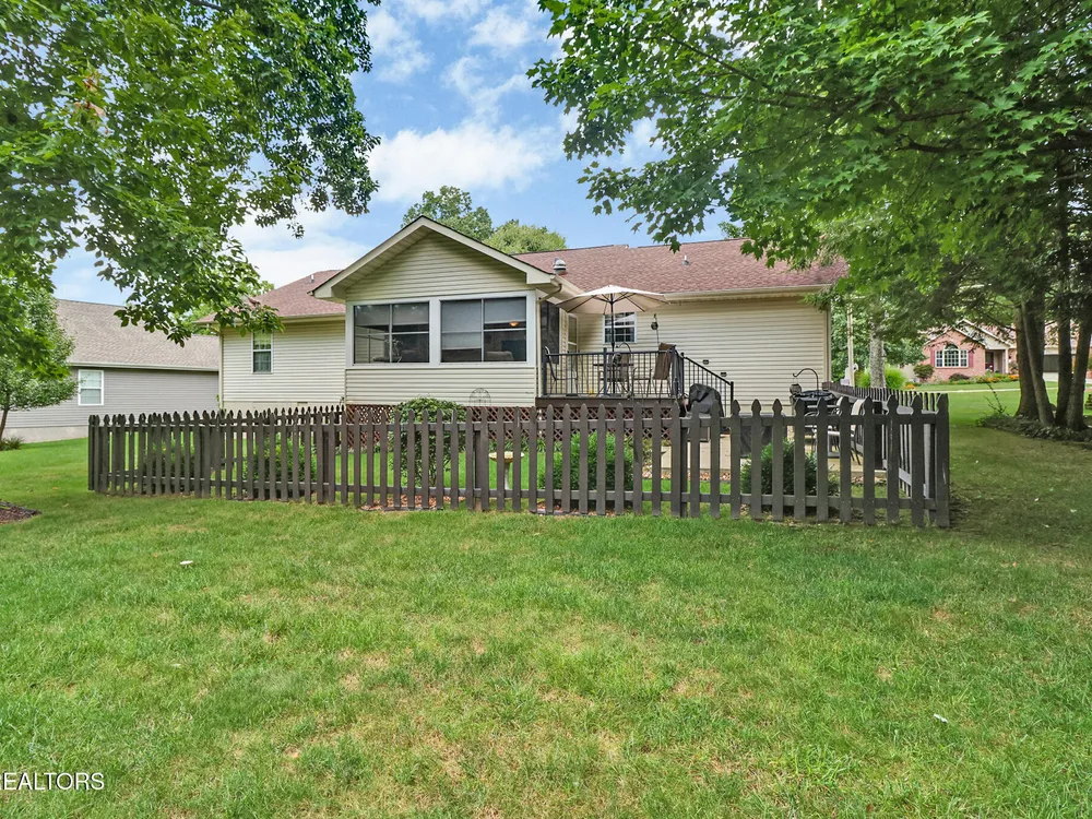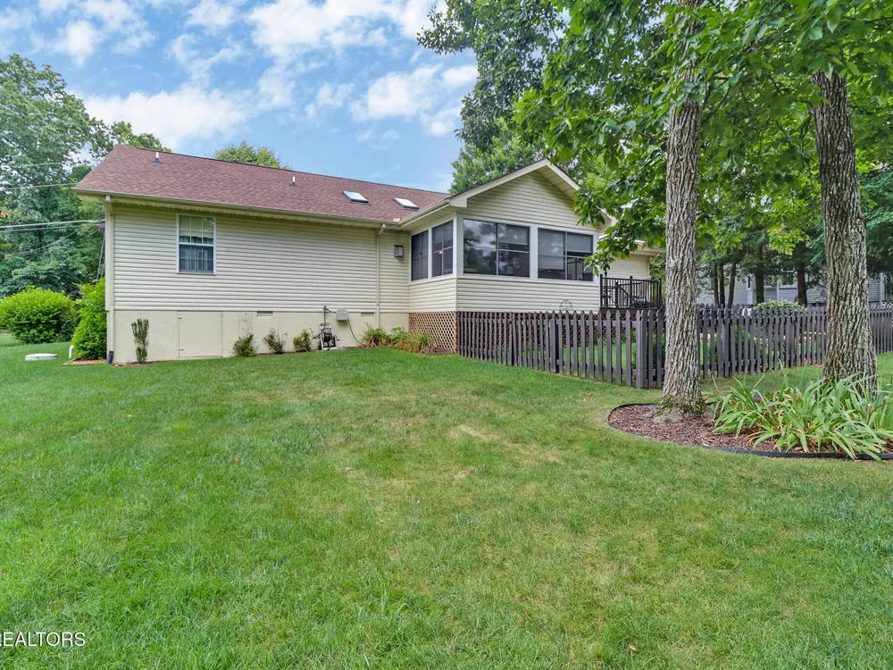 You must see this lovely home in the heart of Fairfield Glade! Inside and out, you'll immediately notice the care that has been given this immaculate property. Beautiful landscaping around the home, freshly sealed driveway and a multi-functional back yard with fenced area round out the exterior. Step inside from the cozy front porch and make your way into the living room with vaulted ceiling, skylights and a natural gas log stove perfect for providing warmth in the winter. The three season room is wrapped in windows overlooking the back yard and provides access to the deck and concrete patio. The galley kitchen offers ample counter space, lovely backsplash and a sun tube skylight for added brightness. One end opens to the dining room with windows that look out onto the front lawn, and at the other end there is room for casual dining or additional cabinetry. A large master bedroom suite with walk-in closet and 2 additional bedrooms and bathroom complete the interior, offering plenty of space for an office and guests. Additional Features Include: 25 Year Shingle Roof Installed 5 years ago, HVAC with Natural Gas Heating Installed in 2018, Fully Encapsulated Crawl Space with Sump Pump and Dehumidifier, Water Heater in 2025, carbon monoxide detector, laundry room with pantry and utility sink, oversized 2 car garage with another utility sink and large work/storage area. If that's not enough the location is ideal, within walking distance to the center of the community - The Square, Mirror Lake for concerts, The Racquet Center, Druid Hills complex for golf, mini-golf, art gallery, pool and library, The Village Green Mall with post office, restaurants, grocery/pharmacy and salons and paved walking paths which connect to miles of wooded hiking trails. Schedule your showing - you won't be disappointed! Buyer to verify all information and measurements prior to making an informed offer.