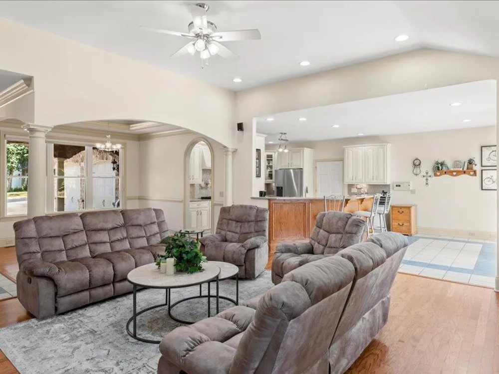 Welcome Home - Comfort, Space & Style in One Beautiful Package! This thoughtfully designed move-in ready home offers the perfect blend of warmth and functionality. From the moment you walk through the bright and inviting entryway, you'll feel right at home. The open floor plan is ideal for entertaining guests or simply enjoying a quiet night in. The split-bedroom layout provides privacy, while the updated kitchen shines with granite countertops, beautiful cabinetry, a large island, and a smart, functional layout that makes everyday living easy. You'll also love the oversized laundry room and two walk-in pantries—plenty of space for staying organized. The living room is light-filled and welcoming, featuring a barrel ceiling and a wall of windows that offer peaceful views of the backyard. Just off the living area is the spacious primary suite, complete with a private door to the porch, dual closets, and a well-designed bathroom retreat—featuring two separate vanities, a jetted tub, walk-in shower, and a private enclosed area for the toilet and bidet. At the front of the home, French doors open to a flexible space—perfect for a home office or den. There's also a separate dining area that adds a touch of elegance for gatherings. On the other side of the home, you'll find two comfortable bedrooms with large closets and a shared full bath. Outdoors, you'll appreciate the horseshoe driveway, wooded yard, and multiple covered spaces to relax—whether it's coffee on the front porch or unwinding on the screened back porch listening to the waterfall this home truly has so much to offer—inside and out. Come take a look and see why it might be the perfect fit for you. New roof was installed 2 years ago. Buyer to verify all information.