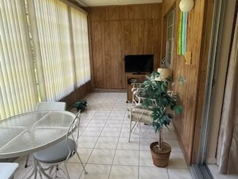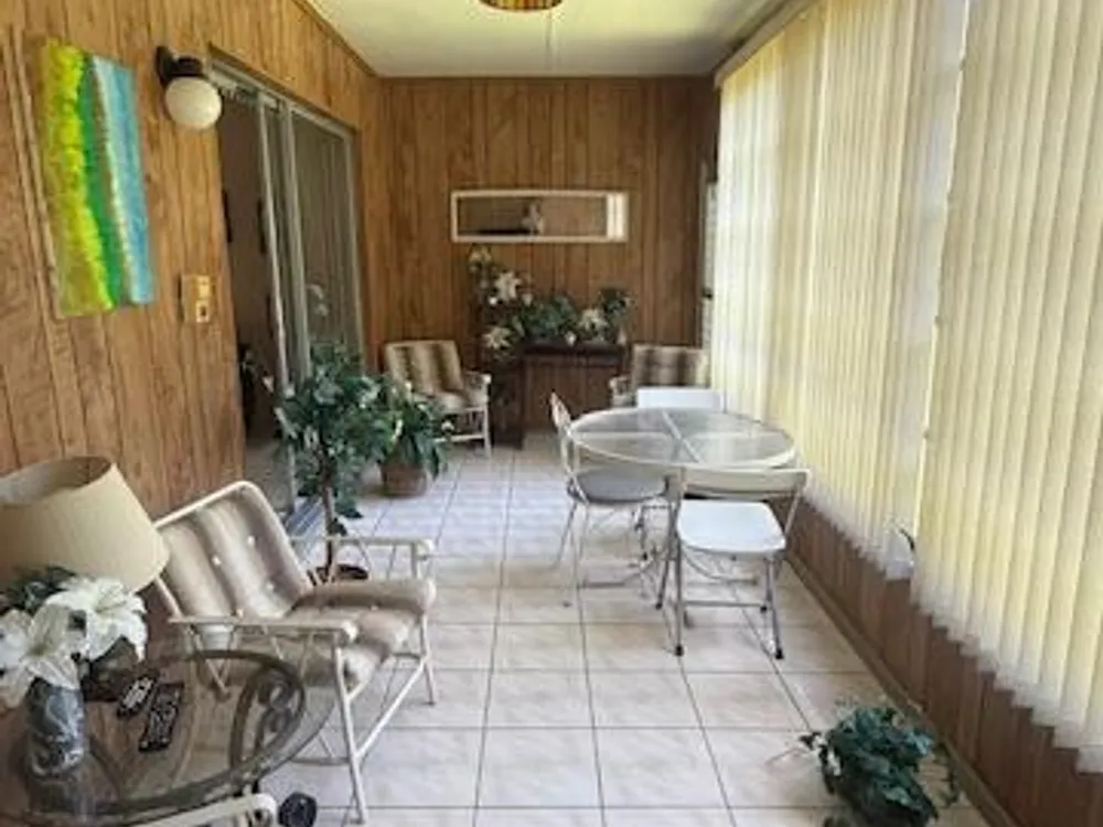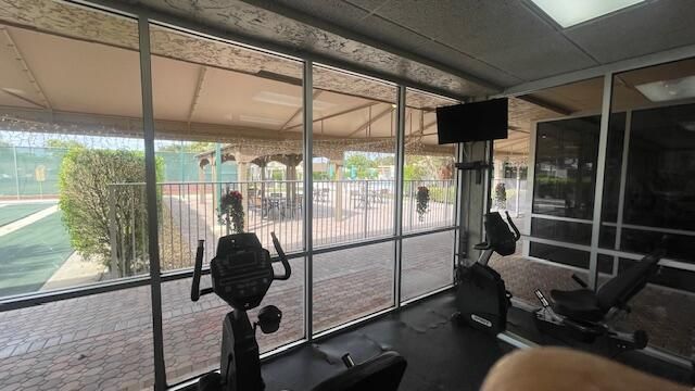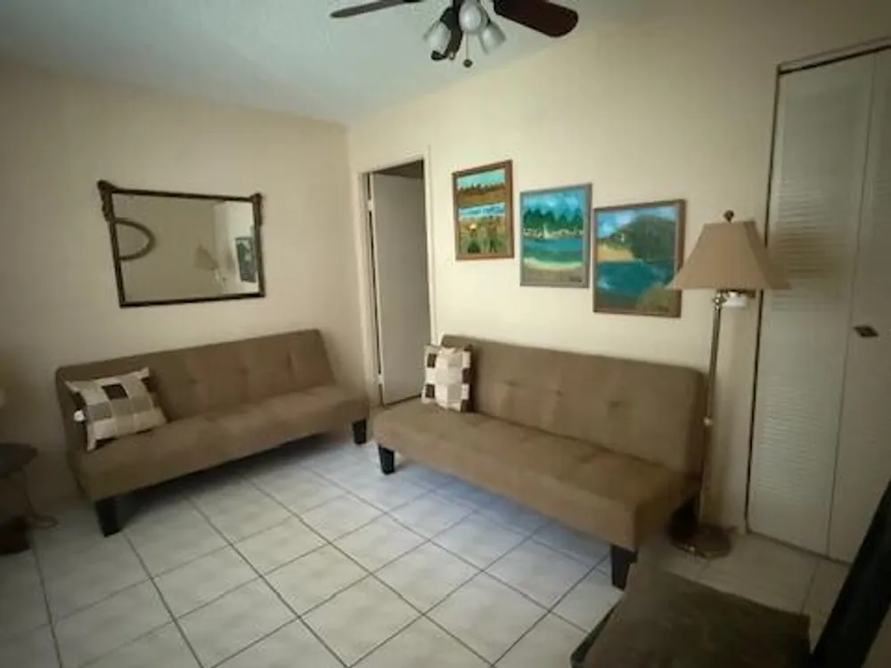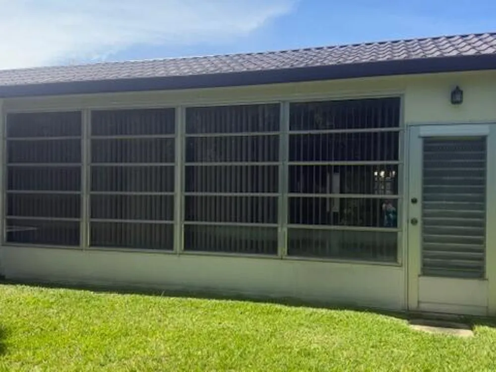 This unit is a fully furnished convertible villa located at the last street in Phase B with beautiful views off the enclosed porch,l It has a laundry room in the back porch area . Full ceramic tiles thru out, all contents can stay or be donated from the new owner. The new roof was installed June 2024. The unit is walking distance to the clubhouse, pool, gym, pickleball courts and auditorium. The community has bus service to shopping and medical plazas. Just minutes to the airport and highways as well as the beach and City Place.