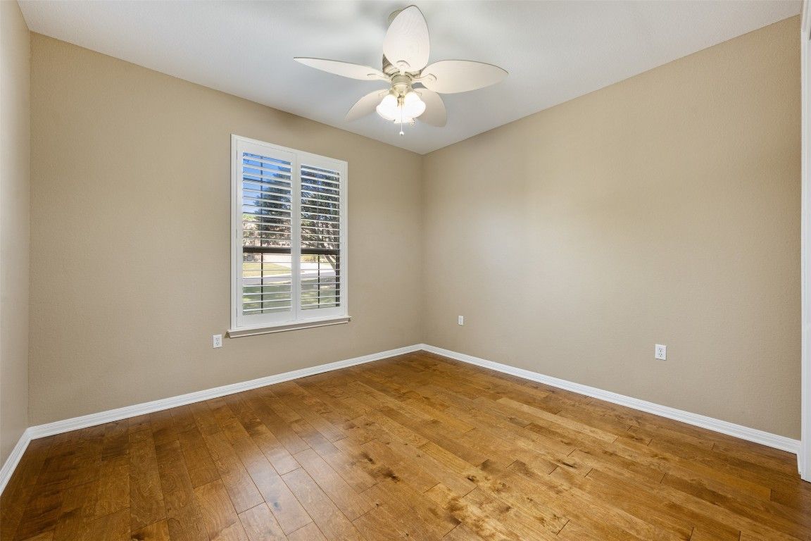 Wonderful, clean and neat Angelina plan with gleaming hard wood floors, upgraded cabinets, custom shutters and new stainless steel appliances. Owner's suite features bay windows and a lovely expanded walk-in closet that is nearly double the original size. Garage updated with an insulated garage door, a conditioned attic storage space and a ductless HVAC mini-split system - making it perfect for hobbyists or to use as a gym. Impeccably maintained with roof, hot water heater and HVAC all replaced by the current owner. Outside features a park-like yard with in-ground sprinkler system and a towering oak tree that helps to keep energy costs low. Quiet street with no pass through traffic.