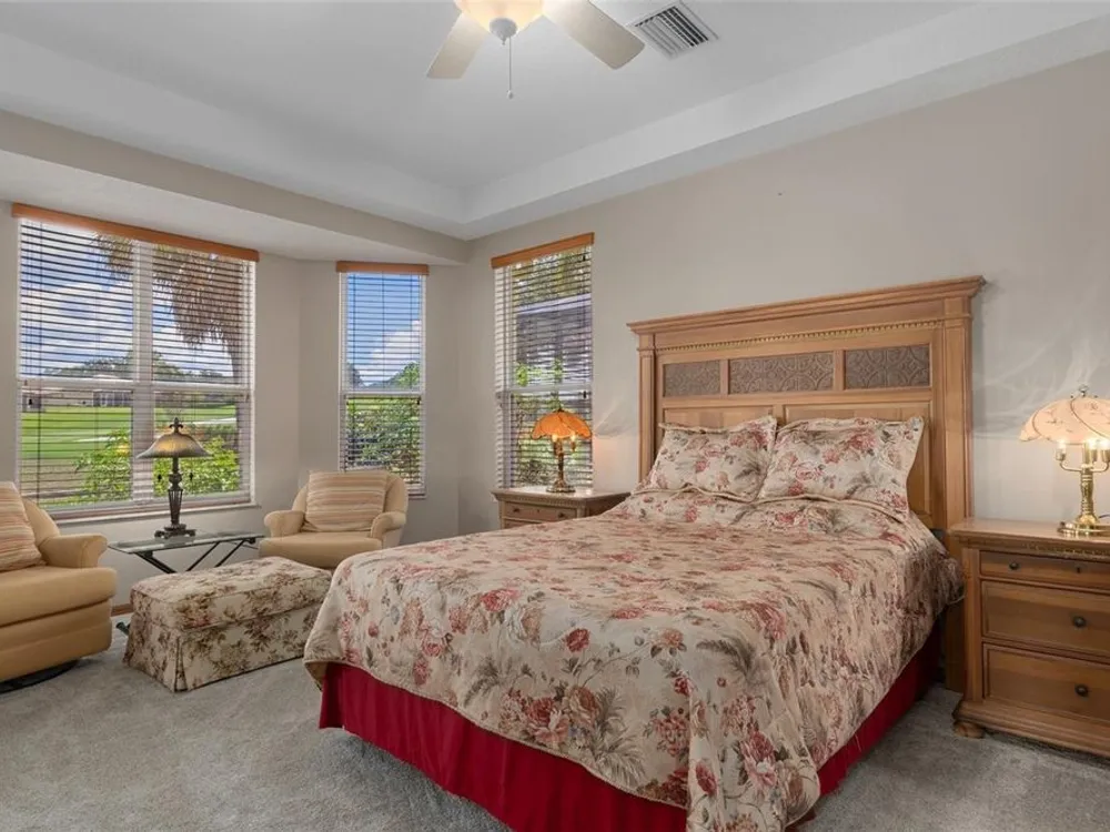 LOOK AT THIS INCREDIBLE PRICE IMPROVEMENT!! LIVE THE LIFESTYLE YOU'VE BEEN DREAMING OF — A STUNNING GOLF COURSE VILLA IN TERRA VISTA. Where luxury, comfort, and natural beauty come together in perfect harmony. Nestled on the 5th green of the prestigious Skyview Golf Course, this exquisite furnished and turnkey Lantana model villa in Terra Vista is more than just a home; it's a daily retreat. From the moment you arrive, you’ll sense the peaceful elegance that sets this home apart. Step into the heart of the home, where a spacious open floor plan & soaring ceilings greet you with a sense of ease. Whether you're entertaining guests or enjoying some quiet time, the thoughtful design creates a seamless flow between the indoors and the outdoors. EVERY DETAIL DESIGNED FOR LIVING WELL - Step into the kitchen and you’ll find timeless Corian countertops that complement rich wood cabinetry, offering both beauty and durability. The custom pantry with slide-out shelving adds practical elegance to your culinary space. Crown molding, plantation shutters, custom built ins and etched glass add classic refinement throughout the home, while wood trim detailing adds luxurious feel. Energy-efficient window tinting enhances your comfort and helps manage your utility bills. It’s not just about the features; it’s about the feeling of being at home, of being at peace, and feeling you’re exactly where you want to be. This home doesn’t just look beautiful, it lives beautifully. Hurricane shutters add an additional layer of security and peace of mind, and the storm/screen front door lets in a beautiful cross breeze. A LANAI MADE FOR SUNSETS - The lanai is truly the soul of this home. Framed by lush landscaping and panoramic views of the golf course, it’s the perfect place to unwind as the sun sets over the fairway, painting the sky in brilliant hues of orange and lavender. And with electric roll-down hurricane shutters and a screened enclosure, it’s a space you can enjoy in comfort and peace of mind year-round. MAINTENANCE-FREE LUXURY IN TERRA VISTA - This is a rare opportunity to own a home at this price, that offers true maintenance-free living in one of Florida’s most desirable gated communities. Your home, roof, exterior painting, landscape, irrigation, cable, pest control are all handled by the HOA for a truly maintenance free lifestyle. The Citrus Hills Social Membership brings you world-class amenities: state-of-the-art fitness centers, indoor and outdoor pools, tennis, pickleball, spa services, fine dining, and an incredible array of social events and clubs. Here, you’re not just buying a home, you’re gaining access to a social, connected lifestyle. If you’ve been searching for a place that checks all the boxes—maintenance free living, comfort, beauty, quality, and community, here is it. This is your opportunity to own a slice of the good life in one of Citrus County’s most desirable communities. Don’t let this rare gem slip away—Experience firsthand the lifestyle that awaits. Call for a tour. I love showing this house off!!