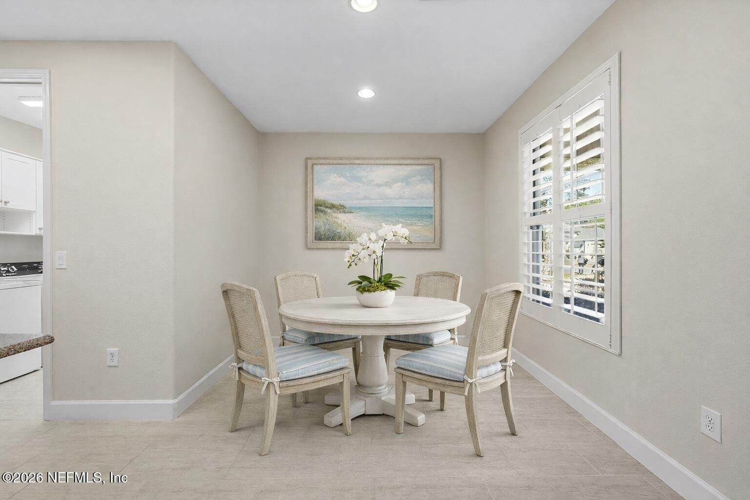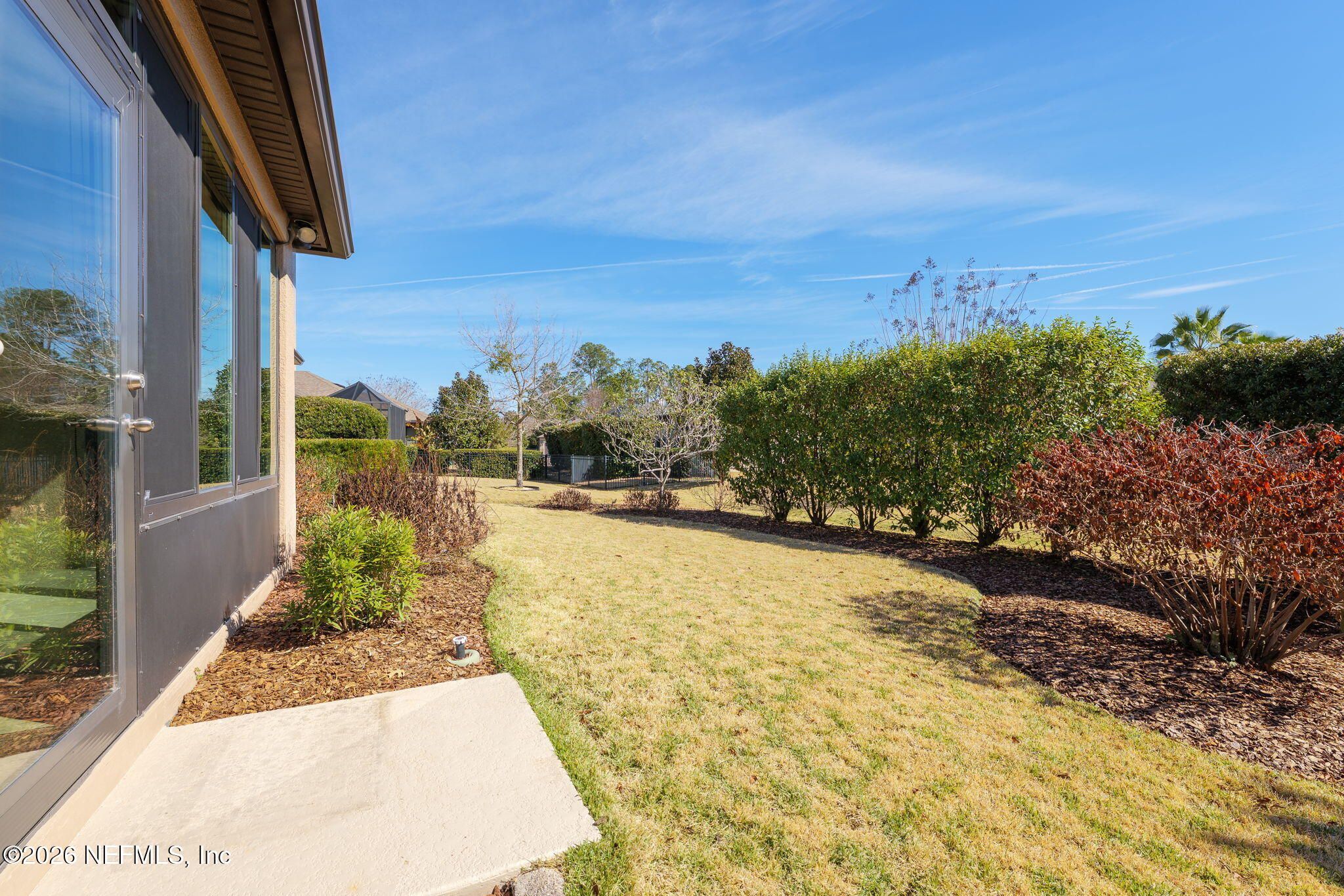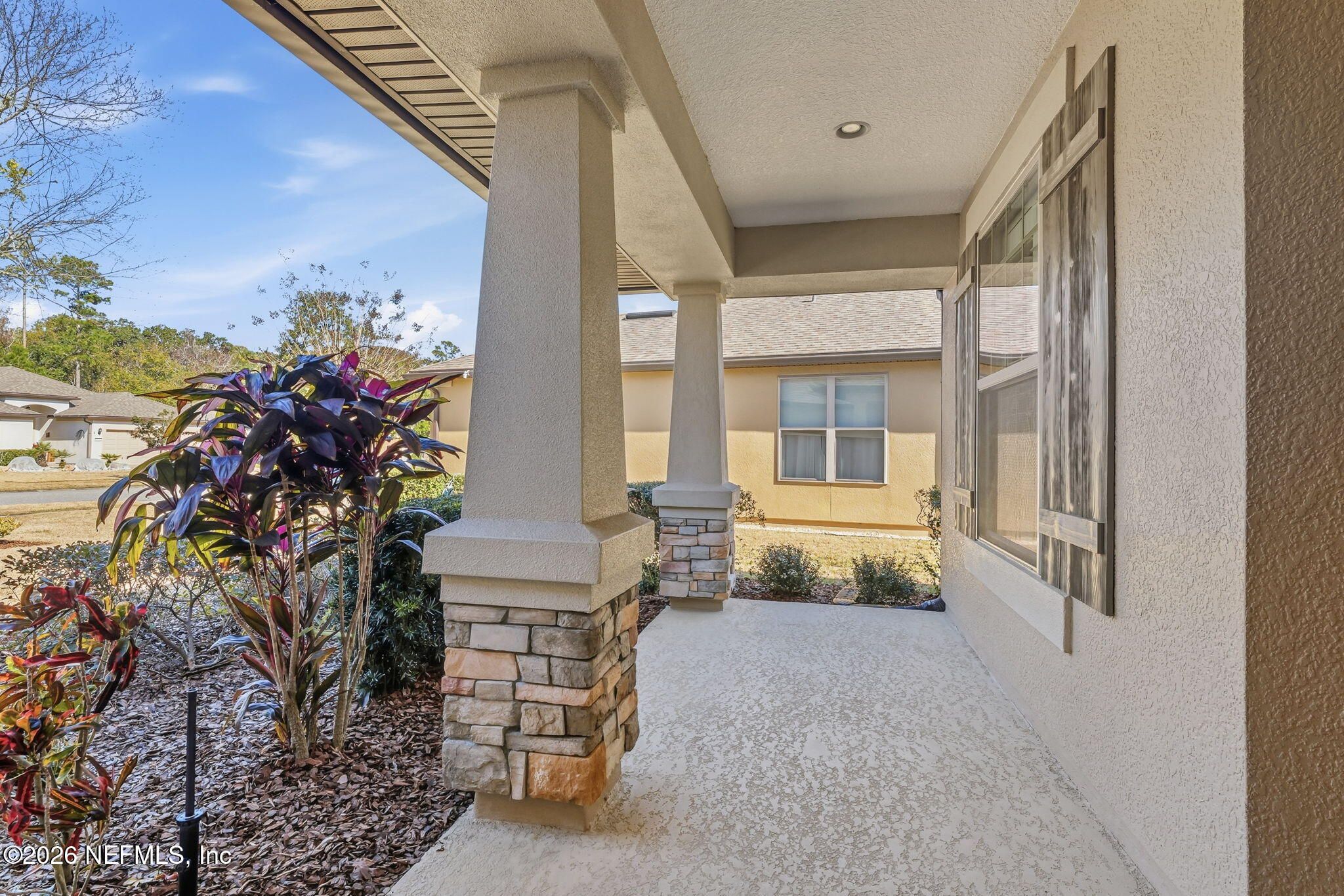 Imagine starting each morning on your inviting front porch, coffee in hand, soaking in the sunshine and relaxed Florida lifestyle. Located in the golf cart friendly Del Webb Ponte Vedra 55+ community, this beautifully designed 2 bedroom, 2 bath home offers over 1,700 square feet of thoughtfully planned living space and includes a dedicated flex room with a custom built in workstation, ideal for a home office, hobby room, or creative retreat.Gorgeous wood floors flow throughout the open concept layout, leading into a fully glass enclosed Florida room where nesting sliding doors seamlessly extend your living and entertaining areas. The oversized kitchen is a true gathering space, featuring stainless steel appliances, abundant cabinetry, a large food prep island, and a spacious eat in dining area. A private guest bedroom and full guest bath make hosting friends and family effortless. The spacious owner's suite is a relaxing retreat, complete with a lovely - ensuite bathroom featuring a large walk in closet and a zero entry walk in shower with a built in seating bench and beautifully finished tile. The garage is equally impressive, featuring a retractable screen garage door that allows you to enjoy the fresh air while relaxing or working, along with a dedicated workbench area for projects and hobbies. The attic has been upgraded with blown in insulation, finished flooring, and a folding attic ladder, creating valuable additional storage space. Outside, unwind in the private backyard framed by mature landscaping. Del Webb is a golf cart friendly neighborhood, affording you the convenience of easy access to the Nocatee shops and dining as well as the Anastasia Club and its resort style amenities, including an indoor heated pool, Sawgrass Café, tennis, pickleball and bocce ball courts, plus a vibrant calendar of fitness and social activities. This home offers the perfect blend of comfort, convenience, and Florida living at its finest.