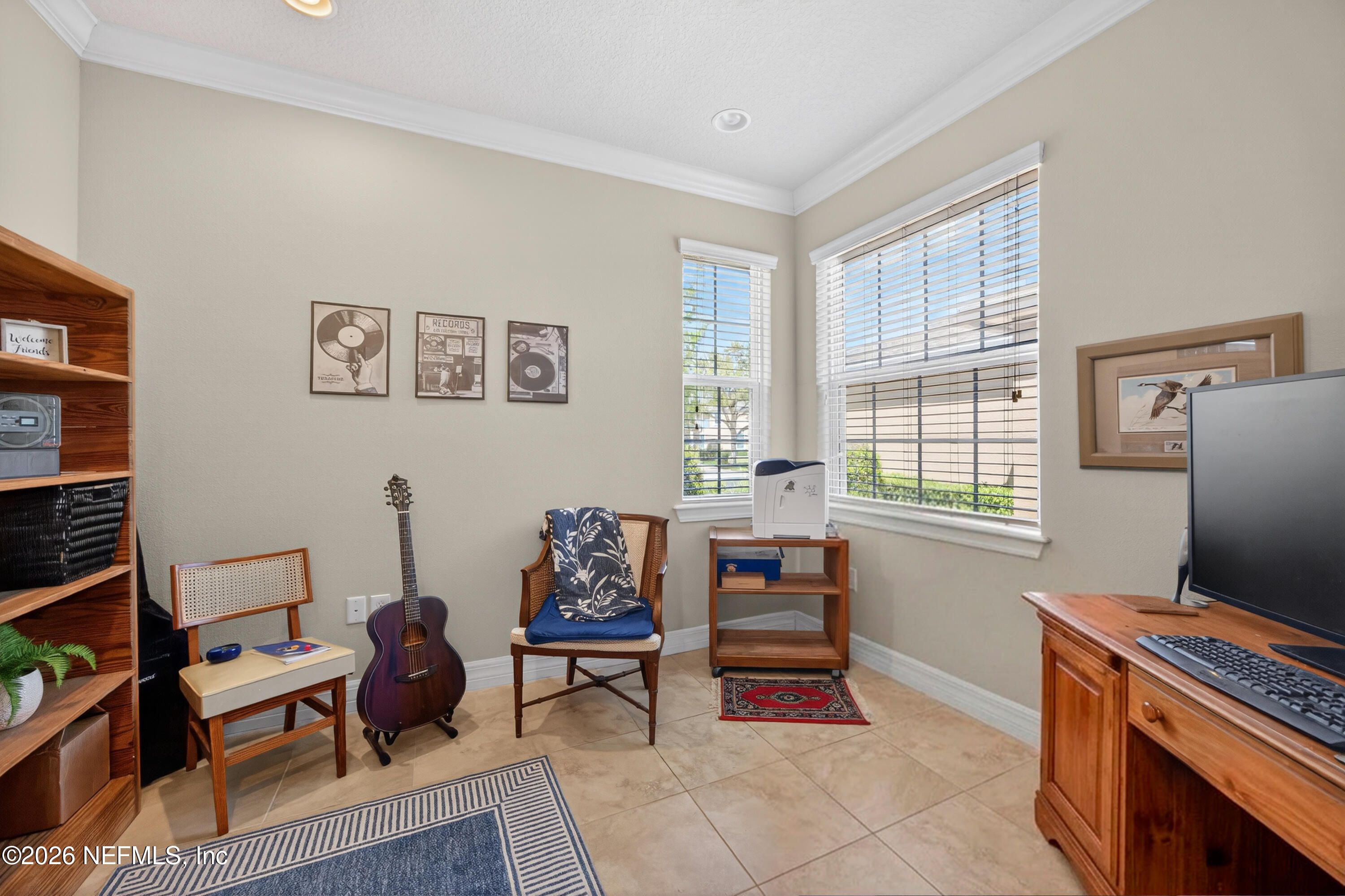 Finding a one-level condo with a true two-car garage in Sweetwater by Del Webb isn't easy--this Seagrove villa styled condo offers both, along with a layout that simply works. Designed for comfortable, everyday living, the split-bedroom floor plan provides privacy for both owner and guests, while a bright office or hobby room offers the flexibility today's buyers want. 9 foot 4 inch tall ceilings, wide hallways, and an open living and dining area create a sense of space rarely found in condo living. The kitchen features granite countertops, white cabinetry, and generous storage, flowing easily into the main living areas. Tiled flooring throughout the primary living spaces and primary suite adds durability and ease of maintenance. With no one living above or below, this home delivers the feel of a private residence with the convenience of a low-maintenance, no lawn-care lifestyle. A screened and covered lanai extends your living space outdoors, offering a shaded, private setting that stays comfortable even during warmer Florida afternoons. The primary suite includes a walk-in shower with a built-in bench and transom window, while the guest bath offers a tub and shower combination. Recent updates include a newer HVAC system with UV-Light, a new hot water heater in 2026, a newer roof maintained by the association, and a freshly painted exterior, giving buyers added confidence in long-term upkeep. Practical features set this home apart, including a full two-car garage, additional driveway parking, and convenient guest parking nearby--rare advantages in condo living. The thoughtful design, combined with easy one-level, no step, access and wider hallways, makes this a home that works well for a variety of lifestyles both now and in the future. Sweetwater by Del Webb is a gated 55+ community known for its active, resort-style living. Residents enjoy indoor and outdoor pools, tennis and pickleball courts, bocce ball, a fitness center, walking and biking trails, and a vibrant clubhouse filled with clubs, events, and social activities. The location offers exceptional convenience to Mayo Clinic, St. Johns Town Center, Jacksonville's beaches, and Jacksonville International Airport. Homes offering this combination of one-level living, a two-car garage, and a flexible layout in Sweetwater are limited, making this an outstanding opportunity for buyers seeking comfort, convenience, and value in a well-established community.