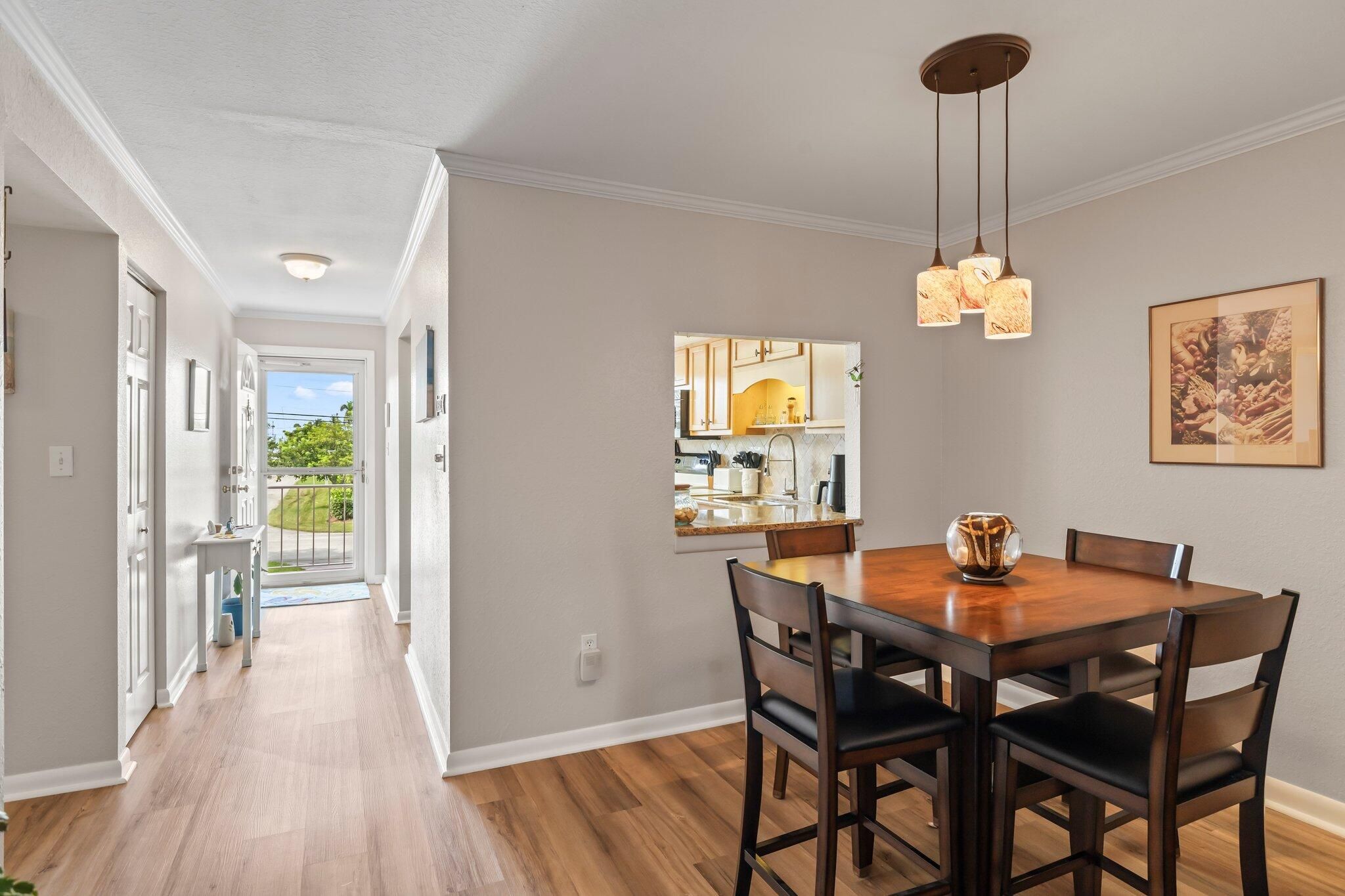 South Hutchinson Island 2 Bedroom/2 Bath condo in The Colonnades. Active 55+ Community. Kitchen features granite counter tops, newer cabinets & pantry. Laminate flooring in living room, dining room, kitchen. Upgraded Baths. Large Master Bedroom with ensuite full Bath. French Doors to spacious Florida room with lovely Garden view. Crown molding throughout. New roof Dec. 2024, 20 yr. Warranty. Furnishings negotiable. The Colonnades amenities include a beautiful Clubhouse, Olympic Pool, Tennis, Boat Docks, Dry Storage for extra toys & more. Walk to Beach, Shops, Restaurants. Relaxed Island living, full time or seasonal.