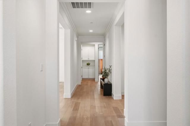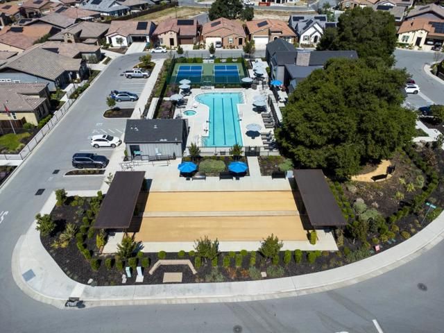 This beautifully designed single-story Dawson, perfectly situated on a premium corner lot in the relaxing Twin Oaks community. Step inside to discover a light-filled, open-concept layout featuring stunning real oak hardwood floors and wide hallways designed for comfort and accessibility. The heart of the home is a chefs dream kitchencomplete with a large central island, upgraded cabinetry with elegant glass doors, and abundant storageperfect for both everyday living and entertaining. The inviting living area is enhanced by a fireplace, while the den or study, provides flexible living space. The spacious primary suite boasts a walk-in closet, and the home is equipped with central A/C for year-round comfort. Additional features include a laundry room, epoxy garage flooring, and solar. Exceptional community amenities include a large pool, bocce and pickleball courts, and a clubhouse. Combine style, comfort, and convenience in one of Hollisters premier communitiesdont miss out!