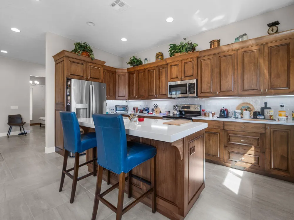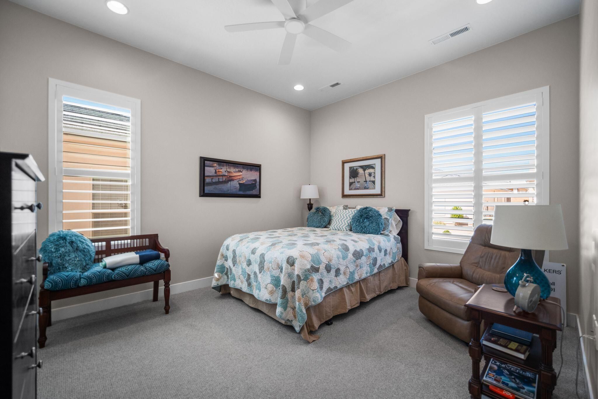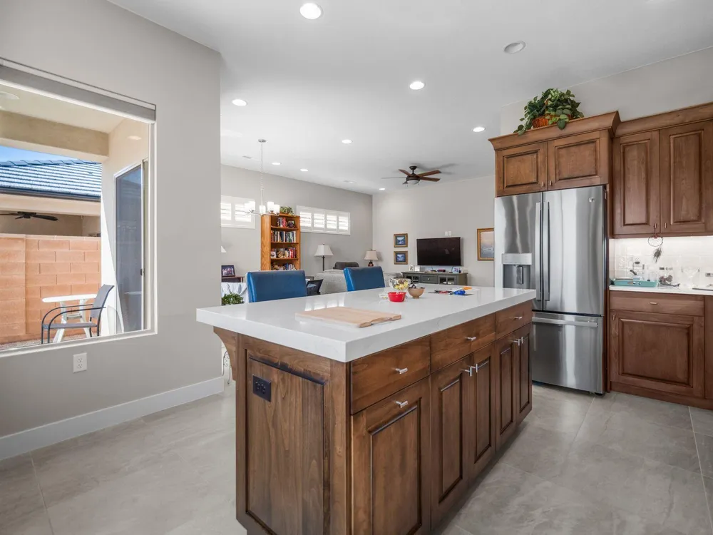 This unique 3 bedroom villa is the largest single level floor plan in the highly sought after 55+ active adult community of The Villas at Sun River. Large gourmet kitchen includes an abundance of custom soft close cabinetry, quartz countertops, stainless steel appliances, under cabinet lighting & tile backsplash. Open, spacious rooms with 10' ceilings & 8' doors include window coverings, multiple closets, huge primary closet, separate primary bath sinks, walk-in shower, covered patio & fully fenced yard. 2 car garage has epoxy flooring, ductless mini-split & water softener. Enjoy access to amenities including community center, classes, chef's kitchen, outdoor pool, fitness center and pickleball courts.