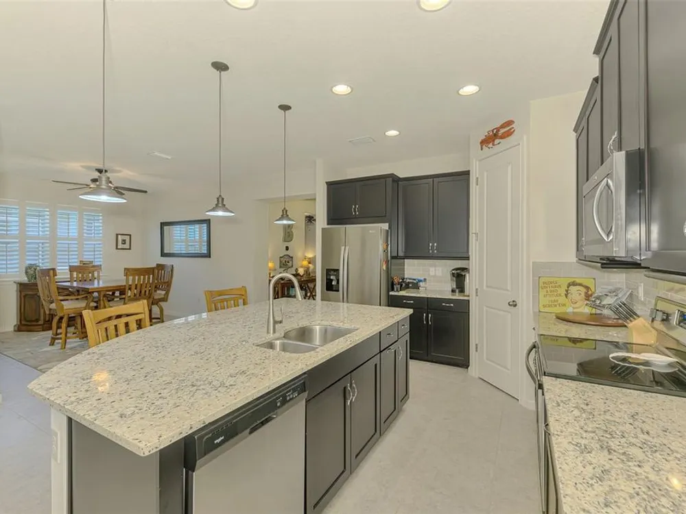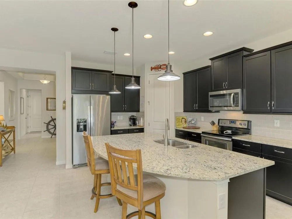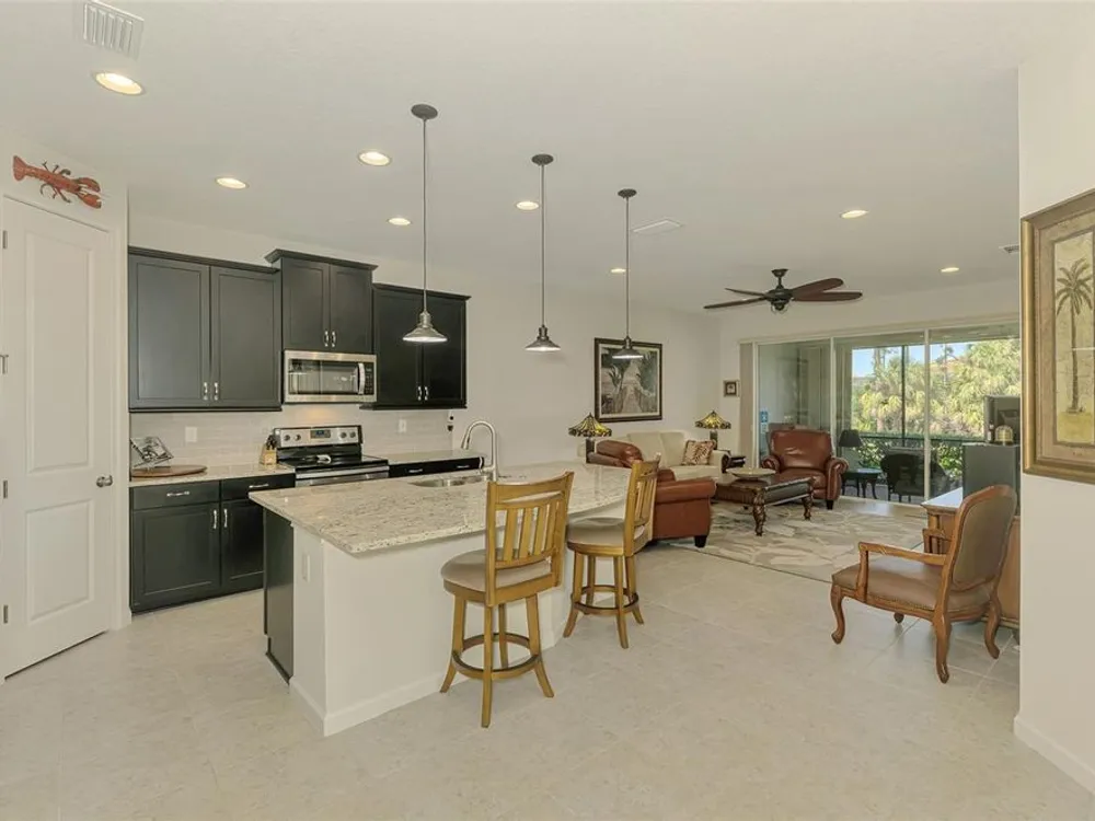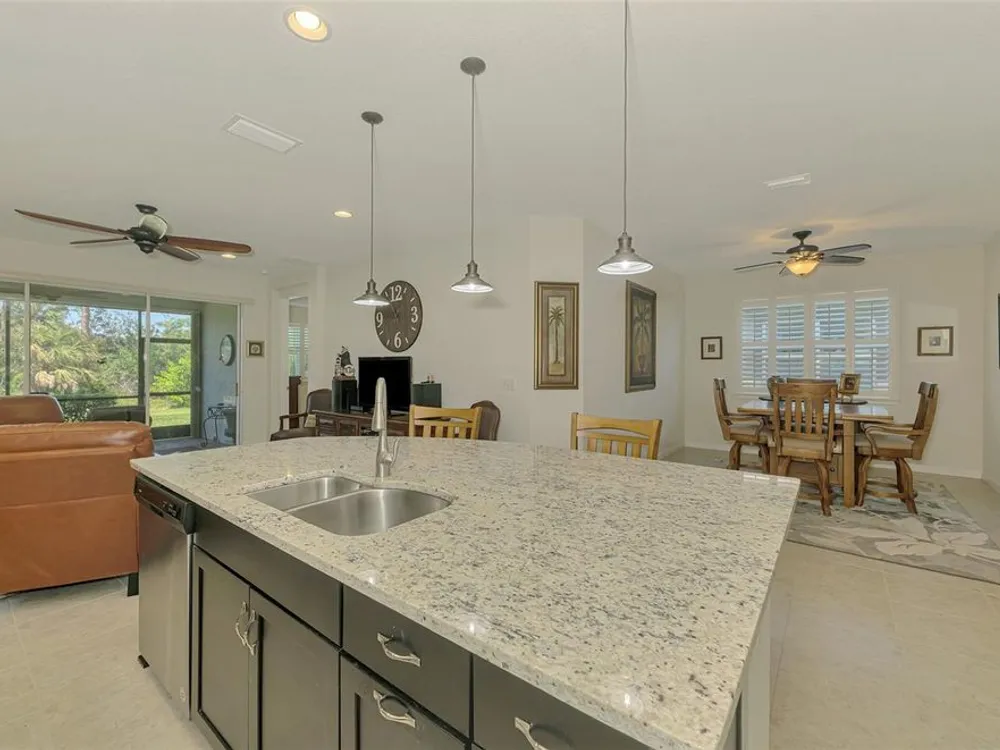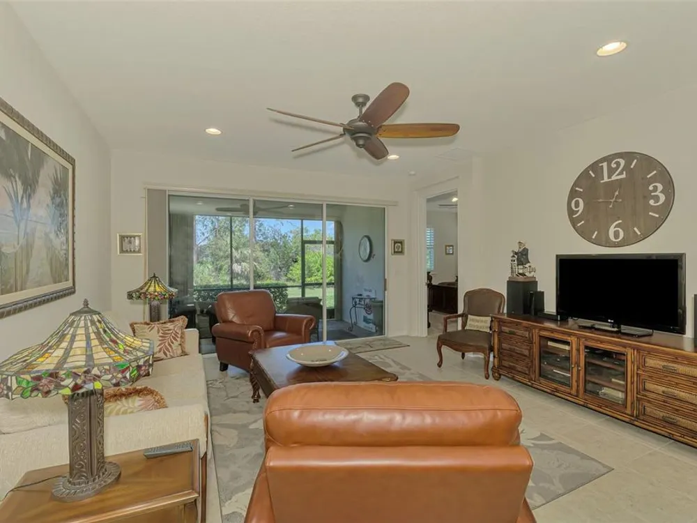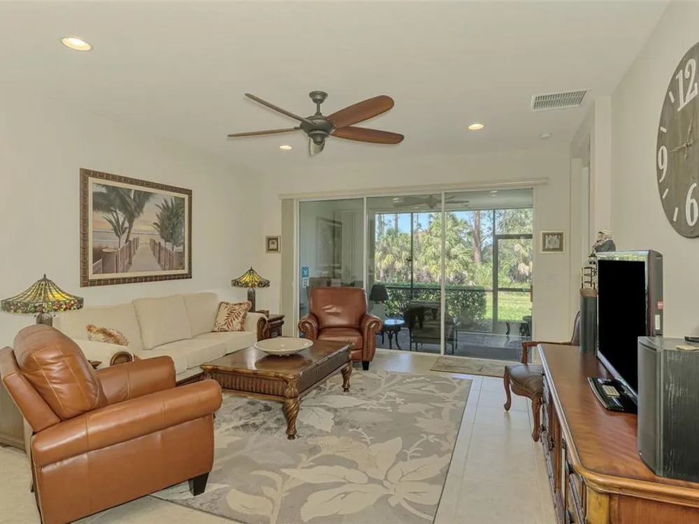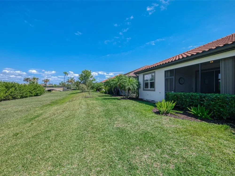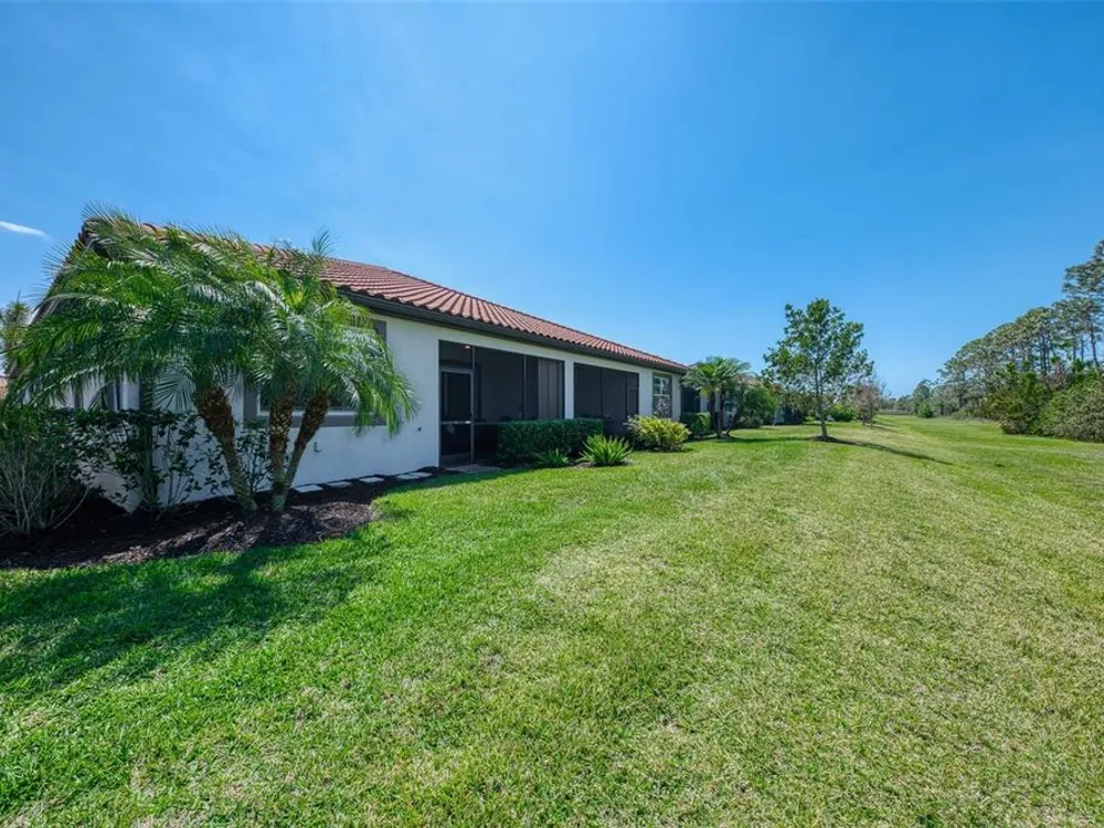 One of the largest villa floor plans in the sought after Renaissance at West Villages! The Seaglass! This stunning 2-bedroom, 2 bath home with flex room boasts a spacious open floor layout, featuring a large kitchen with oversized counter with space. The thoughtfully designed split-bedroom layout ensures privacy, while the serene backyard provides a peaceful retreat. The lanai includes hurricane screens for added peace of mind. Enjoy the convenience of being just a short walk from the community pool and amenity center where there are tons of activities to enjoy. Don't forget about the amazing Wellen Park across the street where you can enjoy shops, restaurants, free concerts in the park and an awesome farmer's market every Sunday. Just to name of few. Don't miss the opportunity to own your piece of paradise in sunny Florisa.