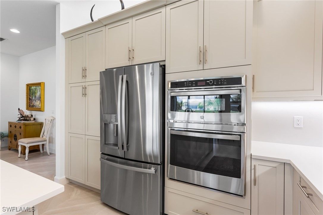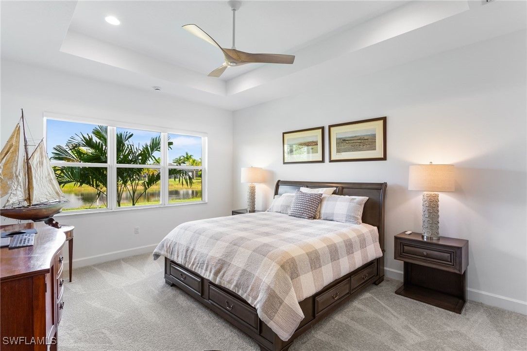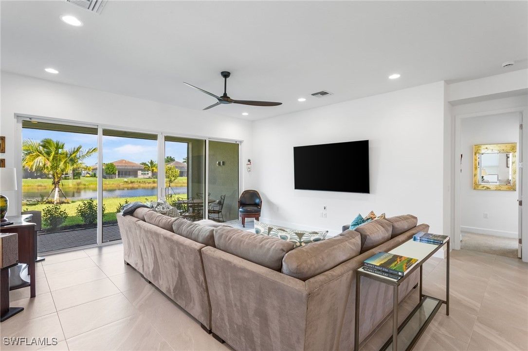 This stunning Pearl model home offers an unparalleled blend of luxury and comfort in the highly sought-after Valencia Trails, Naples’ premier 55+ community. From the moment you step inside, the soaring 14-foot ceilings create an immediate sense of sophistication. The open-concept design seamlessly connects the kitchen and living areas, making it ideal for both everyday living and elegant entertaining. The chef’s kitchen is a true showpiece, featuring quartz countertops and backsplash, a natural gas stove, premium stainless steel appliances, and an upgraded pantry. Level 3 wood cabinetry with soft-close functionality and elegant molding adds a touch of refinement, while ample recessed lighting enhances the space. Step outside to your private screened lanai and take in the breathtaking lake views that set this home apart. Whether you’re enjoying a quiet morning coffee or hosting guests for an evening gathering, this tranquil retreat offers a seamless blend of indoor and outdoor living. With ample yard space to accommodate a custom pool, a lanai pre-plumbed for an outdoor kitchen, this home is designed for relaxation and entertaining at its finest. The combination of tile flooring throughout and cozy carpeting in the bedrooms ensures both style and comfort. A whole-house water system and a reverse osmosis system have been added. All closets have been custom-made. Beyond your doorstep, Valencia Trails offers world-class amenities that enhance an active, social lifestyle. The impressive 43,000-square-foot clubhouse features a full-service restaurant and bar, a state-of-the-art fitness center, a full-service salon and spa, and multiple recreational spaces, including card rooms, an art studio, and a learning kitchen. For those who love outdoor activities, the community boasts a resort-style pool, a lap pool, a resistance pool, six tennis courts, eight pickleball courts, and scenic walking and biking trails. Even your four-legged companions will feel at home with two dedicated dog parks. This is more than just a home—it’s an opportunity to embrace a luxurious, resort-style lifestyle in one of Naples’ most exclusive communities. Homes like this are rare, and demand for Valencia Trails continues to grow. Don’t miss your chance to own a piece of paradise. Call today to schedule your private tour and experience the elegance, comfort, and breathtaking lake views for yourself."