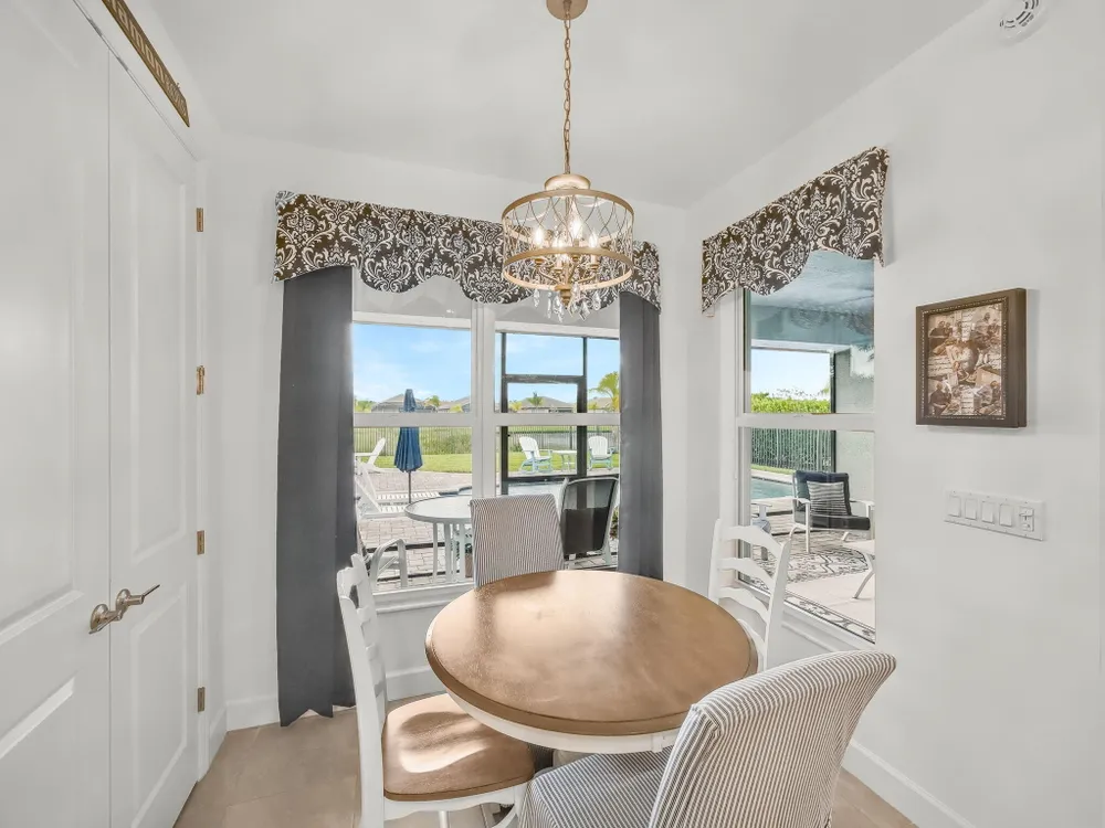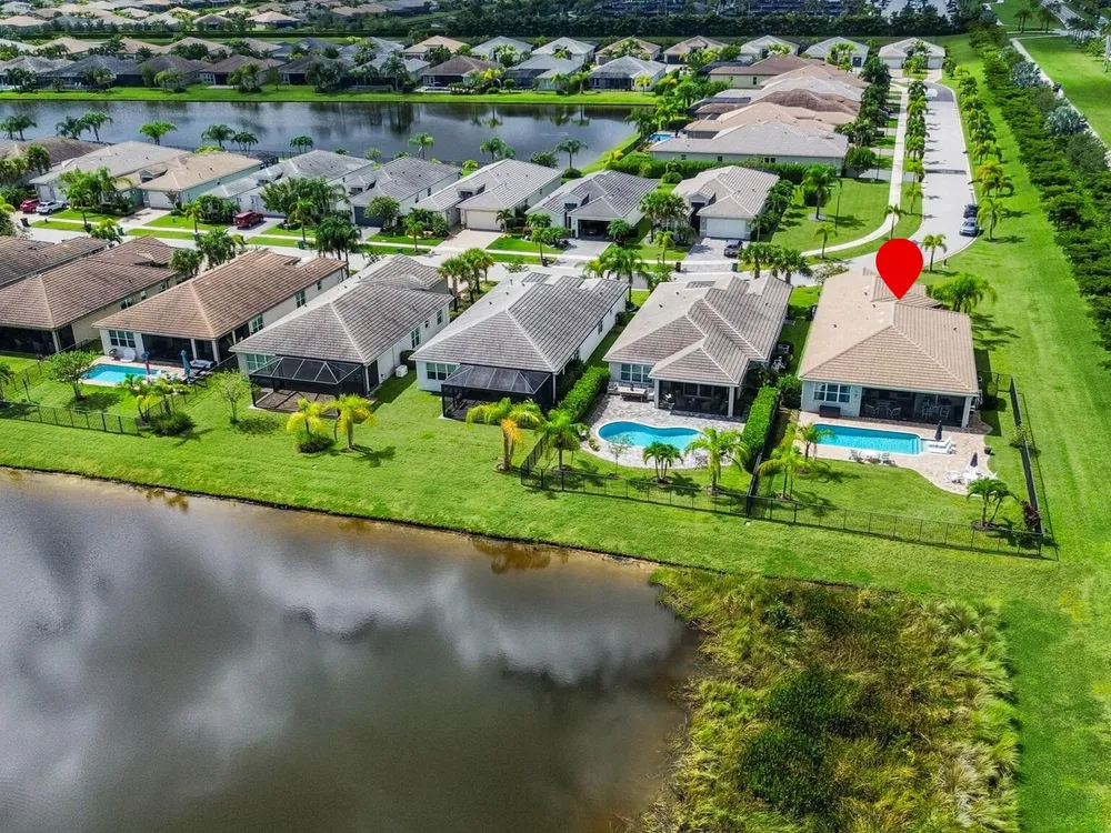 Live the dream in this stunning lakefront pool home, perfectly situated on an oversized corner lot in the highly sought-after Valencia Cay at Riverland! This beautifully upgraded 4-bedroom, 2.5-bath residence features soaring ceilings in the primary bedroom and main living area, enhancing the bright and open feel throughout. The gourmet kitchen is a chef's delight, boasting an upgraded gas range, stainless steel refrigerator, designer tile backsplash, and a spacious island ideal for entertaining. The luxurious primary suite offers peaceful lake views and a spa-style bathroom with upgraded shower doors. Step outside to your private backyard oasis featuring an extended screened patio, sparkling pool, and plenty of space to relax or entertain.