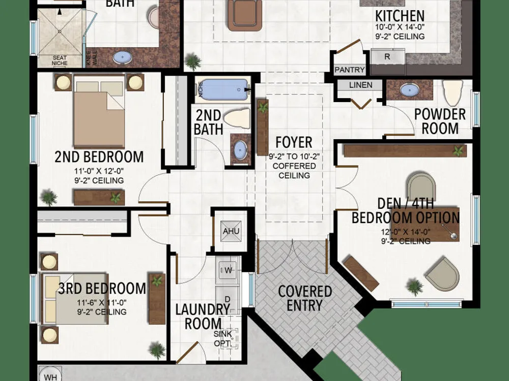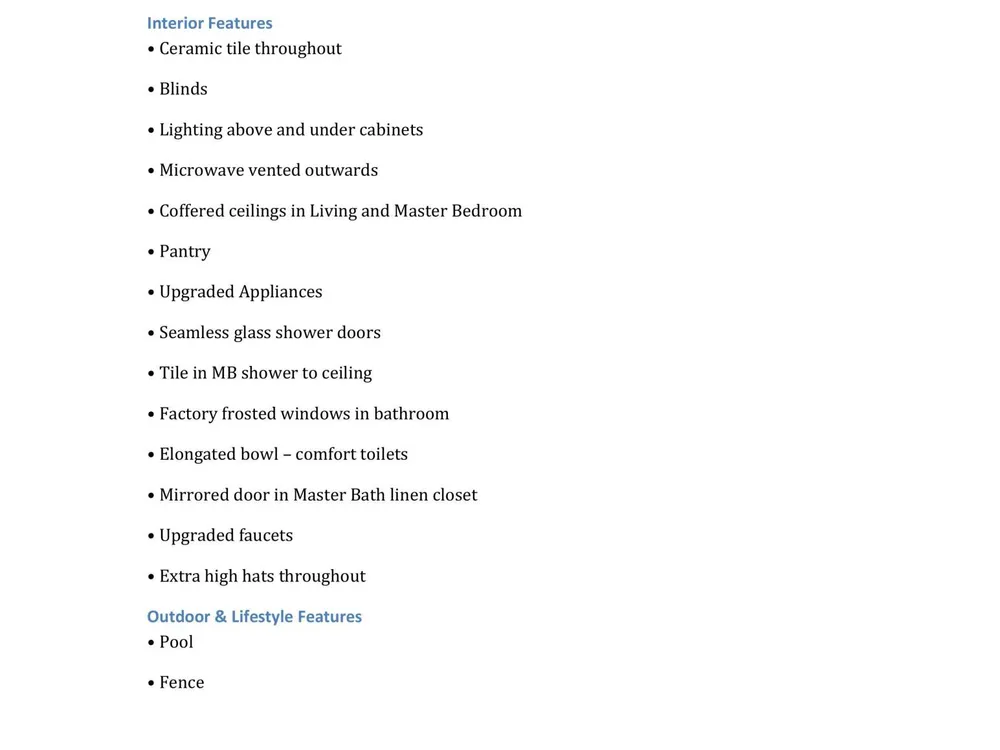 - Entry Level Living Area, Entrance Foyer, Kitchen Island, Pantry, Garden Tub/Roman Tub, Split Bedrooms, High Ceilings, Walk-In Closet(s), Home Office, Family Room, Great Room, Breakfast Area, Living/Dining Room, Snack Bar, Blinds, Drapes, Impact Glass, Dual Sinks, Separate Shower