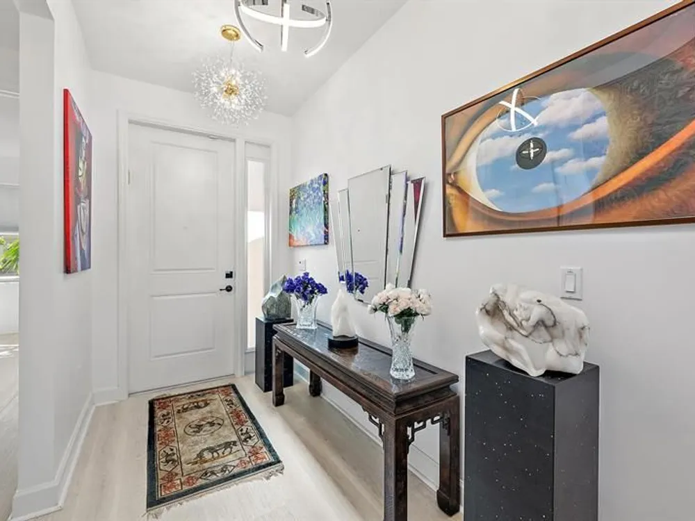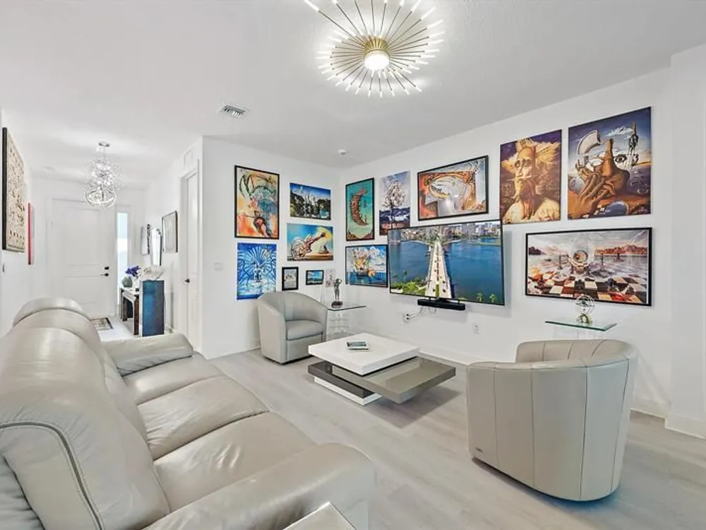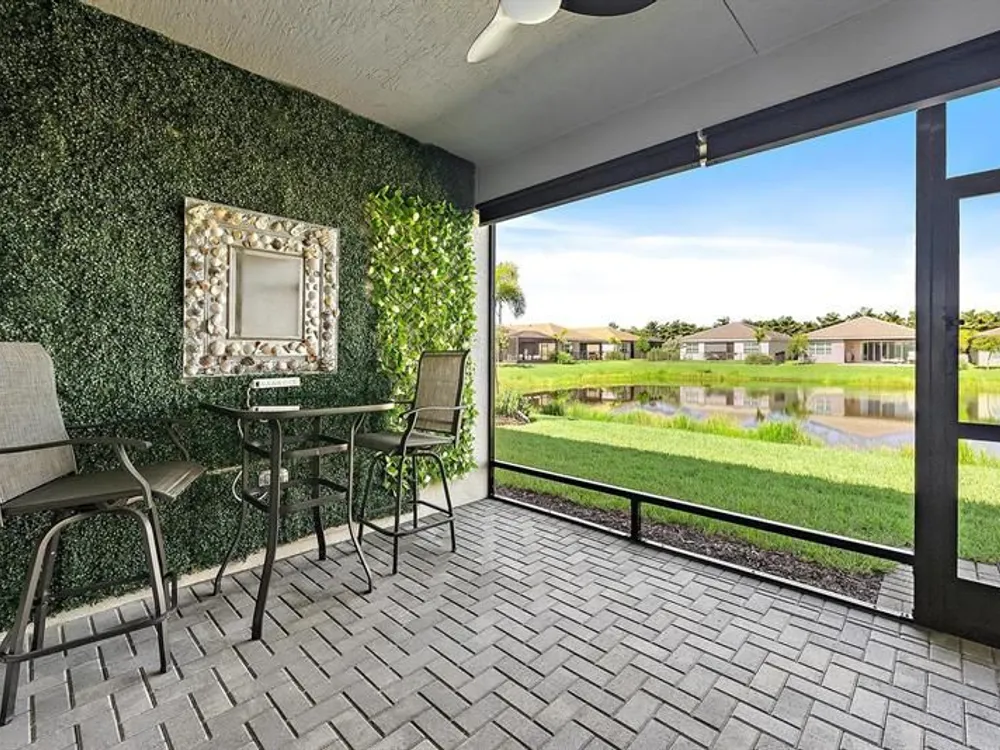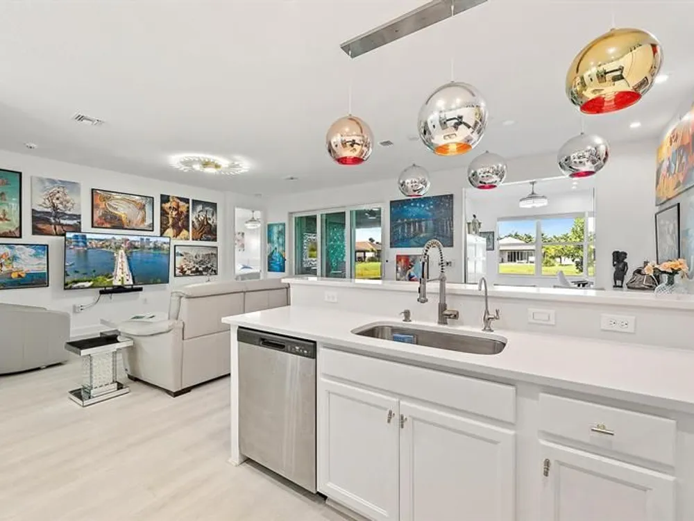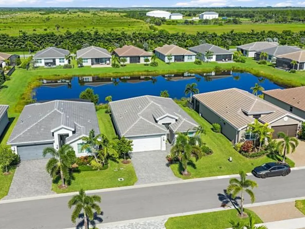 Enjoy the waterfront views in this 2023 Osprey model - The light and bright interior features 3 beds/2 baths with ultra modern finishes and sleek upgrades throughout. Kitchen features all quartz counters, stainless steel appliances, reverse osmosis system, custom cabinets with upgraded hardware, along with a large breakfast bar. Master suite includes custom built out walk in closet. Relax on the oversized lanai completely enclosed overlooking the lake view. Epoxy coating in garage. Hurricane impact windows. Washer/ dryer included. Valencia Grove is one of the most active 55+ communities with no shortage of activities! Amenities include lawn care/sprinklers, fitness center, art & culture center, pickleball & tennis courts, cafe, indoor pool & spa, walking trails, theatre and more.