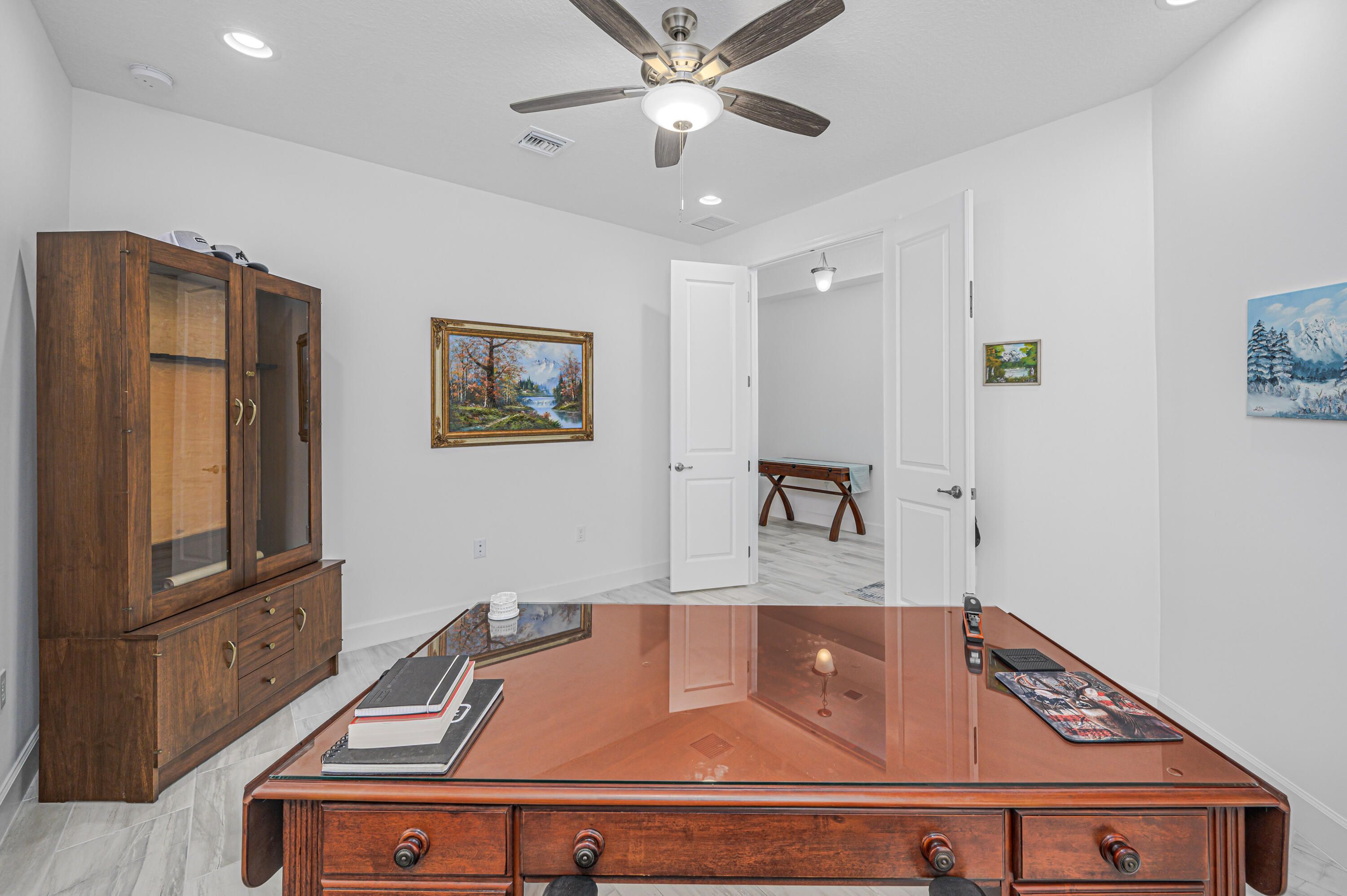 - Entrance Foyer, Kitchen Island, Pantry, Split Bedrooms, High Ceilings, Walk-In Closet(s), Home Office, Living/Dining Room, Blinds, Impact Glass, Dual Sinks, Primary Downstairs, Separate Shower, Washer/Dryer Hookup